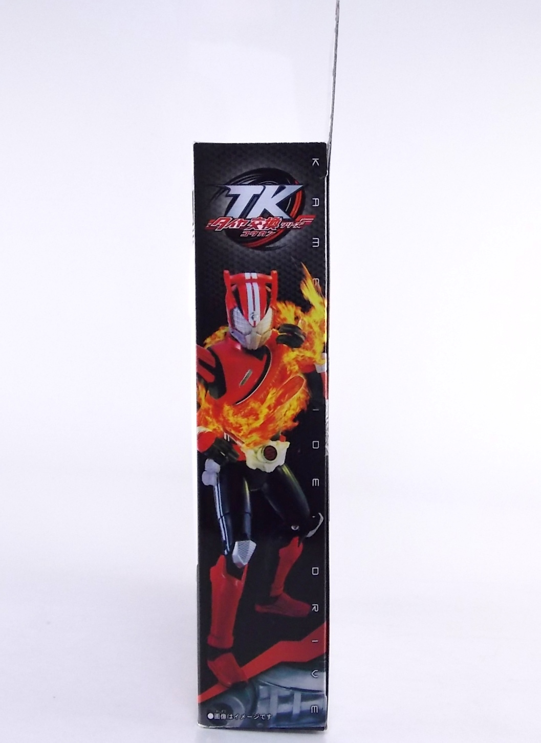 Kamen Rider Drive is finally underway and with the inaugural episode having aired this past weekend, the toyline was released in unison in Japan. Luckily enough some of it has made it's way to our part of the world as well. So today we're taking a look at the very first figure in Drive's gimmick line Tire Koukan! Following up from last years fantastically well received Arms Change line, Tire Koukan has a similar gimmick. Literally you swap various themed tires onto Drive and other compatible future figures by splitting the figure in half. So let's jump right in with TK-01 Kamen Rider Drive Type Speed! Post #2 contains tons of additional images of this wonderful figure! Packaging TK-01 Drive comes packaged in a fairly standard box. The mass retail toylines don't tend to have the fancy bells and whistles of Bandai's collector lines but they get the job done. Drive's box is very similar to that of an Arms Change albeit much slimmer as the Tires aren't nearly as cumbersome as Arms were. The cross sells on the box give us some official looks at the upcoming DX Tridoron & TK-02 Tire Set. Drive himself is packaged in a plastic clam shell and is split into his upper and lower halves with no tire attached. Main Figure Inevitably the comparison between Tire Koukan & Arms Change was going to be made. So let me go ahead and make it. As with most if not all mass retail "gimmick line" rider figures from the last roughly 5 or 6 years the body type is fairly generic. At least in the placement of articulation points and complexity. OCC, FMCS, WAP, AC. These all share basic design structures so Tire Koukan is no different in that regard. Last years AC's brought the retail lines to a new level with it's innovative gimmick, and Tire Koukan is attempting to bring the same magic. I feel it's an admirable successor. Kamen Rider Drive can actually be snapped together without a tire connected to his chest peg funnily enough, though he won't have much of a chest if you do that. There's nothing to fill in the big gap on him like the basic suit used in the show between Koukans. So to really examine the figure as a whole you need to equip the included Speed Tire. Drive's Type Speed is his default form anyway. This basic form of Drive is pretty damn slick. Though this is merely a gimmick figure it absolutely nails most of the details from the suit. You could levy the complaint that the Shift Brace, Drive Driver, and Shift Car holster are unpainted. True enough they aren't and are simply molded in gray plastic. But as a mainline non-SHF figure it's forgivable. The details are still nice on all 3, right down to the three tiny molded cars on the holster. The holster is also removable though that doesn't serve a purpose right now. The back of the figure is where it really shines though. Look at ALL that detailing! Much like the real suit, TK-01 Drive has that incredible car undercarriage detailing on his back. It really does look fantastic. Drive's basic red has a nice gloss to it to make it feel a bit more authentic, and his visor is nice big and open to allow plenty of light in, making the eyes really pop. While on the subject the helmet is also excellently detailed, right down to the (sadly unpainted) piping around the sides. Seriously look at this figures profile, it's fantastic. Many people complain the tires seems too large but if you ask me it looks just right on the Tire Koukan figure. It gives Drive a nice unique shape. It can hinder the leftward movement of the head to a degree, but this figure doesn't have an incredible range of motion to begin with so it isn't a huge loss. As you can see you can get some nice fun poses out of a figure like this and with some already purchased effect parts you can make the most of him. Drive also fits in pretty well with S.H. Figuarts and the like. Though he's a tad bit taller than the standard figuarts, he'll look good with some of your more modern riders, and other law enforcement heroes... Accessories Drive's one additional accessory aside from the necessary Speed Tire is the Max Flare Tire. First seen in episode 1, Max Flare gives Drive access to Fire based powers and attacks even letting him create flamed whirlwinds punches and kicks. Sadly the spikes on this Tire don't pop up automatically when placed on Drive, you do need to flip them out individually. It should also be noted that the Tire's only go on one way. They're molded to only be placed on a figure one direction, with the screws facing down on the "bottom" of the Tire. Max Flare is cast in a nice fiery orange and although the spikes can be a pain when posing, they still don't really affect the figures ability to pose. Again, if you have some effect parts in hand already Max Flare can be just as much fun as Speed. I had some and really had fun with it. Drive will apparently receive actual weapons later on in the show so for now there's no gun or sword or anything like that for him to use. But Max Flare is a good bonus to throw in for now. The TK-02 set will be nothing but extra Tires; Justice Hunter, Mad Monster, & Funky Spike. Final Thoughts Though not quite as snazzy or immediately as playable as the Arms Change line, I feel Tire Koukan is more than a worthy successor. Koukan's focus is on Tire swapping but we do know that later figures will introduce something more like torso swapping as Drive's upgraded forms Wild, Technic, & Dead Heat appear. Recently it was confirmed that Drive will eventually have a Type Gaim/Type Fruit form as well, and a new Arms Change figure in the form of Gaim Drive Arms is forthcoming. TK-01 Kamen Rider Drive Type Speed is only just hitting the market, but as is usually the case when a new rider show begins, basically everything is selling out. Is this figure worth the initial mad dash to own? Perhaps. But much like any gimmick laden figure, it will always be more attainable at a later date. For now I'm more than happy to have this Drive in hand to fool around with and I'd highly reco