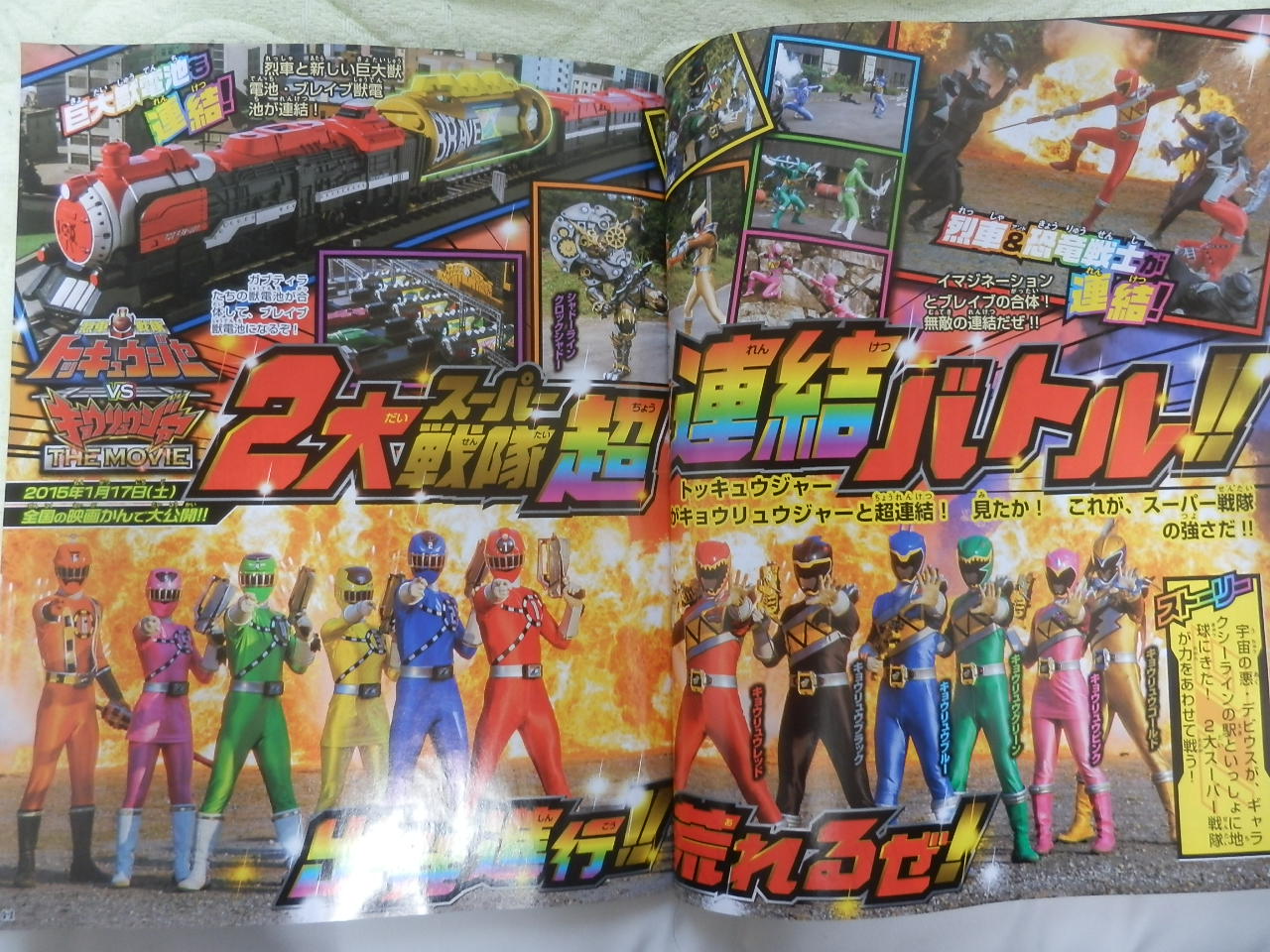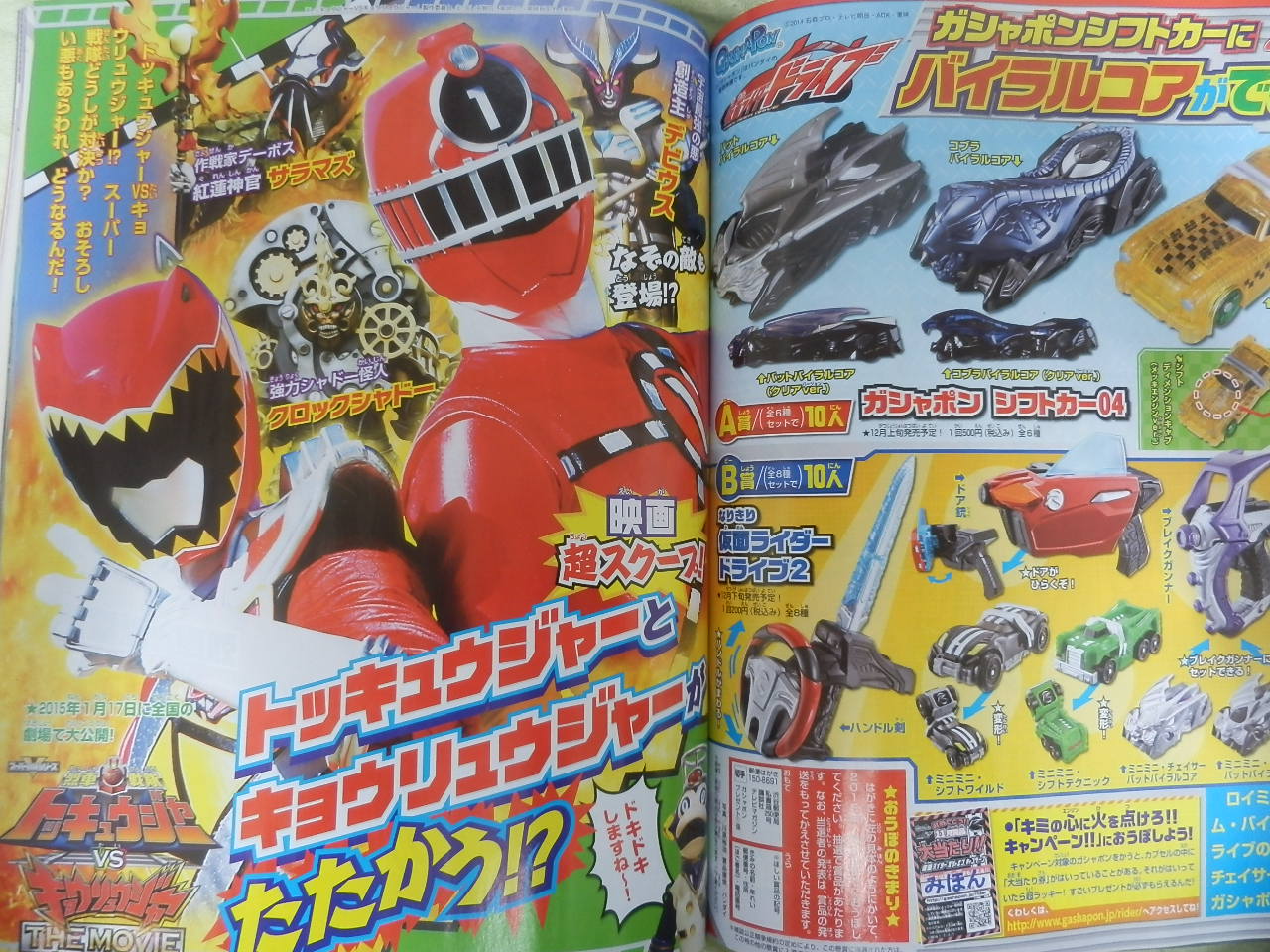 - the 6 ToQger's & the core 6 Kyoryugers - The TOQgers becoming children, but still being able to transform - The giant Brave Zyudenchi appears and can seemingly link up with the Rainbow Line - New villains from the Deboss Legion Salamaz & Devius, & from the Shadow Line Clock Shadow