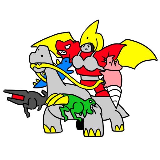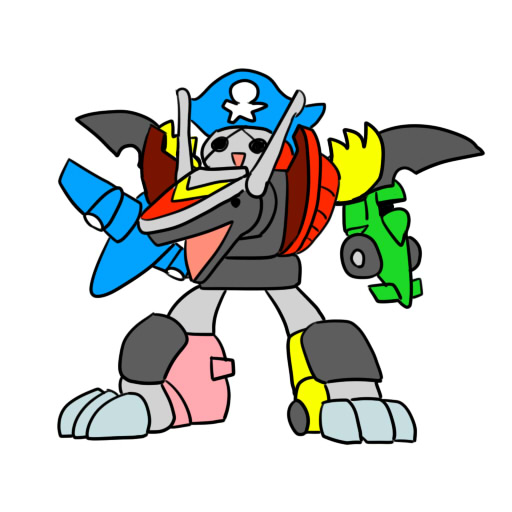 Henshin Shinobi-to(Transform Shinobi sword) Ninja-ichibanto(or Ninja Number one sword) Set the blade > Set the Ninshuriken > Press the "Hen(Change)" button > Spin the Ninshuriken and with the pharse "The Henshin!" you transform into a Ninninger. Comes with the Akaninger shuriken. Sanki Ninken(Three-technique Ninja Fist) Karakurihengen A giant shuriken that can transform into either a blade, a bow, or a claw and comes with the Kininger Shuriken. Shuriken OO(My assumption is Shuriken Holster) Ninnin Buckle The belt that can hold Ninshurikens on the sides. Comes with Shironinger Ninshuriken. Kaiten Choninpo(Spinning Super Ninja Arts) Goton Ninshuriken Can wield the five elements of fire, water, wood, metal, and earth. Kaiko Ninpo(Open-mouthed Ninja cannon) Gamagama hou(or Gamagama cannon. Gama is Japanese for toad. A reference to Jiraiya.) A toad-shaped firearm. Comes with the Aoninger Ninshuriken. And just like that, Momoninger is singled out.