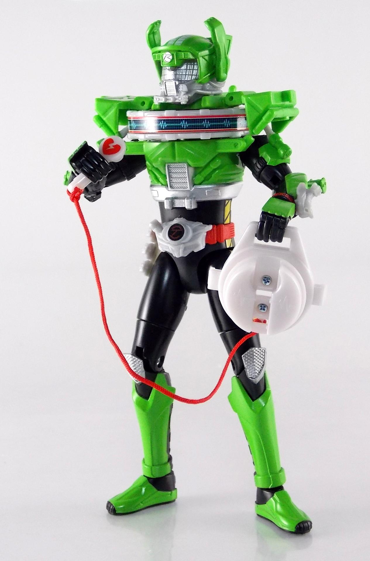 The figure looks good and seems to fit with the rest of the line. I don't like the tire whiplash collar. It looks like if you squeezed his legs he would shoot little discs out. The look just does not seem to fit the other 2 forms. I am behind on the show so if this form has shown up yet I have not seen it. Perhaps on the show it looks better but so far this is the weakest of the suit designs. Still digging the toy line and the gimmick this year.