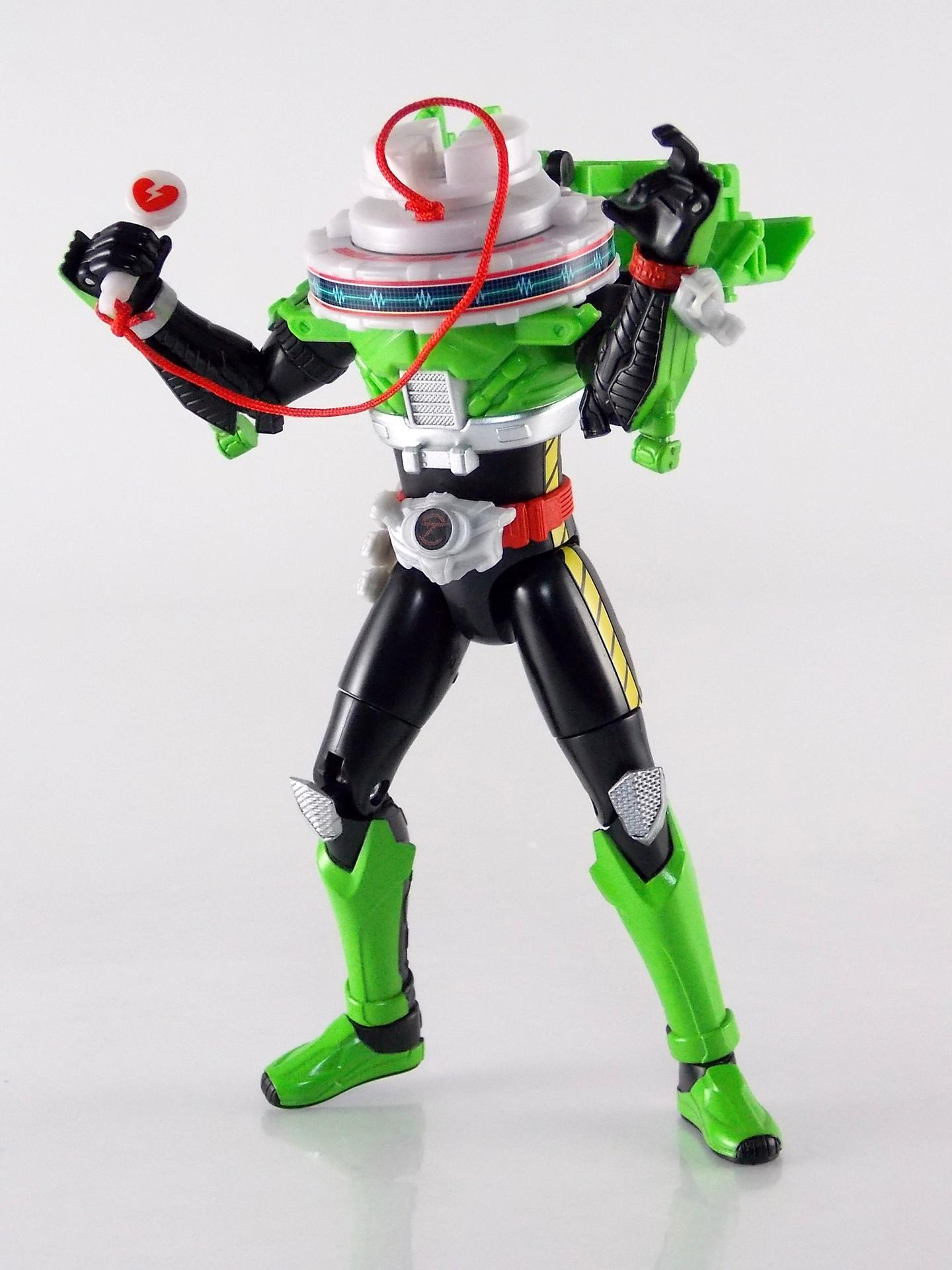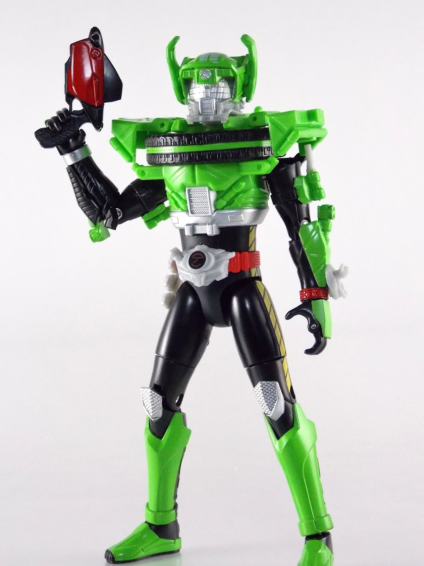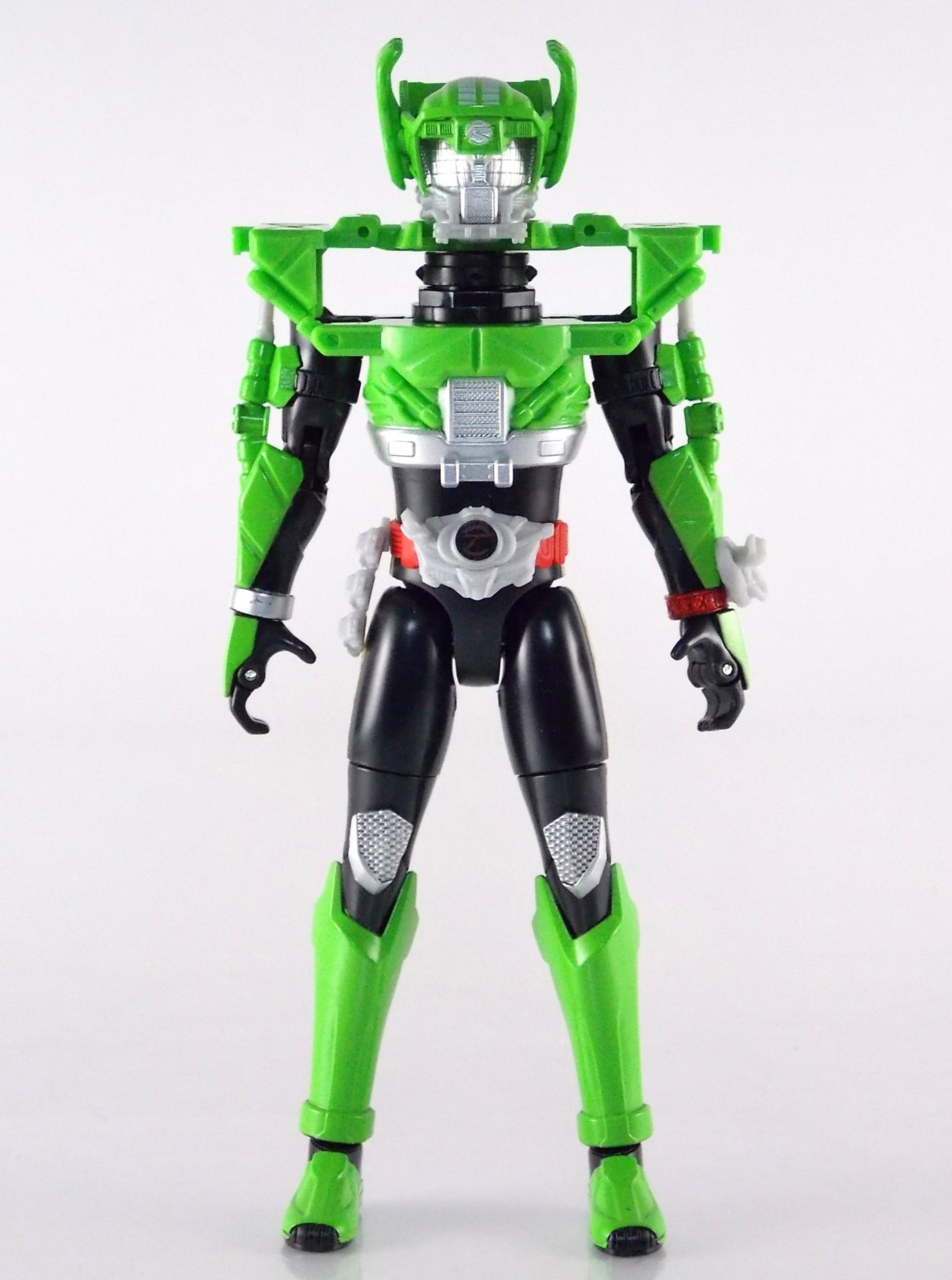 The figure looks good and seems to fit with the rest of the line. I don't like the tire whiplash collar. It looks like if you squeezed his legs he would shoot little discs out. The look just does not seem to fit the other 2 forms. I am behind on the show so if this form has shown up yet I have not seen it. Perhaps on the show it looks better but so far this is the weakest of the suit designs. Still digging the toy line and the gimmick this year.