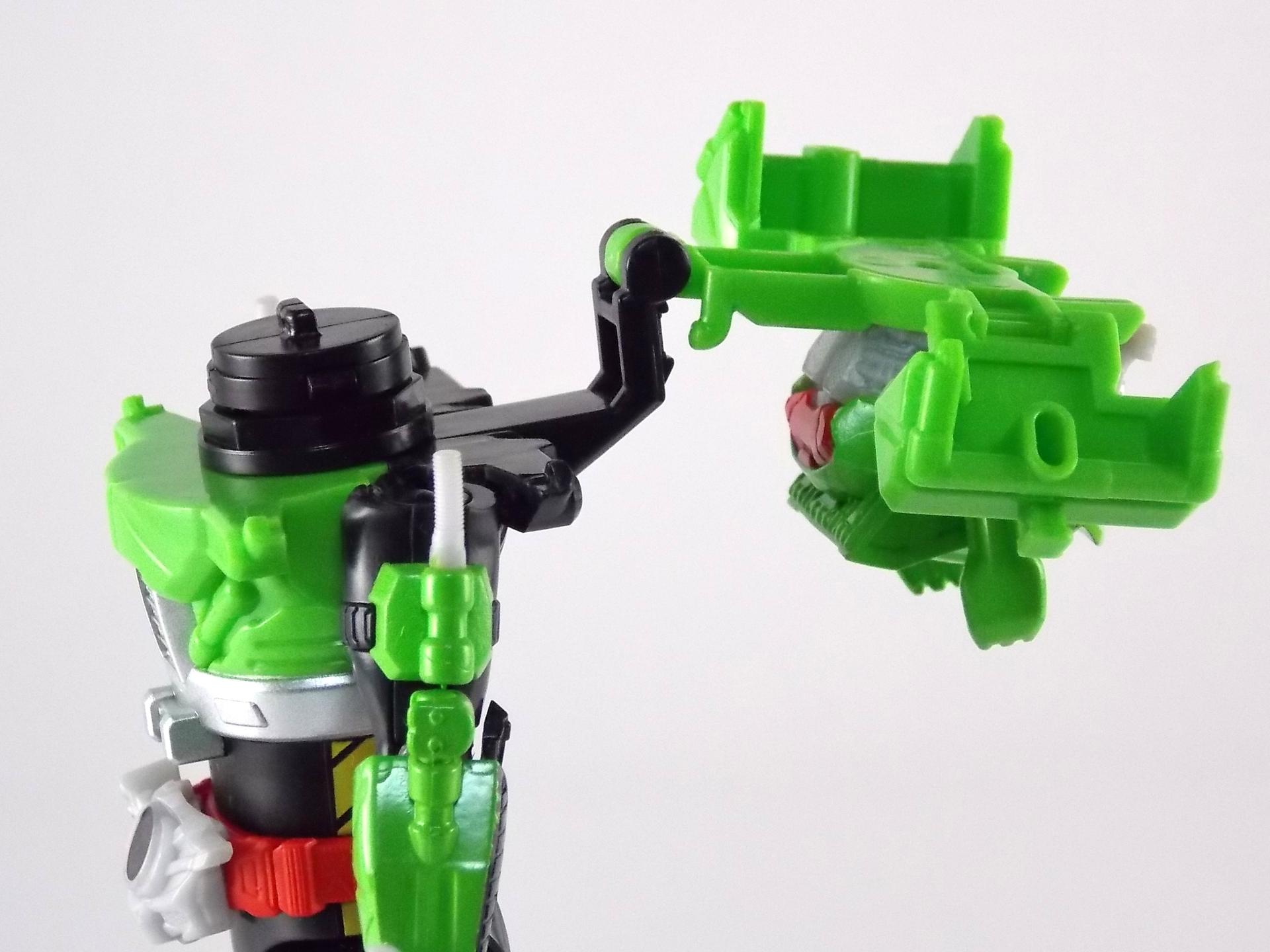 It looks like the arm articulation is hurt a little by the gimmick in this case. Still wouldn't say no to this figure though. I wonder how Type Formula will work; two small default tires on the wrist that can be replaced by any two other full size tires?