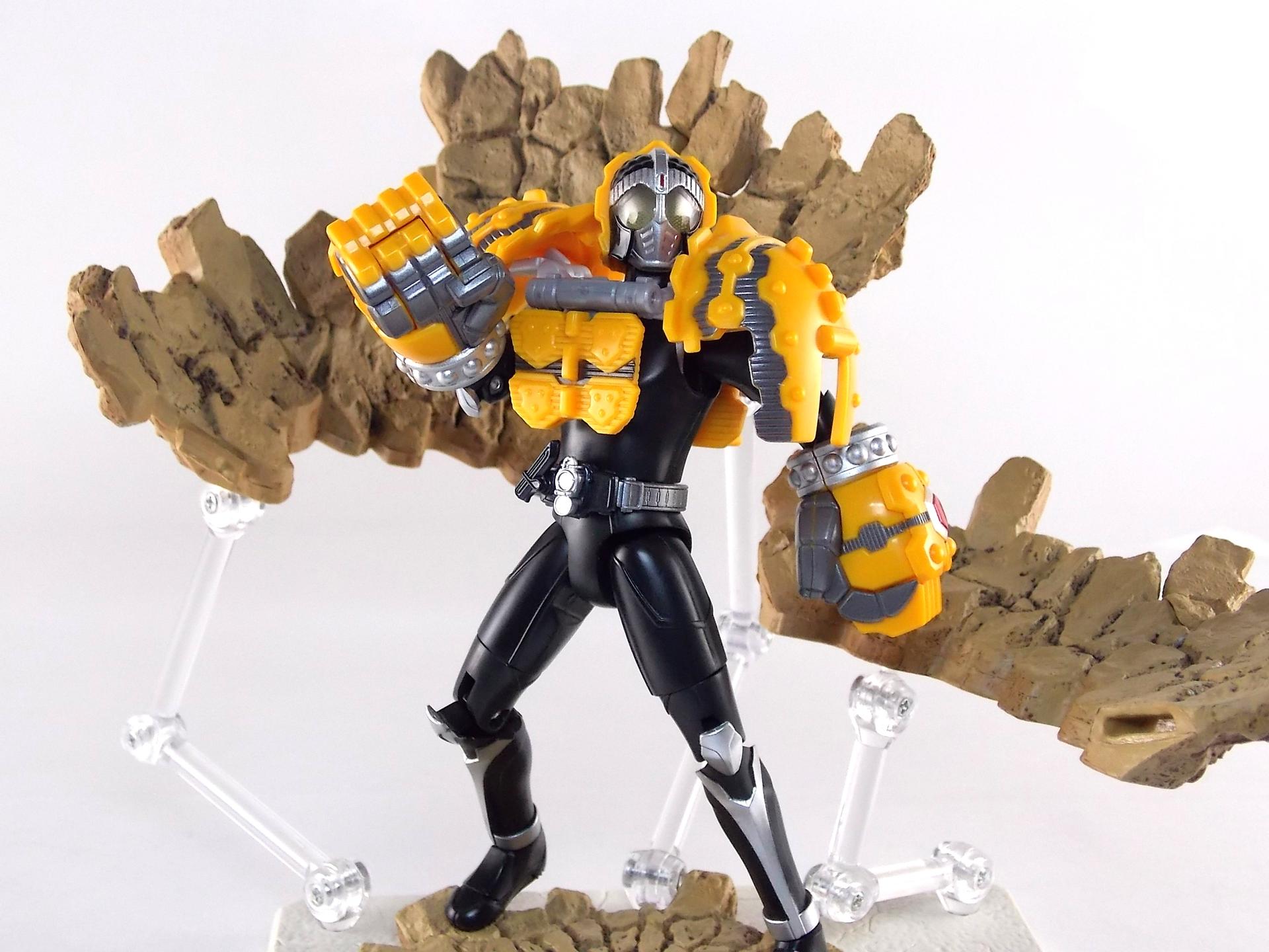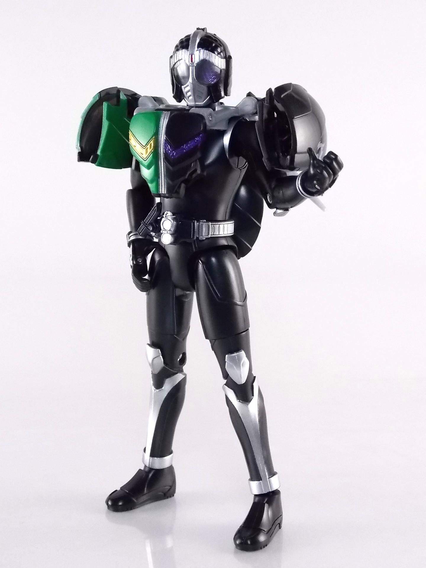 It's time for the latest installment in the ever ongoing series of Arms Change releases from Kamen Rider Gaim! Once again Premium Bandai has seen fit to release yet another rider absent from the retail line. Today we're taking a look at Mr. Knuckleman himself, the 2nd leader of Team Baron, Kamen Rider Knuckle & his trademark Kurumi Arms! Before checking out the review and images below, be sure to check out Baltmatrix's video review of this set! Packaging Continuing the trend of Premium Arms Change figures Kamen Rider Knuckle also comes in a windowless box that's become the standard of many Tamashii Web & Premium Bandai exclusives. Aside from showcasing some alternate Arms Changes and a single action shot on the back, there really isn't much more to say about the box. Main Figure Let's kick off the figure portion of the review by looking at the basic Knuckle body pre-arms. What you have here is possibly the most simplistic base body in the entire line. Primarily Knuckle's base is a remolded Kurokage albeit with nearly all the detailing removed. So whenI say this is a basic figure it truly is, but accurately so. The details are smoothed out to flat services appropriately. But this figure is still a bit pieced together, the head is actually a remold of Gridon's. To my eye at least that connection isn't as noticeable in toy form as it was in show. This basic figure doesn't offer much that we haven't seen before from Arms Change, but at this point there's nothing new to expect from the base bodies either. Accessories You know the drill by now, Arms Change Knuckle includes the following: 1 - Kurumi Arms set of armor which includes the Knuck Met visor part. Kurumi Arms is certainly now of the better examples of how Arms Change has benefited from the Premium treatment. It's an exquisitely detailed set of arms physically, but the paint applications aren't really what make it pop. Rather just the extensive detailing. It's certainly an interesting set of arms that really looks good on quite a few figures. 2 - Kurumi Bomber gauntlet weapons. Sadly this is the part of the figure that disappoints me. While beautiful and a great idea, the execution leaves a bit to desired. Each of the Bombers is hinged so they can swing out and you can insert a riders hand. However the only way to get the rider to use one of the Bombers is to have them grip the post on the deep end of the gauntlet. Which doesn't really work. Much like Ryugen's Budou Ryuhou, the post is simply too large to be gripped properly. And there's hardly enough space to get in there and try to make the hands grip the posts better. In any case the end result is a fairly loose fit. I find the gauntlets to be nicely made but designed poorly. Rotating the wrists once the Bombers are attached makes for an even flimsier fit as well. There is however one figure that is totally incompatible with the Kuruki Bombers, Kamen Rider Sigurd. Because of the raised molded "fur" on his wrists there isn't enough clearance to actually close them around his arms. For a line that's been so inclusive, so interchangeable and compatible, this is the only glaring flaw. The one incompatibility issue. Final Thoughts The end result of Kamen Rider Knuckle's accessories applied to him makes for an excellent looking figure. Though I have complaints about the execution of the Bombers, the full package is a nice display piece. If you'd rather not wait it out for the recently revealed S.H. Figuart Knuckle, which has no confirmed release info, then the Arms Change will be the perfect stand in for your collection.
