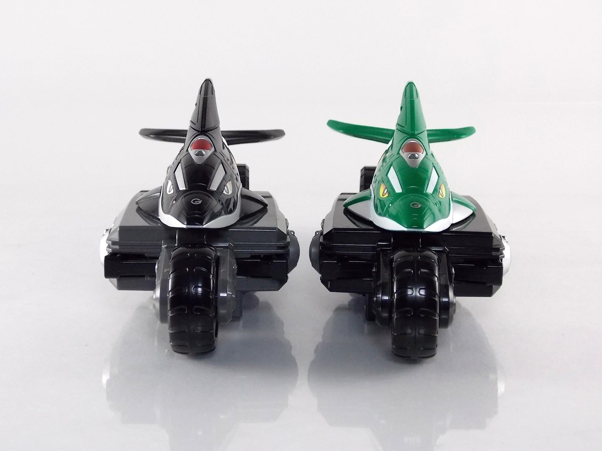 TokuNation is proud to present a long long overdue gallery. Rounding out our COMPLETE series of Engine Sentai Go-Onger DX mecha at last, we bring to you the DX Police Deco Gunbir-Oh! You may recall last year that for the entire month of July we took a look back at the entire Go-Onger toyline and posted galleries for each set and their various combinations. The elusive Toy Dreams Project Police Deco Gunbir-Oh was the final piece of the puzzle I'd been unable to attain until very very recently. Thankfully though I can finally share a full gallery of this wonderful set with the community! It should be noted that as a Toy Dreams Project release this is an entirely toy exclusive coloration. It's solely unique to this toy and has no basis in any show related material. Like basically all Toy Dreams Project releases. Packaging As a special release, Police Gunbir-Oh differs from the standard DX Gunbiroh in that it was sold as a complete 3-piece boxed set. The components of Gunbir Oh were originally sold in 3 individual boxes. As a limited Toy Dreams Project release it's only natural that these figures would be boxed together for sale. The box obviously has a bit more flare to it thanks to it featuring this new deco of Gunbir-Oh as well. It even advertises the altered G6 combination you can make with Engine Oh which is impressive. Birca DX Birca was originally in a mostly bright green color scheme with black for accents. For Police Deco Birca black has flipped from his base to replace all the green, while the base retains a flat gray color. The eyes have also been changed from bright yellow to white with blue pupils. The silver detailing and #4 emblem, as well as all 3 tires are largely unchanged. The Birca Engine Soul has also been changed to an opaque black plastic with a more "sparkly" foil like label on it. Gunpherd The least changed of the 3, Police Deco Gunpherd is only distinguishable from the original because of the gray used for his base. Otherwise it's nearly identical to the original DX Gunpherd. It's kind of understandable though as Gunpherd is already a police car and had the appropriate colors to begin with. It's a similar situation to the Gaohunter Blue Moon release with the mostly unchanged Gao Wolf & Hammerhead. The Gunpherd Engine Soul has also been changed to an opaque black plastic with a more "sparkly" foil like label on it. Carrygator DX Carrygator was a bright orange car carrying alligator robot. Now he's a sleek black & white Police Deco car carrying robot? Yeah alligator car carriers are still a little out there no matter what color they're in. By far this one looks the best of the trio. And oddly it has the easiest color swap. All of Carrygator's orange plastics and paint apps have been swapped for white. And since the basic figure is black with green accents already, boom you have a police gator that looks pretty damn snazzy. It really outshines the standard Carrygator. The Carrygator Engine Soul has also been changed to an opaque black plastic with a more "sparkly" foil like label on it. Gunbir-Oh & Combinations When all combined Police Deco Gunbir-Oh actually succeeds in being a far more cohesive looking robo than the standard version. These colors lend themselves very well to the individual vehicles as is but the combined form is incredibly appealing. The combined forms with the various other Engines benefit from this color change to an extent as well. The one form I was most excited to create with this set involved the DX Engine Dai Shogun. Though it isn't really an official combo nothing else would be either involving Police Gunbir-Oh either. Either way I think it's befitting that 2 repaints of Go-Onger mecha that aren't normally supposed to be combined with anthing, look pretty damn snazy together. It's by far my favorite thing to do with this set. But you can also still create the Engine Oh G6, G9. & G12 with this set as there are no mold differences with it, only color. And while the G6 combo looks fine, and perhaps G9, by the time you get to 12 all of the Police Deco parts are on the feet and don't mesh with anything else sadly. Final Thoughts At the end of the day DX Police Deco Gunbir-Oh is by far a superfluous thing to own. It's gorgeous in these colors don't get me wrong, I'm thrilled personally to have it. But you have to be a huge Go-Onger fan to seek this one out as it's a toy exclusive coloration. Worse yet is that in most cases it's prohibitively expensive, ranging as high as $150-200 on the aftermarket. I love this thing, more than regular Gunbir-Oh by far, but it's definitely for the ultimate Go-Onger collectors.