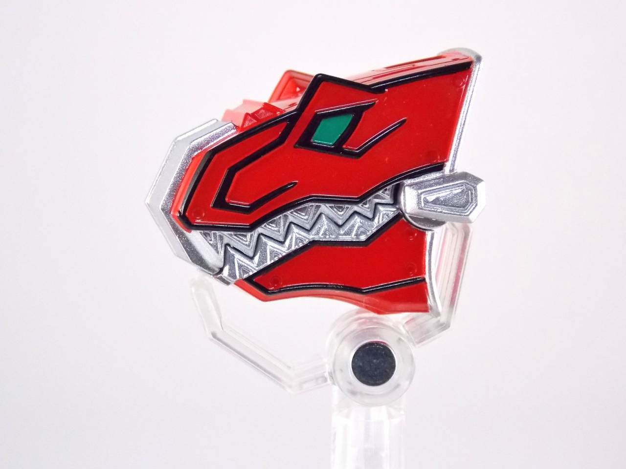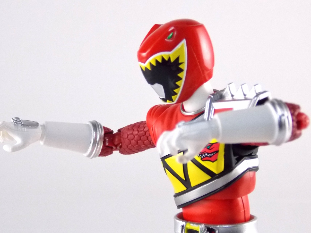 A renewed gallery for a new year! It's time for TokuNation to take it's Gallery 2.0 do-overs to the next level! Taking a look back at our archive of old galleries we thought that with the premiere of Power Rangers Dino Charge upon us it would be the opportune time to go back and give Zyuden Sentai Kyoryuger the TLC it deserves. So without further delay we now present S.H. Figuarts Kyoryu Red (Gallery 2.0)! Packaging Kyoryu Red comes in quite the interesting box. Though Sentai Figuarts haven't been around nearly as longs as Rider ones, they initially started out with the same boring box design. But in recent years Bandai's really gone all out, Kyoryuger figuarts are no different. Not just a simple window box, Kyoryu Red's really tries to evoke the general look and feel of his costume, right down to the "sash" across the window. The back of the box is also pretty snazy to just be a selection of stock photos. I mean honestly the Kyoryuger Boxes were some of the nicest sentai figuarts packaging for their time. Main Figure As with any time a new Sentai Figuart is release, Kyoryu Red is an entirely new base body. And wow what a nice one it is. The Kyoryuger designs are some of the more busy modern sentai suits we've had in a while, and I mean that in a good way. Luckily the busyness, in fact the more armored nature of this costume, lends itself that much more to being a toy. Where Riders Metal Heroes & the like have the advantage of armored costumes and less apparent articulation cuts, sentai costumes are basically fabric. So reproducing that in articulated toy form can be difficult. But Kyoryu Red really pulls off his look quite well. The lower half of the body is simple stuff. Come up to the belt though and look at the glorious detail on the Mobuckle. It's hard to see at that scale but the Kyoryuger emblem and even the eyes on the sides of the buckle are fully painted. The Mobuckle can also rotate to the side to simulate what happens when a Zyudenchi would normally be removed from inside. At this scale though they couldn't engineer the Mobuckle to open and store them. But that's okay as the included Zyudenchi is tiny. Further up brings us to the exquisitely molded arm details. Rather than go for a fishnet style paint job on the arms to get the scaly feel of the costume, Bandai has instead sculpted the detailing into the arms themselves! Thus creating a much more polished look that works better than I ever thought it would. The chest and head though are where the figure knocks it out of the park. As I said the more armored nature of the figure lends itself well to the toy makeover. The chest emblem, sash, shoulder, & back are all gloriously detailed and fully painted. The Gabutyra emblem in particular looks great. The head while well sculpted could stand to be painted just a little bit better. The front and back halves of it appear to actually be different colors under the right light. A minor gripe but one none the less. Otherwise it's dead on the show suit. And as for posability, well see for yourself below. Kyoryu Red can assume any of his iconic poses with ease and pretty great balance as well. The shoulder armor doesn't impact articulation either thanks to the hinge on the pad. So this guy has great open ranges of movement at his disposal. Accessories Kyoryu Red comes loaded down with a basically perfect assortment of what you need: 1 - Gaburevolver. The trademark weapon/henshin device of the Kyoryugers is done true justice here. You'd think at this size it would be missing paint apps but frankly it's perfect. It's just incredible how perfectly to scale this thing is painted compared to the real thing. Now the barrel doesn't spin nor can it open up on the end to accept Zyudenchi, but considering how small the Zyudenchi for these figuarts are that's fine. Once you got one in I'm sure it would never come out again. 1 - Generic Zyudenchi. Though by association this should be Gabutyra's Zyudenchi, it simply isn't painted correctly. Though to be fair none of the 6 Kyoryuger Figuarts have Zyudenchi with entirely accurate colors. But that's mostly because at this scale it's nigh impossible to paint properly. So some general colors are slapped on so you get a feel for it. Again this thing is infinitesimally small and I won't use it for anything again ever. I'm fine with it being kind of generic. 1 - Gaburicalibur. Again this is a wonderfully detailed piece. Right down to the most minor details this is a perfect recreation of the show prop. Again it does not open or accept batteries and I'm totally okay with that. What I'm not okay with however is that the Gaburevolver & Gaburicalibu do not combine into the Gaburicannon. Nor is a separately molded version of it included with any figuart. If a Kyoryu Violet is ever made it would almost certainly come with him/her as it was used quite often by the second (female) Violet. 3 - sets of additional hands. For your general needs. You get one set of Revolver hands, one set of Calibur hands, and one set of splayed out roll call pose hands. 1 - Armed On Arm. A great inclusion here is the option to display your figure as Kyoryu Red Armed On. To use this you need to (pretty forcefully) yank out his right arm at the shoulder socket. Then plug this one on. I've found this to be infuriatingly difficult to do with. Most of the time I can get it more or less on but can't always get that last "click" to lock it into place. But when you do, and then the arm stays up properly, the look is very satisfying. 1 - Gabutyra Fang. A complimentary piece to the Armed On Arm, the Gabutyra Fang is Kyoryu Red's Armed On weapon. Another beautifully, almost cartoonishly, sculpted piece that looks like it walked right off the set. It fully replaces the fist of the arm you plug it onto but it shoulder primarily be used on the the right Armed Arm. The jaw opens and closes and is on a nice tight joint so you can display it open if you so choose. While this Fang can't combine with the 