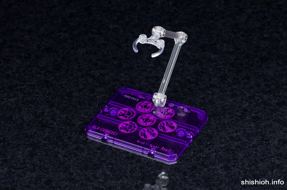 Included with Eiji Greed is a set of optional hands, a personalized Tamashi Act stage stand, specific for this figure and an alternate greed possessed head for S.H.Figuarts OOO TaToBa! |