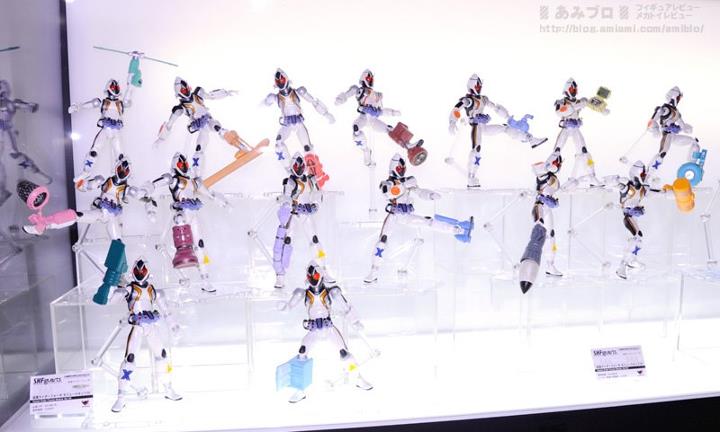 SH Figuarts on display include: A full Kamen Rider Fourze display, including Cosmic States, the Leo Zodiart, OSTO Spacesuit, Power Dizer and the various module/effect parts Kamen Rider Knight Survive Kamen Rider Super-1 Kamen Rider Zeronos Kamen Rider Den-O Super Climax Form Genocider While the SICs seen include: Kamen Rider OOO Tatoba and Tajadoru combos Kamen Rider Gills & Another Agito and Gills Raider/Dark Hopper bikes Kiwami Tamashii Kamen Rider Decade Check out the gallery after the jump!