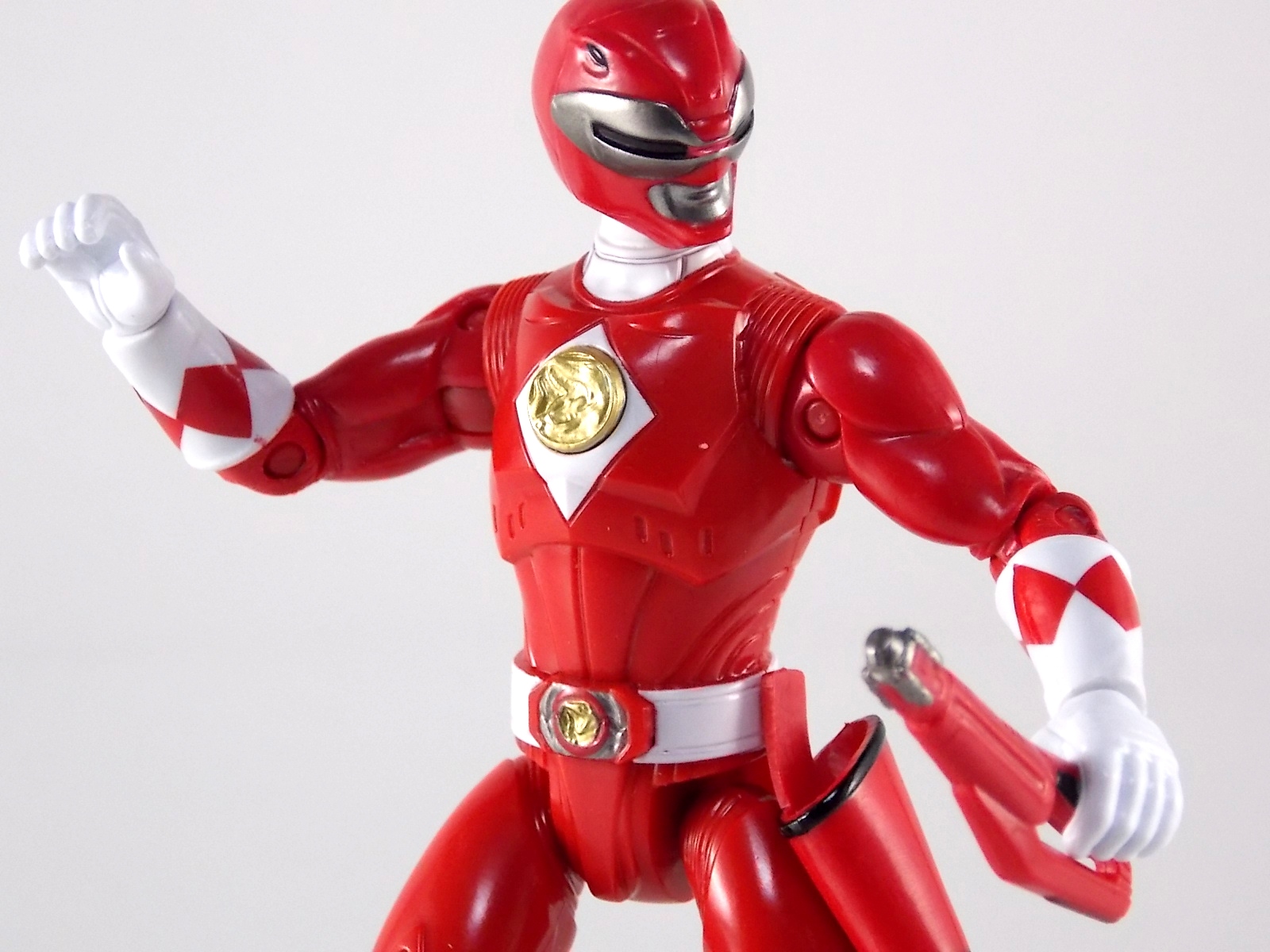 TokuNation is about to take a morphenominal trip down memory lane with you. To start it off today we're taking a look at the first in a series of new figure releases based on the classic 1995 film Mighty Morphin Power Rangers: The Movie! The first figure in this series of galleries is the 5" Legacy Movie Red Ranger! Packaging If you haven't picked up a Power Rangers Legacy figure by now, the Movie Red Ranger follows the same basic formula. Packaged in a triangular box Bandai has done the best job they could at evoking the look of the vintage toys from the original Mighty Morphin toyline. Just as with the Legacy Mighty Morphin TV themed figures this box perfectly replicates the look of the movie toys, right down to the more bare bones black & white colors. It may look a little more drab but it's still a great package. Included on the front of the box is a call out to the 1995 film and to further that connection on the back is a brief description of the films plot. Even going so far as to mention Ivan Ooze & Dulcea. A brief bio about the Red Ranger (Rocky) is also given. Oddly the bio only makes mention of his Ape Ninjazord, when technically speaking these figures are based on the rangers pre-ninja based suits from early into the film. The rangers received the ninja zords after losing their powers. Though the T-Rex and other dino zords were never seen in the film, Rocky calls out "Tyrannosaurus!" to morph in the initial fight, and the Tyrannosaurus coin is still present both on his belt and chest on this figure. An oddity but not necessarily a detriment depending on how picky you are. Figure As far as 5" figures go the Movie Red Ranger offers a bit more than the standard fare. To start you should know that this line of 5" Movie figures is literally the first time ever that the actual movie designs have been put into figure form. The original toys were mere metallic repaints of the TV show toys in movie packaging. But this figure is the real true deal. From a sculpt and detail perspective alone this figure is leagues beyond the generally simple toys of the normal Power Rangers retail lines. Where those 5" figures feel flat and artificially roided out, the Movie Red Ranger is covered in armored technological detailing that really goes a long way to replicating the look of the actual costume. Since these suits were more armor than spandex they had a lot of detail to them, so I'm pleased that the toy has managed to capture that. Though the finer details are pretty bad. The morpher/belt area and chest emblem are incredibly soft. And by that I mean inaccurately sculpted. They just look like they're made of butter or something. The head is also a little bit off to me, a little fuzzy and undefined. On the articulation front the figure has much of what we've come to expect. Hips that swing forward/back & side to side. Knees & shin swivels with surprisingly decent rocker ankles. Though the ankles on mine are quite loose. No waist joint sadly. The arms however are as bad as I've come to expect generally. Simple shoulders that move forward & back and can't properly stretch out to allow the arm a full ranger of up/down movement. This is mostly due to the sculpted in shoulder pads, but it keeps the arms from getting into dynamic poses. Elbow articulation is limited to a 90 degree angle only, and the wrists while on ball joints don't have much clearance to make use of them. The arms are kind of frustrating to me though as a whole. A simple bicep swivel could have made them so much more dynamic. The head is on a fairly decent ball joint that allows for a good bit of tilting in all the primary directions too. I honestly didn't expect it to be as decent as it is. If only it had a little more clearance in the back. Also a peg hole is built into the left side of the belt area to accommodate the included accessories, or a similar one from another 5" Ranger figure. While I don't own the 5" MMPR Red Ranger to compare this figure too, I did have the Figuarts Tyranno Ranger on hand for a general comparison. Accessories 1 - holster. Used for the included weapon accessory 1 - Power Blaster/Blade Blaster. This is an odd one. While this item most certainly is in the film, in fact the 5 core rangers each have one holstered in the movie, none of them are ever used or seen outside the holster. Though the name Power Blaster has been given to the unused weapon, it's apparent that it's very much meant to be the film version of the TV shows Blade Blaster. The sculpt is a bit soft and paint so so, but it gets the point across and matches the holster well. 1 - Power Scope Helmet. This extra head can be used by simply popping off the normal Red Ranger head. This one is meant to replicate the one off "special power" used by the Red Ranger in the film. Using this Scope allows the Red Ranger to track enemy movements, even for concealed or camouflaged foes. The toy version is sadly kind of weak. Neither the sculpt nor paint job are really all there. The red slit painted into the middle of the visor is meant to evoke the red sensor beam on the actual helmet, but instead makes the singular visor look like two separate pieces. On most of the Red Rangers I've seen the paint applications to the Scope helmet vary from acceptable to laughably bad. Honestly I'm a bit disappointed that something else kind of specific wasn't included. I really expected at least the Power Sword. While it may never have been seen in the film, the Blade/Power Blasters were never used either despite their appearance. And the weapon could easily have just been a repack form the Legacy 5" TV figure. It's not something that necessarily needed to be there, but I think it could have helped complete the package. Final Thoughts As someone who loves the campiness of the original Mighty Morphin Power Rangers Movie and the wonderful suit designs I had to buy this 5" Movie Red Ranger figure, but sadly it's not really the quality I want just the quality I'm willing to accep