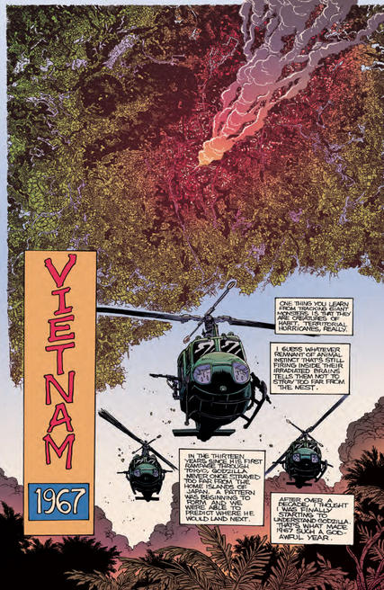 Godzilla #5 Boxer and his team decide it's time to turn their sights to the big game-Godzilla! A perfect plan goes awry when a billionaire adventurer gets his hands on Mechagodzilla. The result? Utter monster mayhem! Godzilla Half Century War #2 The year is 1967 and Godzilla is on the move... to Vietnam! With a war underway, Godzilla is the last thing the country needs. Lieutenant Murakami follows Godzilla to try out some new tech on the monster, but a super-sized foe named Anguirus might just be the most effective counter-measure. It's a rumble in the jungle, don't miss it! Read on to preview these new issues, due out tomorrow!