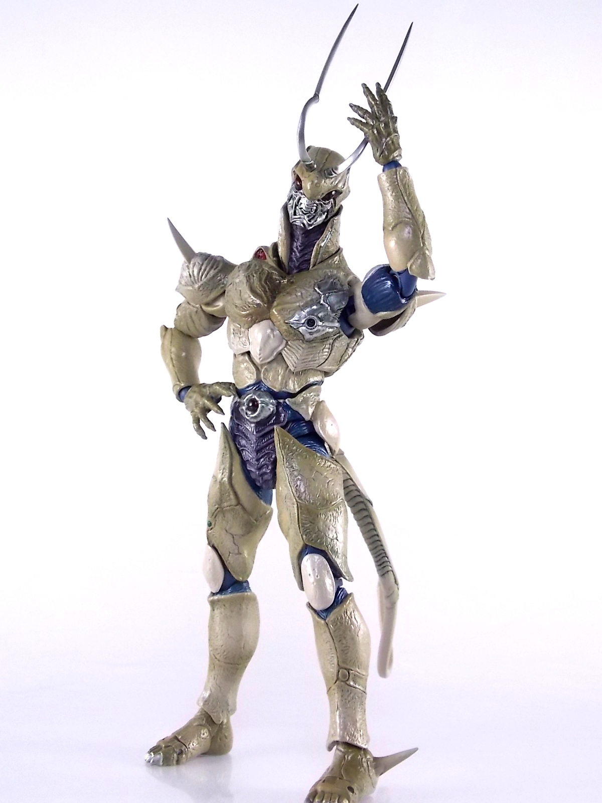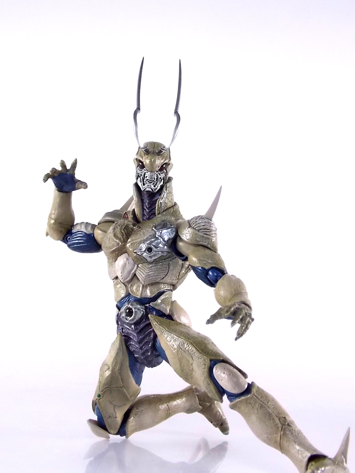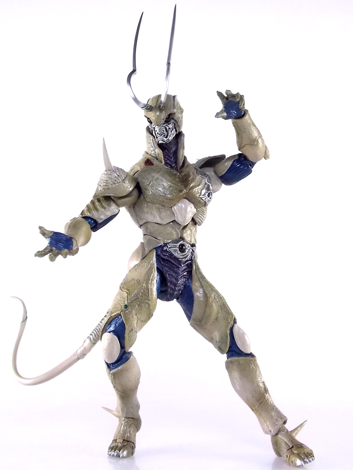 Originally created from the Neo Organism that Professor Motchizuki unleashed on the world, Doras came to exist in the Kamen Rider ZO movie. Yet another film created to celebrate the 20th anniversary of the Kamen Rider franchise, as well as a new beginning of sorts. With the critical failure of it's predecessor, Shin Kamen Rider, ZO became the new de facto modern rider for a brief time. Though Shin, ZO, & later Kamen Rider J comprise a special trio of movies and riders that later came to be associated with the Showa era, they were entirely produced in the early Heisei era. ZO was meant to be the new modern day Rider 1 while J who purposefully shared a similar design, was meant to thematically be his Rider 2. However Doras technically predates both of these heroes. Although ZO is referred to by the Professor as Cyborg #1 the Neo Organism he's been incubating is the first in a new breed of cybernetic Organism. When it matured it created Doras as it's avatar in the world. In effect Doras is more of a tool than character, and in fact is very pseudo-rider like. Though he doesn't transform he shares many design cues as riders and almost appears to be an even more monstrous version of Kamen Rider Shin. The character would appear many years later in the 2010 Decade/W movie wars first in it's initial form and then later in a more dangerous & evolved state. Packaging It's been some time since I ran across some Tamashii Web Exclusive packaging that wowed me, but finally the good stuff is back! Though I still don't have much to say, I absolutely love the line art created for releases like this. This box, much like the figure, is very reminiscent of Kamen Rider Shin from a design perspective. With an almost wire-frame version of the character on the front and spine and a good selection of stock photos on the back, what more could you ask for? Well a special clam shell within the plastic tray designed specifically to protect Doras' wonderful antennae! Main Figure I've really only ever said this once before about a figuart, but I'm prepared to say it again. This figures is absolutely monstrous and gorgeous. S.H. Figuarts Doras is a prime example of how wonderful sculpting and paint can transform what would otherwise be a limited run toy of a rather obscure character, into a masterpiece. Kamen Rider Shin was the same way, though he was solely organic unlike Doras who features numerous technological details on his body. The primary thing you'll notice is that Doras is almost entirely asymmetrical. Head to to toe, if you cut him down the middle the 2 halves would be very different. It brings to life the interesting premise that Doras' body was originally crafted from junkyard scrap metal. A true cyborg fusion of details. The belt area and chest features some of the most detailed sculpting. Though it must be pointed out despite how good he looks, that Doras is not entirely accurate to the suit used in the film. While A very good representation of Doras, the Figuart can't quite capture the changing details of the actual suit. Several versions of it were used through out the film with varying degrees of weathering and detailing that are hard to replicate in figure form. Though I believe this figure has done and admirable job of doing so and is likely the most accurate representation of Doras ever. The head itself is a marvel of detailing and paint wash, I only wish the mandibles could open, or that there were an alternate head included to simulate it. The truly terrifying moments with this character are when he's trying to consume Kamen Rider ZO. You should also be aware that Doras' gigantic antennae are very fragile, as are the various spikes on his appendages. The instructions go out of their way to warn you to be careful with these areas. Regardless the figure is incredibly solid, with some of the most sturdy flat feet I've ever seen. Great balance all around. Though sadly the hips leave much to be desired. The spiked hip armor impacts the waist keeping the legs rather restrained, its a design flaw for the toy but the look of the legs at least is accurate. This issue aside everything else is wonderfully articulated. shoulders, double neck joints, great ab crunch and floating upper torso. If the legs were just a bit better we'd be in serious business. Overall though S.H. Figuarts Doras is a beautiful figure with some seriously nice details. He'll fit right into anyone's collection. It makes me very very hopeful that one day we'll see the Decade version of the character brought to life as well, or perhaps some of the S.I.C. Hero Saga versions of the Doras done up in S.H. Figuarts. Time will tell! Accessories Like many Web Exclusives Doras is rather lacking in the accessories department. It includes: 1 - alternate extended tail. This piece can be used by unplugging the small tail stump from his back. They're both on ball joints so the swap is quite easy. I am disappointed though that the tail doesn't have at least one pivoting joint for some kind of posing. You have to rely entirely on the ball joint at the base to get movement out of it. 2 - sets of hands. Sadly these are 2 very same-y sets of hands. Splayed open ones and then splayed even more open ones. They're just repetitious. One set over the other in favor of another accessory of some sort would have been better. Usually I don't have a ton of suggestions for accessories that should be included with something. But here there's plenty of room for improvement. Doras is lite on the goodies but wow there are tons of options for things they could have included. A replica of his small orb like form, or of the later liquid metal form he assumes for rapid travel. An alternate torso with his chest open to simulate how he tries to kill ZO initially. A replaceable right arm and left leg with mechanical bits. The aforementioned alternate head with open mandibles. I mean come on those are obvious based on his regenerative abilities. It really saddens me that none of