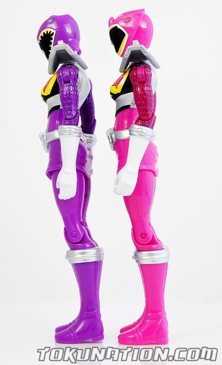 (with special thanks to @doughwatchin on Twitter for helping me find this figure!) Let's jump straight to the review! The Figure Okay - let's cut straight to the chase. If you have the Pink Ranger 5" figure, then you have the Purple Ranger 5" figure but with different colors and a different helmet. That is literally the only difference between the two toys - the color and the helmet. Otherwise, they are identical in molding. This means that the Purple Ranger suffers from the same leg articulation flaws that the last couple years of female Power Rangers figures have - meaning, they can bend their knees and that's it because the skirt (and molding underneath the skirt) totally destroys any actual leg articulation. That's a bummer - I'd love to be able to get her in to a cool pose like I can the male Rangers. Otherwise, the arm articulation is standard with no issues (other than what little issues there are with the shoulder pad). The biggest positive that this figure has is that it's just really pretty to look at. I did change lenses less than halfway through the shoot and you can tell by the picture quality increasing - and I don't know if that makes me love this figure so much or if it's just a more visually appealing figure. I don't know - you be the judge. For fun, I threw in some comparison shots with the Pink Ranger. The Accessories We've seen them in nearly every Ranger figure release thus far - the flimsy plastic Dino Saber and Dino Charge Morpher. They are molded incredibly well, but the Saber suffers from bending. Depending on how it's packaged, you may have a bent noodle of a sword before you even get to start posing. It's a bummer that will not be fixed anytime during this line (or in next year's line if the Bandai Japan figures of Shuriken Sentai Ninninger come up next ... those 5" figures have the same flimsy plastic). The Good!