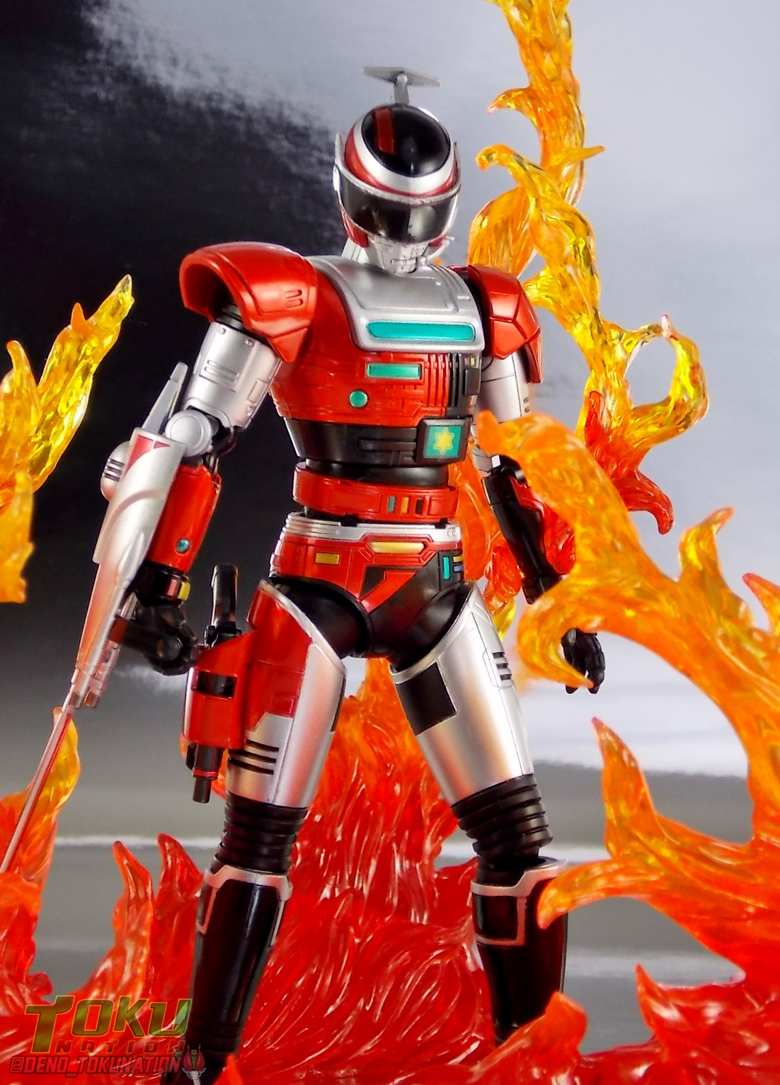 At long last one of the great toku heroes of the '90s joins the S.H. Figuarts line! Hailing form the classic Metal Hero series Tokkei Winspector, today we look at S.H. Figuarts Fire! For a little background on the series (which if you know me you know it's one of my all time favorites) Tokkei Winspector was produced from 1990-1991 but featured a plot set in the near future of 1999. The Tokyo Metropolitan Police Department, faced with rising crime & technological advancements aiding crime, creates Winspector as a special operations unit. One that can tackle threats beyond the capabilities of normal Tokyo MPD officers. Uniquely that meant that Winspector more often than not faced the threat of average criminals or normal people in extraordinary situations rather than a real villain of any kind. No evil organizations here. It was a refreshing premise followed up upon by it's successor as well. Our main hero is Ryoma AKA Fire, a highly skilled police officer and the only human member of the trio. He's helped by his robotic but heroic teammates Bikel & Walter. This series also marked the beginning of a sub-series within Metal Heroes known as the Rescue Hero Trilogy. Winspector would be followed up by Tokkyu Shirei Solbrain and finally Tokusou Exceedraft. Interestingly the link between these 3 series is Winspectors' commanding officer Shunsuke Masaki. Not only is he the founder & chief of Winspector, but after the series ended and the unit was sent to France he went on to found Solbrain as their successors in Tokyo. The 2 teams would eventually team up and Ryoma now known as Knight Fire would become a recurring member of Solbrain's cast. The 3rd series, Exceedraft, would also feature Cheif Masaki to a much lesser extent as the former chief of Winpector & Solbrain, as it was originally intended to be the start of a new continuity of Metal Heroes. ![]() Interestingly enough Chief Masaki's actor, Hiroshi Miyauchi, has appeared through out all of Toei's major tokusatsu franchises as well. Besides his involvement with the Rescue Hero Trilogy he was also the actor who portrayed Kamen Rider V3, Big One, Chief Miura in Ohranger, Zubat, & Aoranger! Now on to the figure you're here for! Packaging I always love it when a new S.H. figuarts subline begins because we get a sort of refresh on the packaging we've gotten used to. The slim style box is here to stay it seems and I'm totally fine with that. In this case Fire gets a nice prominent shot across the bottom of the box with the Winspector logo printed on the plastic window. It feels like there's less room for stock photography on the back of Fire's box. But we aren't buying it for those photos. I do however really like the monotone art on the spine of the box. Packed in with Fires' instructions is also a flyer advertising the upcoming Tamashii Web Exclusive S.H. Figuarts Bikel! That's 2 out of 3 team members down. Main Figures Refreshingly S.H. Figuarts Fire is an all new mold. which is the other best part about a new subline. Bandai has had some missteps in the past with Metal Hero figuarts but it looks like they've finally begun to course correct. We've finally gotten past broken wrists on the Space Sheriffs and the wonky barely functional hips on the B-Fighters. Fire shows us what Bandai can do with his unique design. While the lower half of his body doesn't have much going on we're back to nice flat feet, no curved clown shoes like the B-Fighters. We also get fully functional hips with a decent range of outward and forward/back motion. Far more than previous Metal Hero releases have been capable of. Both Bikel & Walter will feature the same legs. On Fire's right hip is a holster to carry the included Daytric M2. Now the upper body has some truly incredibly detailing. Fire features some really exquisite & intricate technological molding all over his abdomen, chest & arms. It's just superb how they've managed to recreate the show suit. While anything being taken from life-size down to this scale will undoubtedly miss some things, as far as broad strokes are concerned Fire is one of the most detailed figuarts to date. Right down to the crisp paint apps on the various panels and switches molded into his body as well as the really sharp looking Winspector logo on his abs. Much like the torso the arms also have nice asymmetrical detailing, most prominent in the shoulder pads. I don't know why but those shoulder pads have always drawn me to this design. The same way that a Zaku II from Mobile Suit Gundam manages to look just so classically good. My one gripe with the arms, and this may just be isolated to my Fire, is that the elbow pads will fall off for any reason or no reason at all. Perhaps the best feature of this figure is the just dead on perfect helmet. When Ryoma's Crush Tector suit begins to bond to him during transformation it starts with the body armor forming first. The helmet is the last component. When it appears on his head, his human eyes are still visible until a slit drops down with the bright yellow robotic eyes of his helmet. Then the semi-transparent visor slides down over these. This gives off a look very reminiscent of many Metal Heroes through out the franchise that would feature glowing eyes inset glowing eyes. The toy replicates this bit of the transformation by having a hinged visor. You can display him however you wish but traditionally Fire's visor would be down. Though this is probably the best job Bandai has ever done of making the visor just transparent enough to make the eyes appear to be glowing behind it even when it's down. Fire is just an excellently sculpted & engineered figure. I mean it when I say this is the best Metal Hero figuart to date. However there are numerous small details missing. For every panel line or indicator that is painted there's at least another that isn't Like the the 3 square indicators behind Fire's com link that are unpainted on the figure. The nice thing about this figure is that is also fina