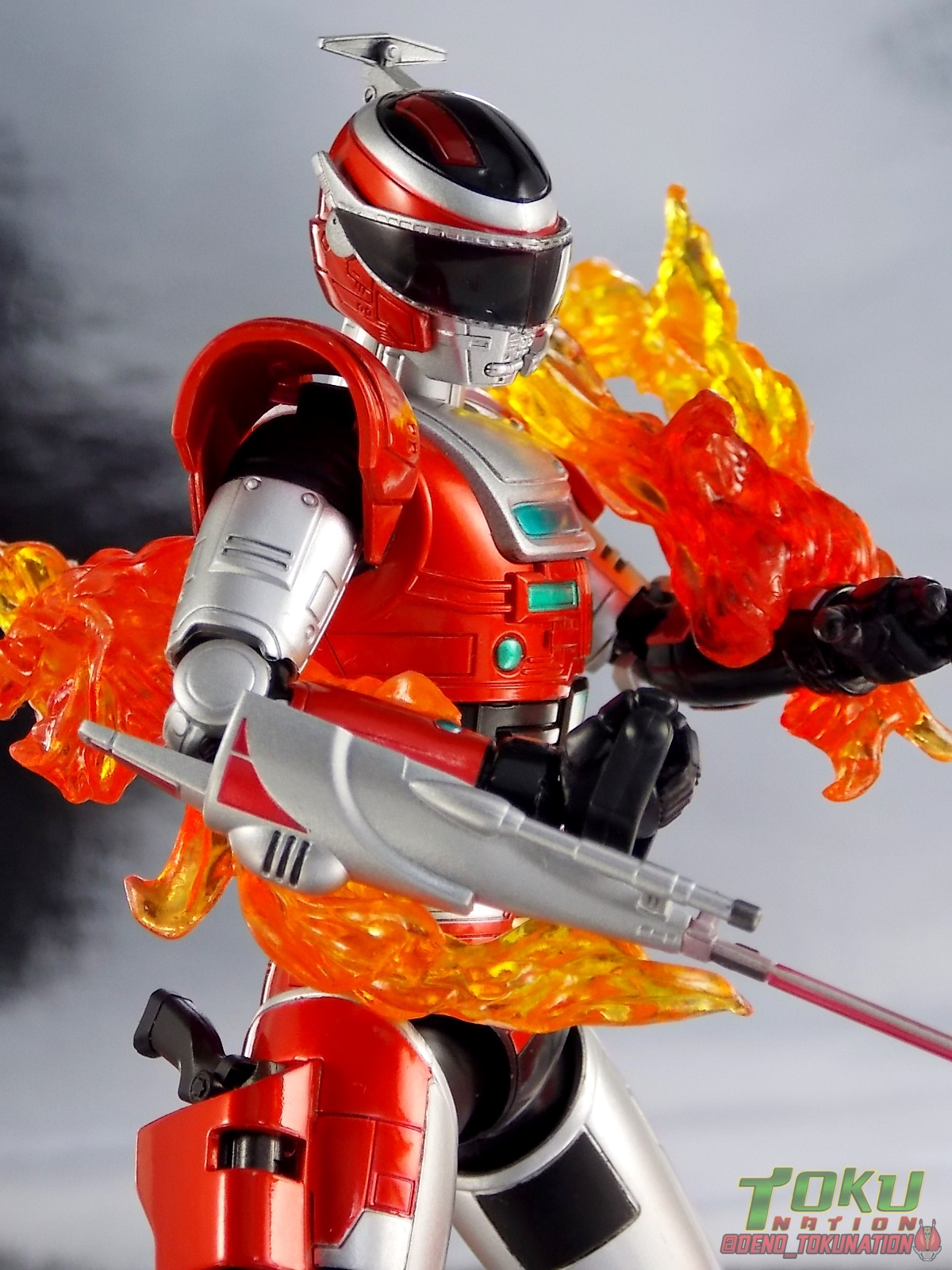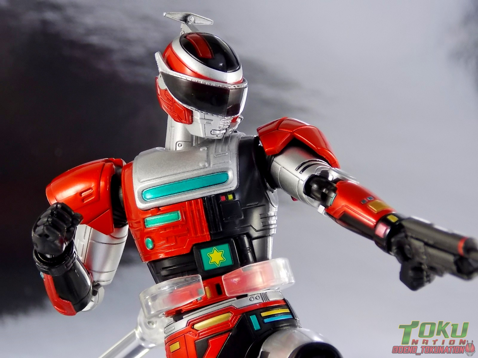 At long last one of the great toku heroes of the '90s joins the S.H. Figuarts line! Hailing form the classic Metal Hero series Tokkei Winspector, today we look at S.H. Figuarts Fire! For a little background on the series (which if you know me you know it's one of my all time favorites) Tokkei Winspector was produced from 1990-1991 but featured a plot set in the near future of 1999. The Tokyo Metropolitan Police Department, faced with rising crime & technological advancements aiding crime, creates Winspector as a special operations unit. One that can tackle threats beyond the capabilities of normal Tokyo MPD officers. Uniquely that meant that Winspector more often than not faced the threat of average criminals or normal people in extraordinary situations rather than a real villain of any kind. No evil organizations here. It was a refreshing premise followed up upon by it's successor as well. Our main hero is Ryoma AKA Fire, a highly skilled police officer and the only human member of the trio. He's helped by his robotic but heroic teammates Bikel & Walter. This series also marked the beginning of a sub-series within Metal Heroes known as the Rescue Hero Trilogy. Winspector would be followed up by Tokkyu Shirei Solbrain and finally Tokusou Exceedraft. Interestingly the link between these 3 series is Winspectors' commanding officer Shunsuke Masaki. Not only is he the founder & chief of Winspector, but after the series ended and the unit was sent to France he went on to found Solbrain as their successors in Tokyo. The 2 teams would eventually team up and Ryoma now known as Knight Fire would become a recurring member of Solbrain's cast. The 3rd series, Exceedraft, would also feature Cheif Masaki to a much lesser extent as the former chief of Winpector & Solbrain, as it was originally intended to be the start of a new continuity of Metal Heroes. ![]() Interestingly enough Chief Masaki's actor, Hiroshi Miyauchi, has appeared through out all of Toei's major tokusatsu franchises as well. Besides his involvement with the Rescue Hero Trilogy he was also the actor who portrayed Kamen Rider V3, Big One, Chief Miura in Ohranger, Zubat, & Aoranger! Now on to the figure you're here for! Packaging I always love it when a new S.H. figuarts subline begins because we get a sort of refresh on the packaging we've gotten used to. The slim style box is here to stay it seems and I'm totally fine with that. In this case Fire gets a nice prominent shot across the bottom of the box with the Winspector logo printed on the plastic window. It feels like there's less room for stock photography on the back of Fire's box. But we aren't buying it for those photos. I do however really like the monotone art on the spine of the box. Packed in with Fires' instructions is also a flyer advertising the upcoming Tamashii Web Exclusive S.H. Figuarts Bikel! That's 2 out of 3 team members down. Main Figures Refreshingly S.H. Figuarts Fire is an all new mold. which is the other best part about a new subline. Bandai has had some missteps in the past with Metal Hero figuarts but it looks like they've finally begun to course correct. We've finally gotten past broken wrists on the Space Sheriffs and the wonky barely functional hips on the B-Fighters. Fire shows us what Bandai can do with his unique design. While the lower half of his body doesn't have much going on we're back to nice flat feet, no curved clown shoes like the B-Fighters. We also get fully functional hips with a decent range of outward and forward/back motion. Far more than previous Metal Hero releases have been capable of. Both Bikel & Walter will feature the same legs. On Fire's right hip is a holster to carry the included Daytric M2. Now the upper body has some truly incredibly detailing. Fire features some really exquisite & intricate technological molding all over his abdomen, chest & arms. It's just superb how they've managed to recreate the show suit. While anything being taken from life-size down to this scale will undoubtedly miss some things, as far as broad strokes are concerned Fire is one of the most detailed figuarts to date. Right down to the crisp paint apps on the various panels and switches molded into his body as well as the really sharp looking Winspector logo on his abs. Much like the torso the arms also have nice asymmetrical detailing, most prominent in the shoulder pads. I don't know why but those shoulder pads have always drawn me to this design. The same way that a Zaku II from Mobile Suit Gundam manages to look just so classically good. My one gripe with the arms, and this may just be isolated to my Fire, is that the elbow pads will fall off for any reason or no reason at all. Perhaps the best feature of this figure is the just dead on perfect helmet. When Ryoma's Crush Tector suit begins to bond to him during transformation it starts with the body armor forming first. The helmet is the last component. When it appears on his head, his human eyes are still visible until a slit drops down with the bright yellow robotic eyes of his helmet. Then the semi-transparent visor slides down over these. This gives off a look very reminiscent of many Metal Heroes through out the franchise that would feature glowing eyes inset glowing eyes. The toy replicates this bit of the transformation by having a hinged visor. You can display him however you wish but traditionally Fire's visor would be down. Though this is probably the best job Bandai has ever done of making the visor just transparent enough to make the eyes appear to be glowing behind it even when it's down. Fire is just an excellently sculpted & engineered figure. I mean it when I say this is the best Metal Hero figuart to date. However there are numerous small details missing. For every panel line or indicator that is painted there's at least another that isn't Like the the 3 square indicators behind Fire's com link that are unpainted on the figure. The nice thing about this figure is that is also fina