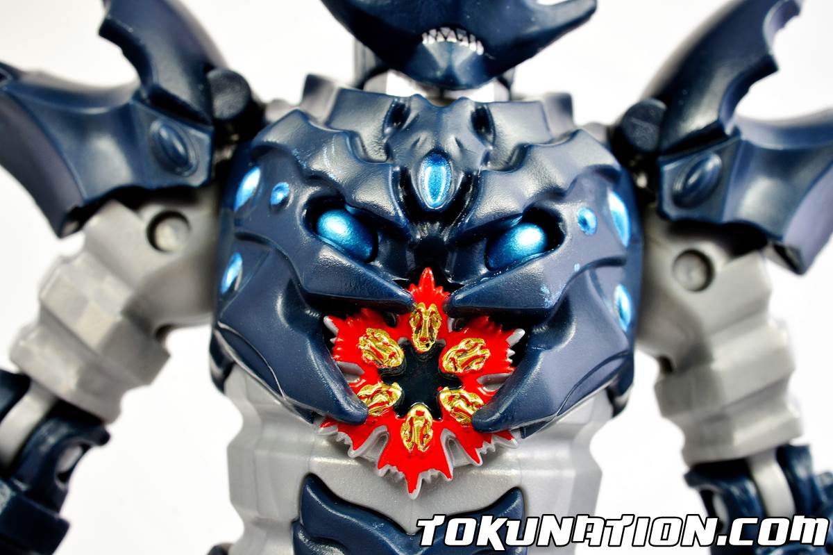Spoiler alert! The evil Snide is the monster form of another character named Heckyl who both apparently share the same body but not the same mind. But they both have one goal in common - getting the Energems and destroying the Power Rangers Dino Charge team! But how does the figure stack up? Let's find out! Reviewing the Overall Figure For starters, Snide has a decent amount of articulation - 13 total points (1x head, 2x each arm, 2x each leg, 2x elbow and 2x knee joints). This is not a bad amount, but for a figure that wields a long sword it's somewhat disappointing that your articulation is limited because of no ankle or wrist swivels that we've come to enjoy with most of the other figures. The sculpting? Absolutely gorgeous as we've come to expect from Bandai America. Sadly, again as we've come to expect, the paint application is lacking. Yes - the red decoration on the front of his body is well down (check out the pic in the gallery). And his eye and his teeth being all individually painted is impressive, but the second you flip the figure over you have a solid off-white back. I know, I know - nothing is going to change (unless he becomes a Legacy figure and costs us another $5) but I'm hoping someone somewhere reads this and sees how something that could be a top tier figure gets lessened as you feel you have to FINISH PAINTING IT YOURSELF to get the figure you're supposed to get. Argh. A strange feature - his shoulder pads are on hinges that move up as to not block the articulation of the arms. But unlike Sledge's where they were further down his arm as to not interfere at all, Snide's are actually on the shoulders, meaning his arms cannot go straight up - they will always have to be at an angle at best. So while the figure LOOKS cool (from the front), I wish it had wrist and ankle/thigh articulation (like the Ranger figures get) and as always, more paint. Reviewing the Accessories Snide comes with a sword. We're not quite sure why (his Sentai counterpart had an axe ... but then again, he was only seen in the crossover movie and not the regular series, which is part of Snide's charm as he is more or less an original villain in the series). Either way the sword's hilt looks pretty normal for an evil bad guy's sword, but it has very little detail other than that. So on to the bullet points. Yay bullet points. The Good!
