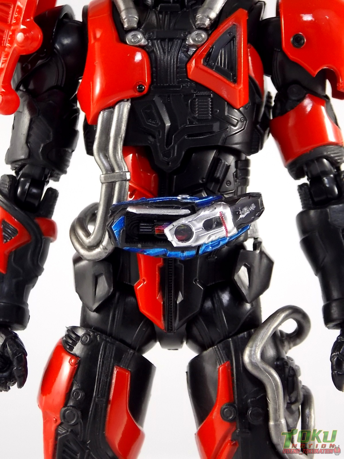 Drive really is all we need. Or at least in my case it is. The time has come once again for a Kamen Rider Drive gallery, this time focusing on the latest Tamashii Web Exclusive release for the series, S.H. Figuarts Kamen Rider Super Dead Heat Drive! Whoa that's a mouthful. Super Dead Heat Drive is a form exclusive to the film Kamen Rider Drive Surprise Future. A bit of junk heap of parts Super Dead Heat is accessed when Shinnosuke haphazardly tosses the Tridoron Key into Chasers' Mach Driver and the body resembles Mashin Chaser but with a retrofitted Drive Type Speed head. It's an interesting form to say the least. Read on below for more! **Much of this review will be very similar to my S.H. Figuarts Mashin Chaser review. The 2 share a nearly identical base body so there won't be much new to say on that point. Packaging Business as usual once again! Nothing new to report with the now standard Drive release packaging. Just some epic shots of Drive himself on the box. Otherwise we have seen this numerous times over up til now, just as with Type Technic, Heart, etc this is a Tamashii Web Exclusive so the box is windowless. Main Figure Just a heads up right up front, Super Dead Heat Drive's main body is 100% identical mold wise to that of Mashin Chaser. Take away the belt, head, and red paint and it's just straight up Mashin Chaser. There's nothing inherently wrong with that, it's accurate, but it needs to be pointed out. And much like Mashin Chaser, while Super Dead Heat looks gorgeous, he doesn't actually feature a ton of paint apps. Mostly because he doesn't need them, the red paint apps present are all that are needed on top of the gorgeously detailed black base body. The grey piping on his body is molded in the appropriate color from the outset. So while Super may not seem to have as many paint applications as other Figuarts, the details are all present. The Mashin Chaser/Super Dead Heat mold is probably one of the more elaborately molded Figuarts ever. Each thigh is unique, both forearms, both shoulders, his chest, head, everything really. This release in particular embodies a ton of chaotic opposite elements. That's mostly due to the rampart hodgepodge nature of how it's created in the film. Made from Mashin Chasers' body, with Mach/Chasers' Driver, & Drives' head makes for one very interesting combo. And thankfully the sculpt of the figure has captured this perfectly. The Mach Drive actually works well on this mold and doesn't impact waist articulation. For this release it's been paired with a Tridoron Key instead of a Signal Bike. Like the Bikes & Shift Cars it is removable but I wouldn't recommend it for fear of losing this tiny piece of plastic. While this head isn't nearly as elaborate as the molds original one, it's by far the most interesting part of the figure. There's just so much extra technical detailing that's been grafted onto the Type Speed head. It really helps sell the junker thrown together nature of this form. I wish there had been a better paint wash to bring out more of the finer details, but it still looks great. By the way those tubes I mentioned above? They're made of an awesomely flexible plastic so you're much less likely to break them than you think. They still tend to get in the way of moving the figure's torso a bit. But my biggest gripe with them is how difficult the abdominal tubes make it to use a Tamashii Stage properly. Most of the time the grabbing arms on one can't get under them and around the waist. Unless you have larger grabbing arms like those that come with Cloth Myth figures, they aren't big enough to wrap around the tubes on the outside either. So it's a pain to find a happy position with a stage. The shoulders and arms are still a bit of an issue with this release too. Though this body really does have a full range of motion, both shoulders have ball jointed pads on them designed to prevent you from lifting the arms up and fully out perpendicular to the body. The shoulders can be pulled down and out but when you try to bend them back and up the sheath around the shoulder impacts the torso. Rather than being able to put his arms in a 90 degree angle relative to the torso, you get more of about 75-80 degrees. So it's a bit hard to create his more iconic poses. One more thing to mention is that this figure retains Mashin Chaser's back port! Meaning Super Dead Heat is entirely compatible with the Busou Chaser Accessory Set! So if you want to give your Super Dead Heat a pair of rocking mechanical wings you can. I had some real fun with this in the images below. Oddly enough the connection for these wings on Super Dead Heat appears to be MUCH stronger than it was for my Mashin Chaser. They fall off of him very easily. On Drive though it's a very nice and snug fit. And wow do they look great with this body, pairing him up with a Door Gun & Handle Sword really does the trick too. As you'll read below Super Dead Heat Drive is a sparse release. Accessories The pickings are VERY slim: 3 - Sets of additional hands. And that is it. Now to be totally fair, Super Dead Heat doesn't have a Break Gunner like Mashin Chaser, nor does it technically have access to the Door Gun or Handle Sword. I've included images of these weapons as well as the Busou Chaser Accessory set with Super Dead Heat just to have some cool pictures. But he doesn't come with any of them. Though the hands he comes with, as straight repacks of what came with Mashin Chaser, are designed to hold a Break Gunner specifically while the other general "holding things" hands work for just about anything. This shouldn't be a surprise coming from Bandai, but would it have killed them to include something, anything really, to offset the price? Final Thoughts Taking us back to the lines sophomore outing using the Mashin Chaser body I expected only to be mildly please with this release. The minor functional issues of the mold are of course still present, and there's the accessory issue, but it's still 