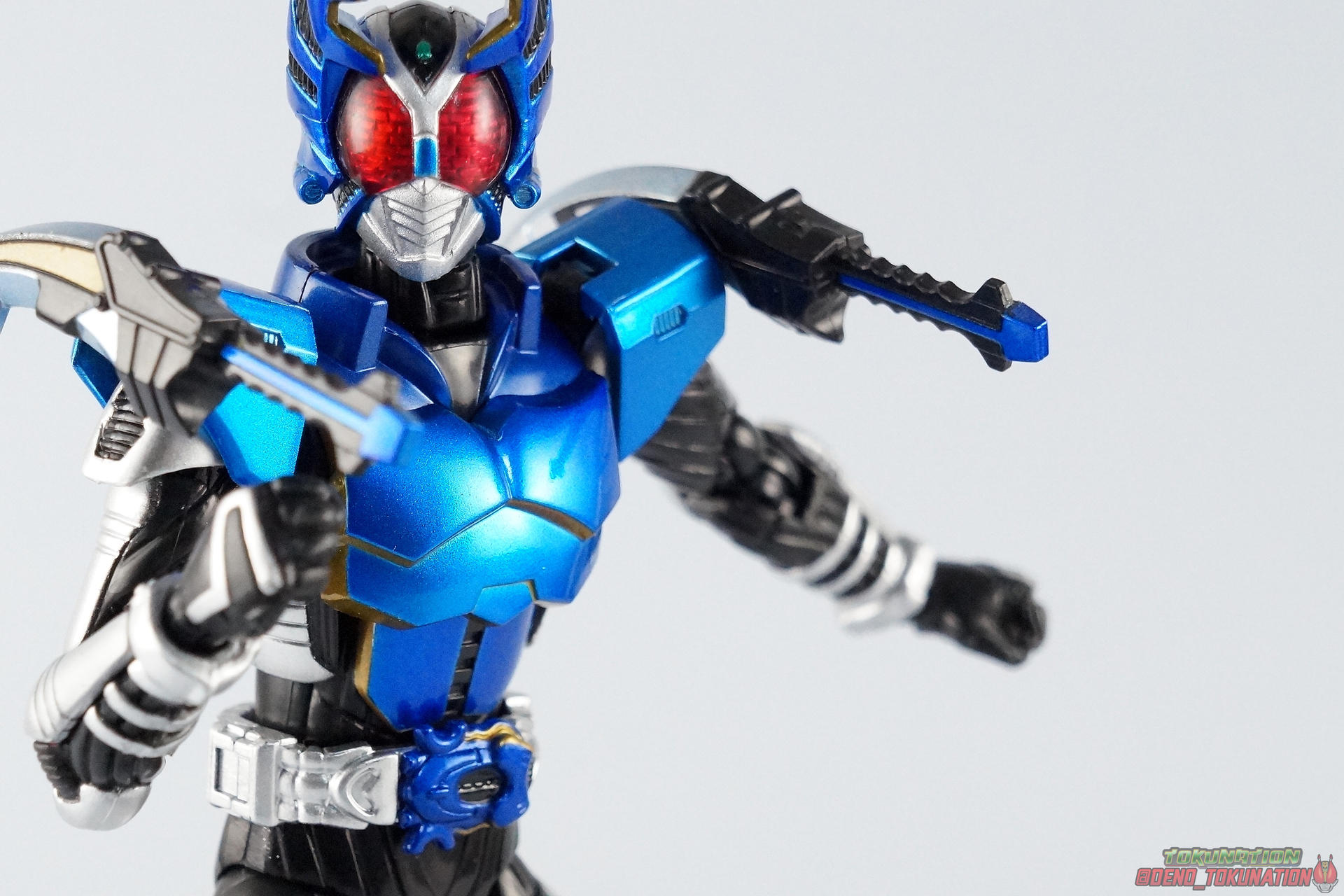 We're trying something a little new this month at TokuNation. Or rather, something old. As the S.H. Figuarts line continues to change and improve we're seeing a lot of figures getting the Renewal or Shinkocchou Seihou treatment. Recently we took a look at the original release of Kuuga Ultimate Form, in anticipation of his S.S. release. Well today we're going to take a look at another older release that's about to be made obsolete by his S.S. replacement, S.H. Figuarts Kamen Rider Gattack! Pacakging Dating back to 2008, Kamen Rider Gattack hails from the era of the gray box. It would be some time before figuats packaging would really get creative so Gattack has the same sort of generic looking packaging as figures would for the next several years through the line. Monotone with a single gray scale image of the actual show suit on the front, and a sampling of stock photography on the back, Gattack was pretty standard for the time. Main Figure Perhaps one of the more divisive series in the franchise, Kamen Rider Kabuto struck a chord with just as many fans as it generally infuriated. For the first real time since Ryuki we had a wide cast of riders all with their own motives and abilities running amok. And depending on how you liked the show, their handling was great or awful. Many could argue the real star of the show was Gattack himself rather than Kabuto, and I'd tend to agree. But the divisiveness of the series carried right on over to the lineup of figuarts produced from it. Kabuto has the distinction of being one of the most complete S.H. Figuarts lineups ever. Nearly every rider from the show and it's summer film were created aside from the one-note Bright Troopers, Hyper Gattack, and the masked forms of all the riders. But the figures that were produced also have plenty of faults. Kamen Rider Gattack was actually the 4th release in the Kabuto line (preceded by Punch & Kickhopper, and Kabuto). But the issues of those first releases weren't resolved by his time, nor really at any point with this series. For starters the Kabuto riders all feature a pretty similar and basic body. Just like any rider series the suits tend to share common elements especially in shows like Ryuki, Kabuto, Den-O, Gaim, etc. Lots of parts reuse. And maybe that's part of the problem for the original Kabuto figuarts. They all have one glaring flaw, bowed legs. Inexplicably most of them have legs that bow inward near the knee giving them a rather awkward stance when in an upright position. The legs themselves are also pretty spindly. But at this time rider figuarts were generally smaller and closer to Shouchaku Henshin in design and style anyway. In 2008 terms this was still a decent figure. Speaking of Souchaku Henshin the Kabuto riders featured something prominently carried over from it, die cast parts. Not only are the feet still the old style diecast, but so are the hip/thigh & shin panels. But where the legs meet the body we sadly get a pretty ugly breaking up of the sculpted in body lines. The much more modern Shinkocchou Seihou Kabuto fixes the hip & leg issues after all these years, but these older release all carry these traits. Overall this line had some pretty lanky proportions that put many people off from buying them way back when. The upper body is at least painted in a great metallic blue that seems to have fared much better over time than say, Kamen Rider Knight Survive. The gold highlights on the undersides of the armors pitifully dull and incorrect. Sadly the head is a swing and miss in terms of proportionality and sculpt, and functionality as well. Thanks to the neck cufff it can't really lean back properly. For the time it was great but looking at it now the head's a little too narrow and oblong. On top of this Gattacks arms can look rather puny just like his legs, they can't really assume natural looking poses very easily. Likewise Gattack's shoulder pads are kind of a mess. They hinge up just enough to be useful but they do look a little silly with the plugs molded in for his included weapon. When the Gattack Double Caliburs are attacked the shoulders do nothing to help get them out of the way of his face. But that's probably more a problem of the suit design in general than this figure's personal shortcoming. Sadly not a terribly serviceable figure after these 8 years. Undoubtedly passable for the time he was made, along with the rest of that line, Kamen Rider Gattack has not aged well. His design and execution just leave a lot to be desired. He's had a home in my collection for these 8 years but I'm ready to trade up to his Shinkocchou Seihou successor now. Accessories As is the case with many releases from this period, Gattack doesn't come with much: 2 - sets of additional hands. 1 set of splayed open hands, 1 set for holding his included weapons. 1 - Gattack Double Calibur set. These combining shotels are normally stored on his shoulders when not in use though he can be often seen without them at all. When attached they tend to make it hard to get cool poses out of the arm simply because they push your focus away from his body and often times get in the way of his face. He can use them individually like short swords or combine them into scissor like mandibles for use with his Rider Cutting finisher. Final Thoughts That's it but honestly that's not unexpected for this figures' age. 8 years ago this was the standard of the line. With the upcoming Shinkocchou Seihou releases of Gattack, the original becomes pretty obviously outclassed. Unlike our recent look at Kuuga Ultimate ahead of his own renewal, Gattack just doesn't fit in very well with newer figures either Ss you can see with him next to S.S. Kabuto, the original Gattack lacks the bulk and style to stand up to today's releases. If you're on a budget and would like to pick up an original S.H. Figuarts Kamen Rider Gattack up (maybe buy mine, please?) then he may be the way to go. But if you want a truly great representation of the cha