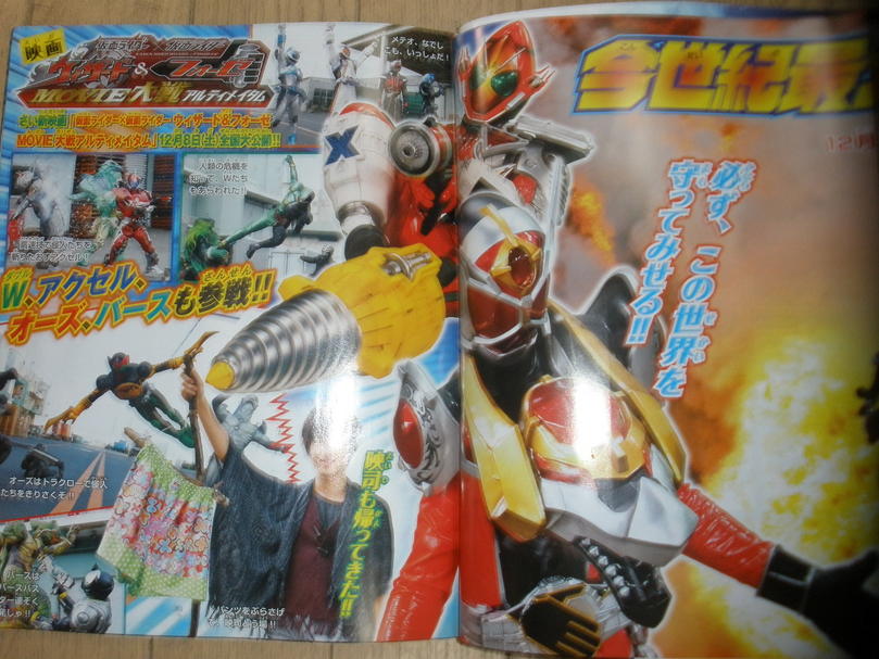 Following todays info on Gokaiger Vs. Go-Buster come magazine scans for upcoming Tokumei Sentai Go-Buster and Kamen Rider Wizard episodes! In todays scans, courtesy of Toku Insider, we get our first glimpse of Wizards' Hurricane Dragon Style and his special Thunder Ring. Also featured are a few pages noting all of Wizards' rings so far and their abilities as well as a few pages focusing on Movie Wars Ultimatum!