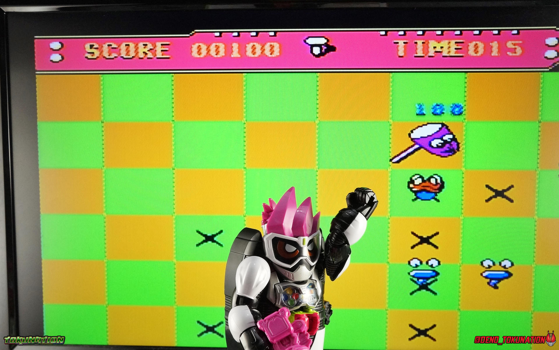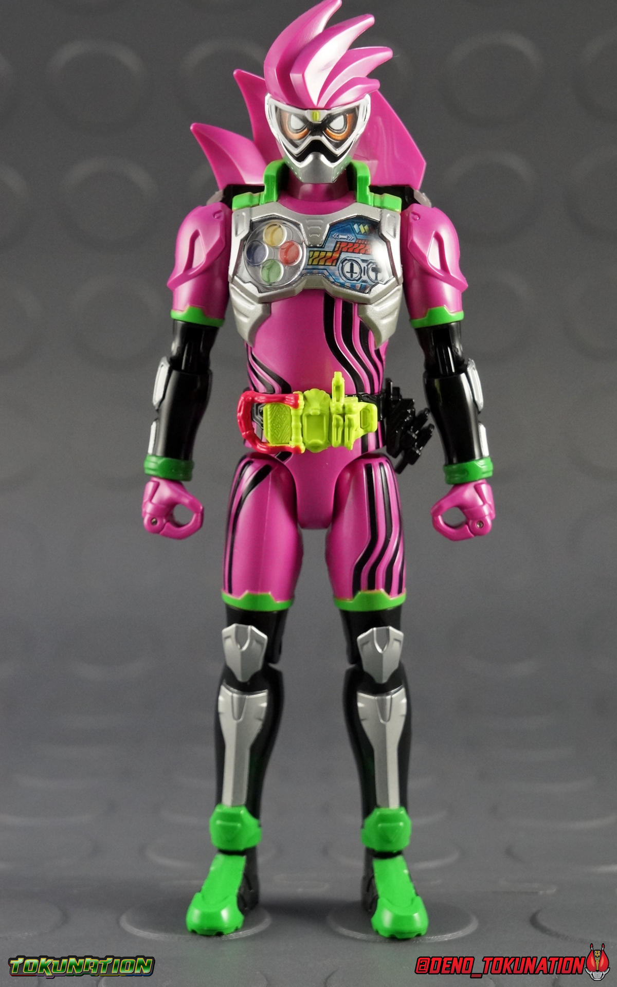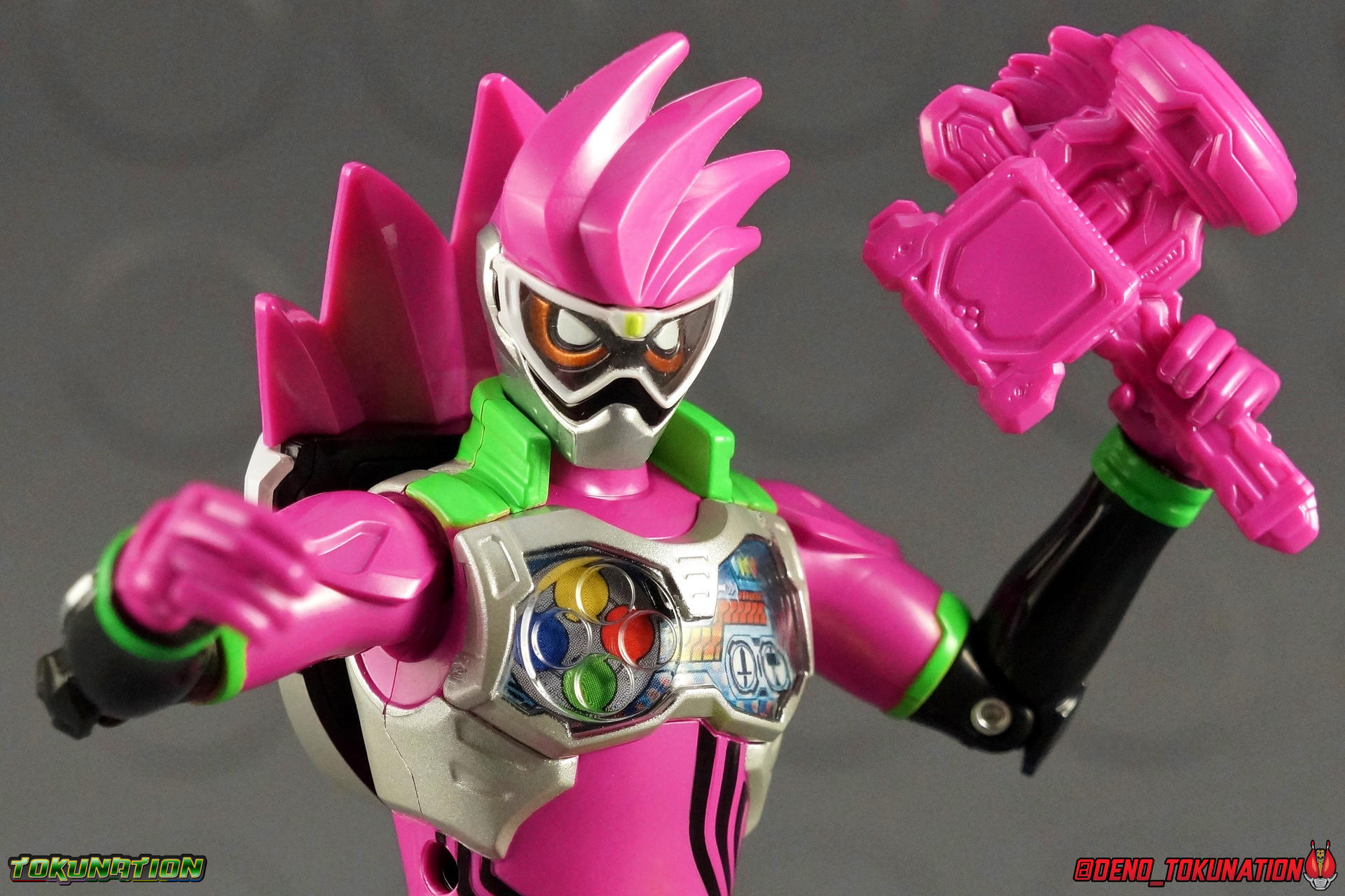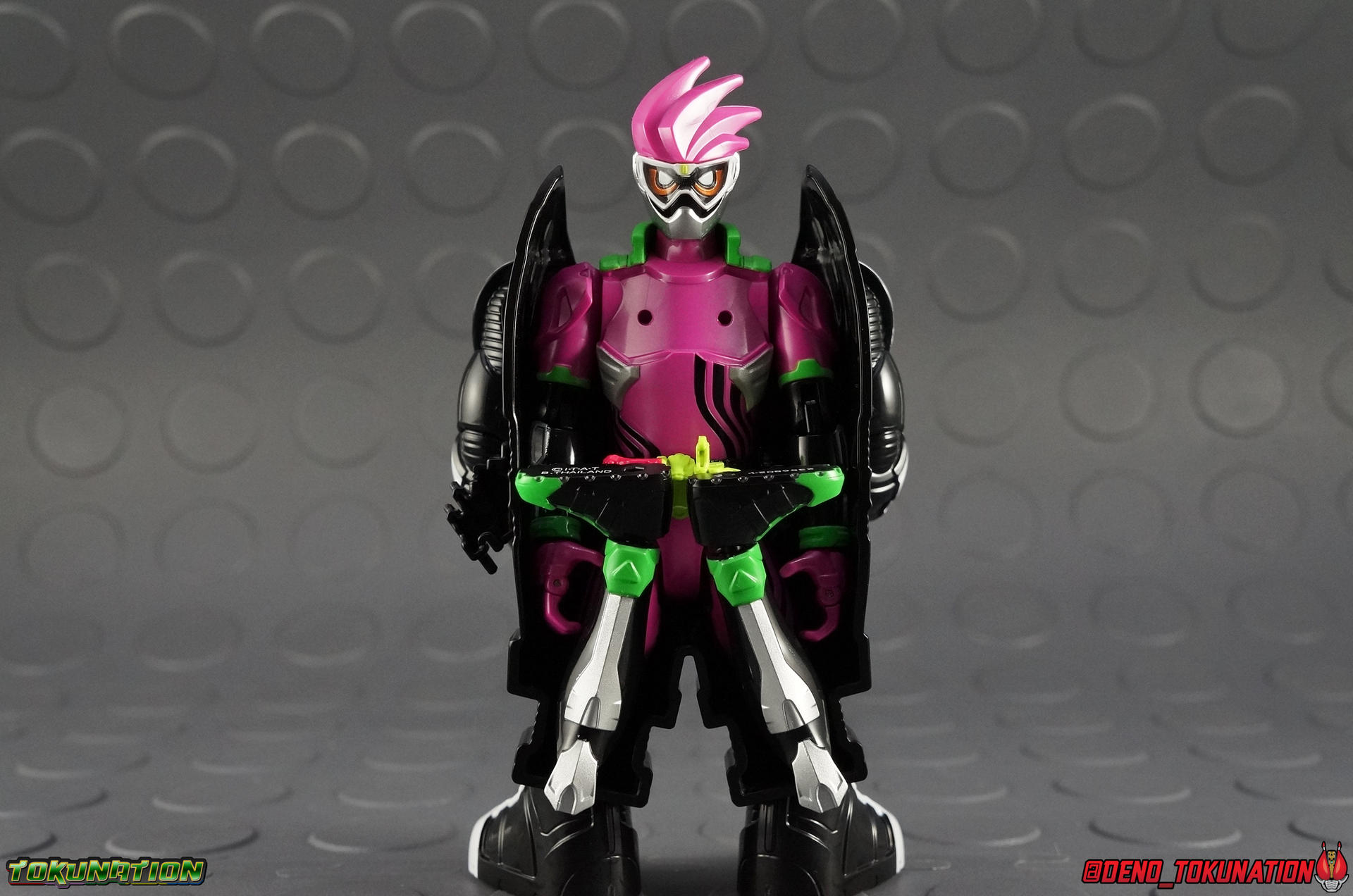 After what's seemed like forever, the first wave of Kamen Rider Ex-Aid merchandise has made it out into the wild and we now have our very first review of it! Kicking off our year with Ex-Aid we've got a gallery of the first release in the "gimmick line" of figures for this year. Level Up Rider (LVUR) 01 Kamen Rider Ex-Aid Level 1! To be accurate this figure is called that, but can transform into Ex-Aids more standard Level 2 form. Think of Level 1 as an equivalent to Kuuga Growing Form or Den-O Plat Form. A pre-form of sorts. ***This review will be split across 3 posts. Below I've taken a look at the Level 1 form on it's own as well then Level 2 after. Packaging For a series as wacky looking and themed as Ex-Aid the packaging is perfectly in line with it. Some nice 8-bit style graphics, bright gaudy colors, what you expect from this show. Though it is a little more toned down looking than I expected. I always enjoy a nice box design. Not much to discuss here otherwise, just the usual type of stock photos & packaging cross sells. Ex-Aid Level 1 (shell) The simplest part of this review focuses on the least complex piece of this set, Ex-Aid Level 1. We know now that Premium Bandai is going to be releasing what they've dubbed a Full Action version of the Level 1 figure. A fully poseable alternative to what we have here. And what we have here is a hollow shell that can't do much of anything. It can't even be bothered to look terribly accurate to the show design actually. Thanks in no small part to the gigantic open back half and the large black protruding panels that are meant to "hide" the core figure being plugged on the back. Level 1's articulation is entirely limited to the arms which rotate 360 on a rather loose ball joint. This is mostly useless though as they impact the shell a lot. Frankly they just aren't useful at all, they may as well have not even been articulated. The fists are also on a 360 swivel, but ultimately for no point. Seeing as the rest of the figure can't do anything, the arms can't emote enough to make Ex-Aid Level 1 look like he's doing much. I've included comparison shots of this form with vintage DX Superchange Kabutack & DX Magnet Change Robotack (in bot forms) below. This series' theme of SD forms that undergo super transformations into more humanoid ones clearly takes inspiration from these classic Metal Heroes. If only the toyline itself had taken more as well. This shell is pretty pathetic when compared to these 2 excellent 17 year old toys. Level 1 is ultimately kind of a nothing figure. What sucks even more is that Ex-Aid is the only rider from this series to include the Level 1 shell. If you buy any of the future LVUR releases you have to share their Level 1 forms with this figure. That's a pretty big miss for this years gimmick. More on that bellow. Ex-Aid Level 2 (Main Figure) Dai Henshin! Ex-Aid Level 2 is sort of the main event of this set. Generally these gimmick style figure that Bandai pumps out every year are the same at a base body level. And I think that can mostly be said for this year too. We have the rotating waste but no abs, the rotating shoulders with bicep swivel, the "2-digit" finger joints, the 45 degree hips and ball jointed ankles. What is new this year is the addition of double jointed knees. Now these were only implemented to accommodate the figure's transformation, generously so-called that. That joint helps you fold the legs up against the chest and connect Level 2 to the inside of the Level 1 shell. be careful however, when you press these legs up against themselves the black paint on the pink thighs can and will flake off easily. This figures also features several hard points for attaching later Level upgrades to the main body. But there's nothing to do with them currently. But frankly that's the only point where this figure really diverges from base gimmick figures we've had in previous lines. Ex-Aid Level 2 doesn't do anything else terribly original. The chest plate and Level 1 face are removable as is the Gamer Drive but 2 out of 3 of those are just for transformation purposes. The chest plat does look quite nice, the head has a great design as well. But this figure still suffers from weak hand joints and articulation cuts that are so close to being useful, but fall short. Legs that don't have a terribly great range already can't make use of the extra knee joint for much of anything. Much like the first entry in the Ghost Change line last year, this figure feels like it was poorly thought out, Bandai just needed something on the shelves. You can still get a decent range of motion out of it, but for the normal retail price of this set, 4536 yen, you may feel like you haven't gotten your monies' worth. Accessories Ex-Aid Level 1/2 includes only 2 accessories: 1 - Gashacon Breaker (Hammer Mode) 1 - Gashacon Breaker (Blade Mode) Neither of these accessories is properly painted, in fact they're each cast in 100% pink plastic. Not unusual at all for gimmick line figures. Just noticeable when it's a giant solid hunk of pink plastic. The Hammer is actually too heavy for the weak finger joints to maintain very well. It tends to fall out rather easily. The Blade is less of a nuisance but the weak joints strike again I'm afraid. Typical of this type of figure really. Final Thoughts Level Up Rider Ex-Aid Level 1 needed to do one thing to ensure this was a successful line, have a fun gimmick. Sadly it doesn't. Because the gimmick is never properly realized. It's no Armor Change, No Tire Koukan, it's not even Ghost Change. This gimmick has cross compatibility sure, but it's a total ripoff. In order to display the level 1 form of any other rider you need a shell, the shells only come with Ex-Aid himself. You'd need to buy this figure somewhere around 4 or 5 additional times right now. Between the figuarts 3-pack that features Ex-Aid Level 2 & the Premium Bandai Level 1 figure, the Level Up Rider series will probably be one of the more quickly