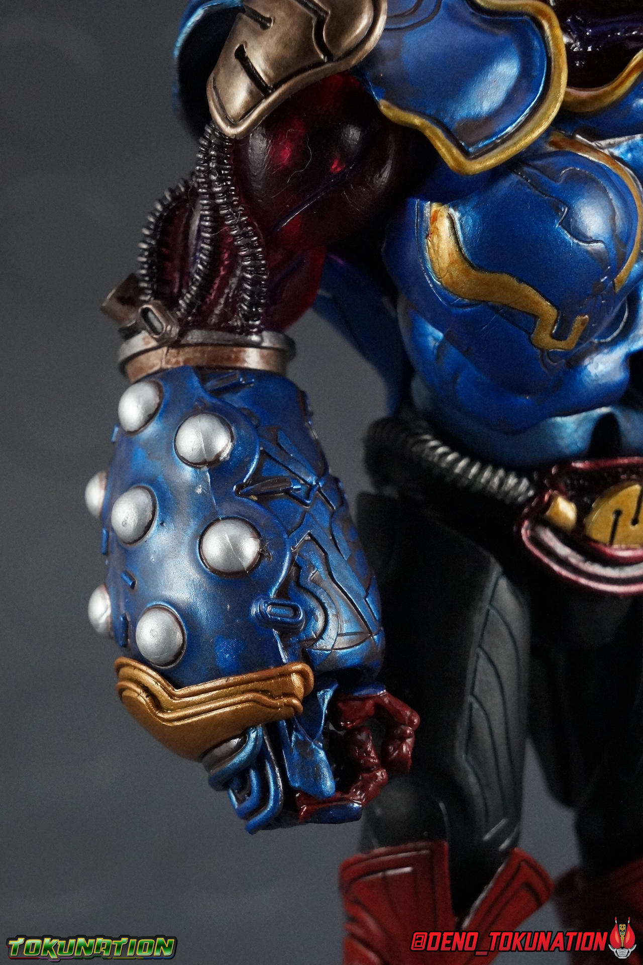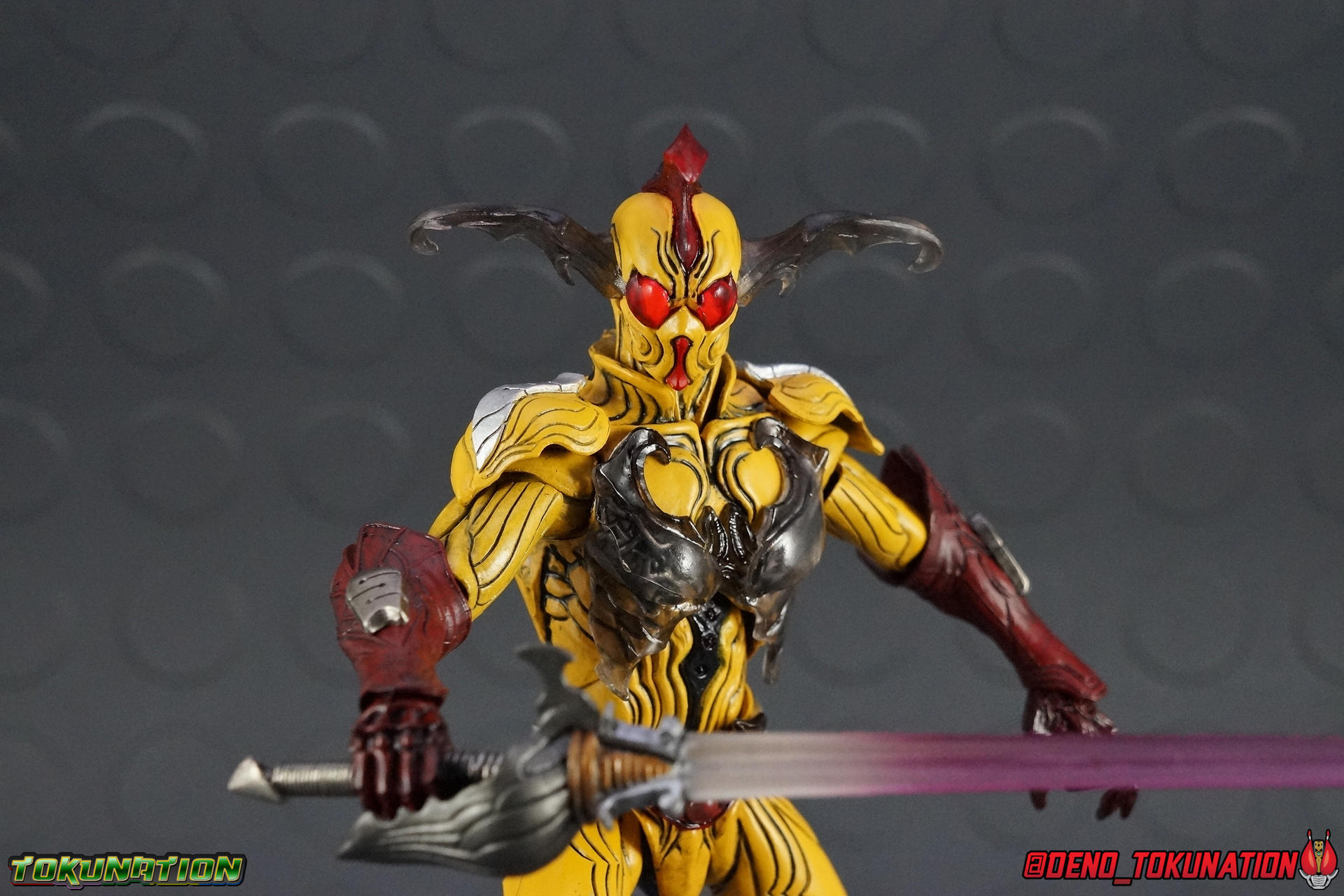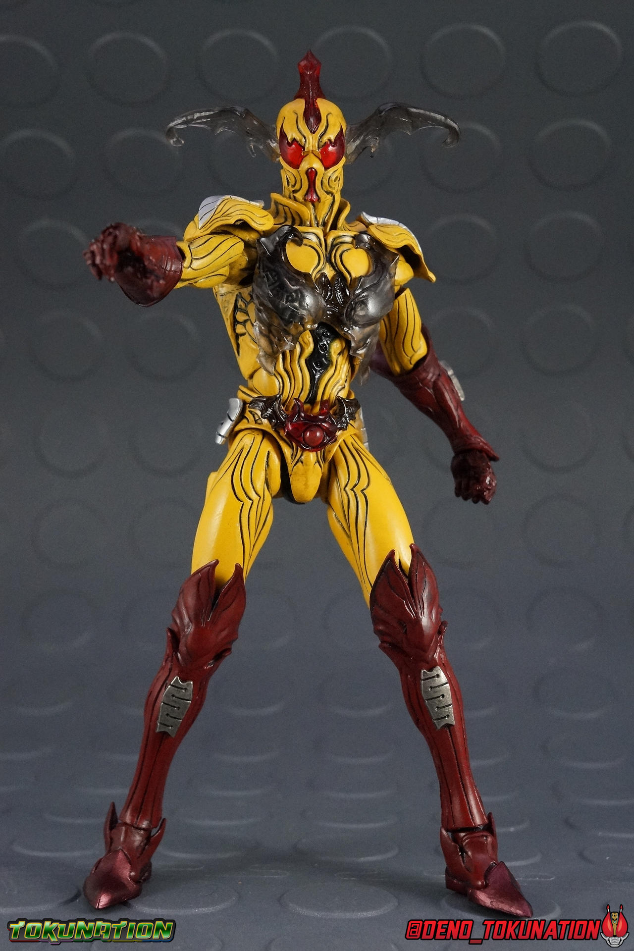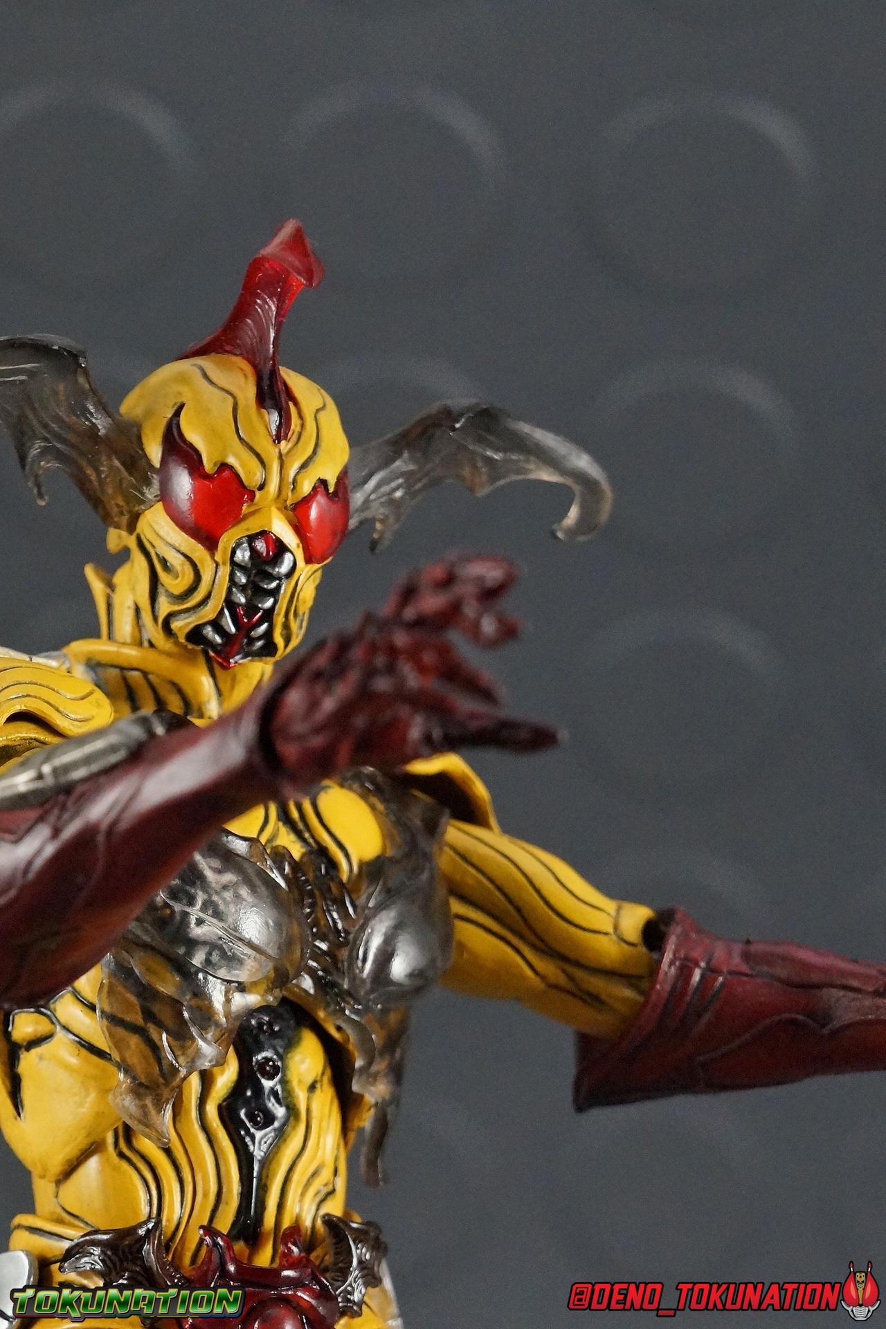As for the figures, they're pretty nice. I was never a big fan of SICs, especially the larger 8'' scale. After my Kuuga kind of self destructed, I've always been super weary ![]() Zabitan definitely looks the coolest in my book, but then again, apparently I'm a massive edgelord ![]() His overall look is just awesome. While he doesn't pop as much as his companions, I think I just like him on style points alone. Iburu effing pops, though. Bright yellow and red is certainly hard to miss ![]() While he certainly has the most interest head design in my opinion, and his Jo gun is pretty baller, I just don't find the rest of his design to be on par with the other two. I do like the look of Gabura. He definitely screams out "Monster." It's just...I dunno. I don't think I'm too big a fan of his, still. Including the axe and mace is pretty cool, though~ The SICs are pretty nice figures, and definitely give these designs a lot of cool style to them that the original designs were lacking.