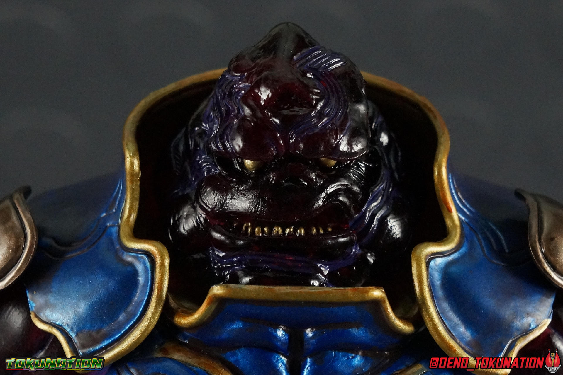 The classic 1975 Shotaro Ishinomori series Akumaizer 3 may not be something you're familiar with, but today that changes! The series stars Zabitan, a rogue member of the Demon Clan who has come from the Downworld to the human one, in order to become a hero. However he's initially pursued by 2 members of his clan's Internal Affairs, Ibiru & Gabura. While these 2 do initially hunt Zabitan, rather quickly (by episode 1's end) his code of honor and mercy win the duo over to his cause. Thus the Akumaizer 3 are formed! Rather oddly, although these characters are definitely demons, Zabitan himself is in fact half human as he has a human father. ![]() Akumaizer 3 was a brief footnote in Toei Tokusatsu history, running 38 episodes from 1975-76. But a very good one. So good in fact that it spawned a direct sequel in the form of Choujin Bibyun! A series which featured the Akumaizer 3 as new heroes, rewarded with human bodies in honor of their good deeds in their past life. While these 2 series don't receive much love these days, the Akumaizer 3 were dug up to be used as villains in Kamen Rider Wizard & Fourze Movie Wars Ultimatum. Their designs in that film were reminiscent of the S.I.C.S. but still very much their own thing. Now as with most all S.I.C. releases you'll see that the figures reviewed below are VERY different compared to their original show designs. The majority of S.I.C. designs are actually the brain child of the incredibly talented Takeyuki Takeya, whom you may recall designed all of the Roidmude for Kamen Rider Drive. His particular style has always been interesting and seeing it put to use redesigning these 70's Showa heroes is just incredible. The S.I.C. Akumaizer 3 figures are in fact the only high end poseable figures that have ever been made of the team as well. While these figures may not fit what you're looking for in terms of their classic appearances, you should read the review below to find out why they're so great. ** Post #1 is all Zabitan, #2 is Ibiru, & #3 is Gabura plus group shots Packaging As with most S.I.C.'s the box here is pretty huge. Granted this is also a pretty extensive 3-pack. But the box is just massive. The 3 figures are twist tied into the packaging with a separate parts tray for accessories. Be careful when removing older releases like this from box though as older S.I.C.s can be very fragile. Main Figures Zabitan- What you first need to know about these figures is that they're big. Like nearly 8" tall. S.I.C. prides itself on intricate detail and design flourishes so this 8" scale really helps set it apart even further from Bandai's other collector lines. The Chogokin implied by the "C" in S.I.C. obviously means there are diecast parts involved as well. On Zabitan those parts consist of the bronze colored shin guards, belt buckle, hip guards, shoulder pads, and forearm guards. Now they don't add much weight to this figure, but they do add, I don't know how to word it, a tiny bit of class perhaps? Regardless they don't improve or hinder the figure. With a S.I.C. of this age your expectations should be tempered in the first place. Older S.I.C.s tend to be fragile and easily broken. Tight joint tolerances/part fits and sometimes inconsistent quality can be a bad combination. And like many older S.I.C.'s articulation can be limited. Zabitan has some standard articulation himself, but it's hindered by his design. While he does have ball hips knees and ankles, his ankles are very loose, his knees are on a double joint that pulls out easily, and his hips don't have much back or outward range. It can be very difficult to get him into a dynamic stance with these issues. The upper body features a pretty nice waist and ab joint, but the shoulders pose more problems, the arms can only get up to about 45 degrees. The elbows pose a similar problem. So you get a pretty mixed bag articulation-wise out of Zabitan. The potential is there, the execution is not. But thankfully the head is on a peg to make exchanging it with the alternate ones easier, so it's mostly free of obstruction. Sidenote, the head originally attached tot he figure is actually one that represents an alternate state for Zabitan. This "standard" head is specifically a call back to episode 1 of the series when Master Mezalord used the Demon Crest to attempt to regain control of Zabitan. His skull began to crack and ripple from the strain so this head features that damage. The visor is also a bit larger and differently shaped on this head, a nod to how Zabitan's visor would change often from when he's not in combat to when he fights other members of the Demon Clan. An alternate and more towards show accurate head is included. As for the rest of the figure, a nice light blue paint wash is applied to black parts to draw out details, and a black wash is applied to the white parts. So it's a gorgeous looking figure, but one that ultimately doesn't function extraordinarily well. Ibiru - Ibiru shares many basic design similarities with Zabitan actually. His body is simply a bit more lean & slender. But ultimately the two are very very similar. Ibiru has all the same basic articulation and issues that come with it as Zabitan. Though I do feel he is more limited in the elbow area, and has weaker elbow joints, his shoulders seem much more free to rotate. His legs also feel a bit less restricted, though his ankles are just as weak. Ibiru also features diecast like Zabitan, though not in exactly the same spots (shins, forearms). But basically everything else about the two is the same from a design & execution standpoint. Ibiru even has a dark paint wash meant to bring out more details on the intricate suit. Speaking of the suit, just like Zabitan, Ibiru is a pretty interesting departure from the original costume. Though much like Zabitan it feels like a natural progression of the demon theme. The standard head attached to the body out of box is much like Zabitans in that it's more menacing than normal, but not 