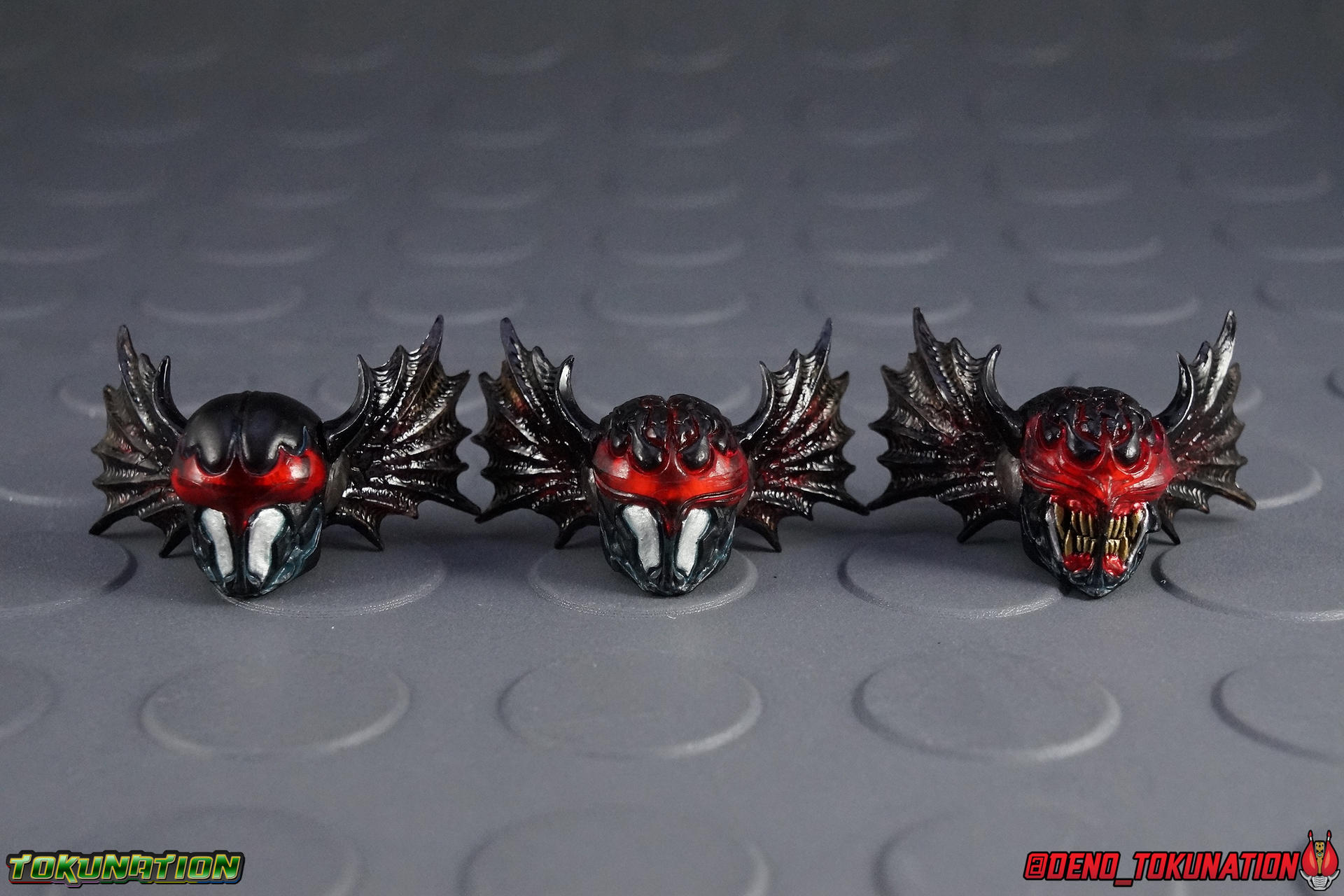 The classic 1975 Shotaro Ishinomori series Akumaizer 3 may not be something you're familiar with, but today that changes! The series stars Zabitan, a rogue member of the Demon Clan who has come from the Downworld to the human one, in order to become a hero. However he's initially pursued by 2 members of his clan's Internal Affairs, Ibiru & Gabura. While these 2 do initially hunt Zabitan, rather quickly (by episode 1's end) his code of honor and mercy win the duo over to his cause. Thus the Akumaizer 3 are formed! Rather oddly, although these characters are definitely demons, Zabitan himself is in fact half human as he has a human father. ![]() Akumaizer 3 was a brief footnote in Toei Tokusatsu history, running 38 episodes from 1975-76. But a very good one. So good in fact that it spawned a direct sequel in the form of Choujin Bibyun! A series which featured the Akumaizer 3 as new heroes, rewarded with human bodies in honor of their good deeds in their past life. While these 2 series don't receive much love these days, the Akumaizer 3 were dug up to be used as villains in Kamen Rider Wizard & Fourze Movie Wars Ultimatum. Their designs in that film were reminiscent of the S.I.C.S. but still very much their own thing. Now as with most all S.I.C. releases you'll see that the figures reviewed below are VERY different compared to their original show designs. The majority of S.I.C. designs are actually the brain child of the incredibly talented Takeyuki Takeya, whom you may recall designed all of the Roidmude for Kamen Rider Drive. His particular style has always been interesting and seeing it put to use redesigning these 70's Showa heroes is just incredible. The S.I.C. Akumaizer 3 figures are in fact the only high end poseable figures that have ever been made of the team as well. While these figures may not fit what you're looking for in terms of their classic appearances, you should read the review below to find out why they're so great. ** Post #1 is all Zabitan, #2 is Ibiru, & #3 is Gabura plus group shots Packaging As with most S.I.C.'s the box here is pretty huge. Granted this is also a pretty extensive 3-pack. But the box is just massive. The 3 figures are twist tied into the packaging with a separate parts tray for accessories. Be careful when removing older releases like this from box though as older S.I.C.s can be very fragile. Main Figures Zabitan- What you first need to know about these figures is that they're big. Like nearly 8" tall. S.I.C. prides itself on intricate detail and design flourishes so this 8" scale really helps set it apart even further from Bandai's other collector lines. The Chogokin implied by the "C" in S.I.C. obviously means there are diecast parts involved as well. On Zabitan those parts consist of the bronze colored shin guards, belt buckle, hip guards, shoulder pads, and forearm guards. Now they don't add much weight to this figure, but they do add, I don't know how to word it, a tiny bit of class perhaps? Regardless they don't improve or hinder the figure. With a S.I.C. of this age your expectations should be tempered in the first place. Older S.I.C.s tend to be fragile and easily broken. Tight joint tolerances/part fits and sometimes inconsistent quality can be a bad combination. And like many older S.I.C.'s articulation can be limited. Zabitan has some standard articulation himself, but it's hindered by his design. While he does have ball hips knees and ankles, his ankles are very loose, his knees are on a double joint that pulls out easily, and his hips don't have much back or outward range. It can be very difficult to get him into a dynamic stance with these issues. The upper body features a pretty nice waist and ab joint, but the shoulders pose more problems, the arms can only get up to about 45 degrees. The elbows pose a similar problem. So you get a pretty mixed bag articulation-wise out of Zabitan. The potential is there, the execution is not. But thankfully the head is on a peg to make exchanging it with the alternate ones easier, so it's mostly free of obstruction. Sidenote, the head originally attached tot he figure is actually one that represents an alternate state for Zabitan. This "standard" head is specifically a call back to episode 1 of the series when Master Mezalord used the Demon Crest to attempt to regain control of Zabitan. His skull began to crack and ripple from the strain so this head features that damage. The visor is also a bit larger and differently shaped on this head, a nod to how Zabitan's visor would change often from when he's not in combat to when he fights other members of the Demon Clan. An alternate and more towards show accurate head is included. As for the rest of the figure, a nice light blue paint wash is applied to black parts to draw out details, and a black wash is applied to the white parts. So it's a gorgeous looking figure, but one that ultimately doesn't function extraordinarily well. Ibiru - Ibiru shares many basic design similarities with Zabitan actually. His body is simply a bit more lean & slender. But ultimately the two are very very similar. Ibiru has all the same basic articulation and issues that come with it as Zabitan. Though I do feel he is more limited in the elbow area, and has weaker elbow joints, his shoulders seem much more free to rotate. His legs also feel a bit less restricted, though his ankles are just as weak. Ibiru also features diecast like Zabitan, though not in exactly the same spots (shins, forearms). But basically everything else about the two is the same from a design & execution standpoint. Ibiru even has a dark paint wash meant to bring out more details on the intricate suit. Speaking of the suit, just like Zabitan, Ibiru is a pretty interesting departure from the original costume. Though much like Zabitan it feels like a natural progression of the demon theme. The standard head attached to the body out of box is much like Zabitans in that it's more menacing than normal, but not 