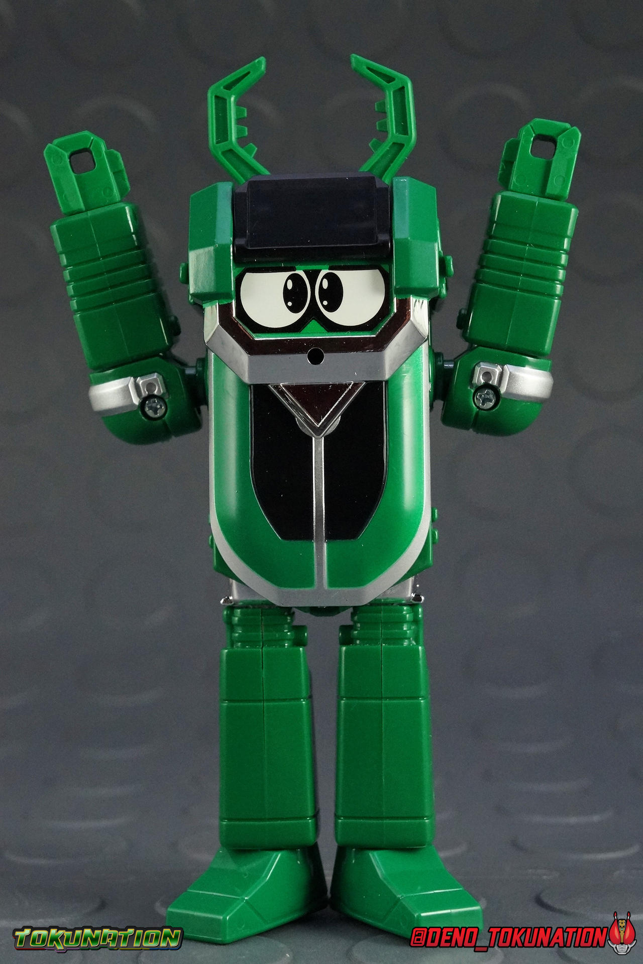 We're back for another delightful trip down memory lane with B-Robo Kabutack! You may recall that last year I examined the main man himself with the DX Super Change Kabutack Set. That massive 3 pack included not only Kabutack but his Drillut & Zabut armors as well. While the rest of this toyline isn't quite as complex as all that, it's fun none the less. So without further adieu, let's take a look at one of Kabutack's greatest friends & allies with Superchange Kuwajiro! For a quick refresher, B-Robo Kabutack ran from 1997-1998 and features an absolutely excellent gimmick for it's toy line (though the following year would see an even better one for Robotack). Kabutack's toy line focused on the Superchange gimmick. Each figure would have a base Normal Mode. A sort of child like innocent animal themed robot. And while each figure's Superchange was executed differently, by way of numerous hidden collapsed joints or inverting of the figures' body parts, they all also had unique Super Modes. Read on below to see just what to expect from Kuwajiro. Packaging Kuwajiro comes in the standard box type of the line. Unlike the DX Kabutack 3-pack, it's a pretty modest slim box design with an assortment of stock photos of both modes. Nothing terribly interesting. Main Figure You'll notice that as I continue doing these galleries, each figure in the Kabutack line comes packaged in Super Mode. But I like to start my reviews with Normal mode first, so that's where we'll begin. Kuwajiro Normal Mode is your typical kid friendly fun little bug-bot. He isn't particularly imposing, or functional even, but he has charm. I think the most odd thing about him is that he's significantly taller than Kabutack Normal & Super Modes. No matter what mode Kuwajiro is in, it's very much at odds with his friend. Theoretically the two should be about the same height in either mode. But Kuwajiro Normal Mode indeed towers over Kabutack. Now as for the functionality I mentioned, in this mode Kuwajiro is pretty limited. Only his arms do anything meaningful and even then they simply rotate 360 degrees and can swing out and up. It's really great, but because he lacks elbows you can't use them for much. The legs are similarly stunted in that they have twist ankles and hinged knees, but no hips. So getting him to balance for what limited poses he can achieve is difficult. Normally with this line you see a marked improvement between modes, but not this time. To get Kuwajiro to Super Mode, begin by opening the flaps on either side of his head, this will give clearance for the arms to move up. After opening the flaps just pull up on his antlers. This basically moves the entire body into the appropriate position. This fully reveals the Super mode head, slides the shoulders into position where the flaps were, and also raises the lower body up above the thighs. Which makes the legs artificially appear longer. The arms can be extended by pulling the forearms down as well. Don't be fooled though, while the arm is held together by a pin, even in this mode there aren't elbows. Then you just need to flip down the chest panel to cover his Normal Mode eyes and Super Mode is done. Compared to what we saw with Kabutack, Kuwajiro's Super Mode transformation is pretty basic. Honestly it's probably the most basic in the entire line. But sometimes that can be a good thing too. Kuwajiro Super Mode doesn't drastically change anything from Normal Mode. Everything is still basically where it was, just with leaner more heroic proportions. Equipping him with his Hasamic Cutter weapon finishes the look off nicely though. As before he can't dynamically pose and stands far above Kabutack height wise, but he's a very interesting bot design wise. Whether intentional or not, characters from Kabutack really do take some thematic inspiration from both B-Fighter shows that preceded it. Kuwajiro looks great with G-Stag. Considering Kabutack would later team-up with Blue Beet & Kabuto, I think the thematic similarities are intentional as well. Normal Mode is probably the better of the 2 modes, but neither really does anything extraordinary. Ultimately Kuwajiro is likely the weakest figure in the line, but even then it's still a fantastic toyline. Accessories 1 - Hasamic Cutter. This weapon needs to be assembled by cutting parts from a sprue first. It's a soft rubbery type plastic that you've undoubtedly encountered over the years with Bandai products. When assembled it can act as both sword and scissor-like cutting weapons. Perhaps an old predecessor to Kamen Rider Gattacks' Double Calibur? 1 - Label sheet. As with most any figure in this line a lebl sheet is included to replicate more show details. I have never used my label sheet and don't intend to. At some point in the future I'd like to get some quality repros made to use but that's for another time. Final Thoughts While not the most exciting release in the line, Superchange Kuwajiro still embodies some of the things that make B-Robo Kabutack one of my. I'm all about diminutive robots getting super heroic forms and at a bare minimum, Kuwajiro still manages that. And with the low low prices a majority of the figures in this toyline tend to go for (Kuwajiro was just 1200 yen) I can certainly overlook some functional flaws.