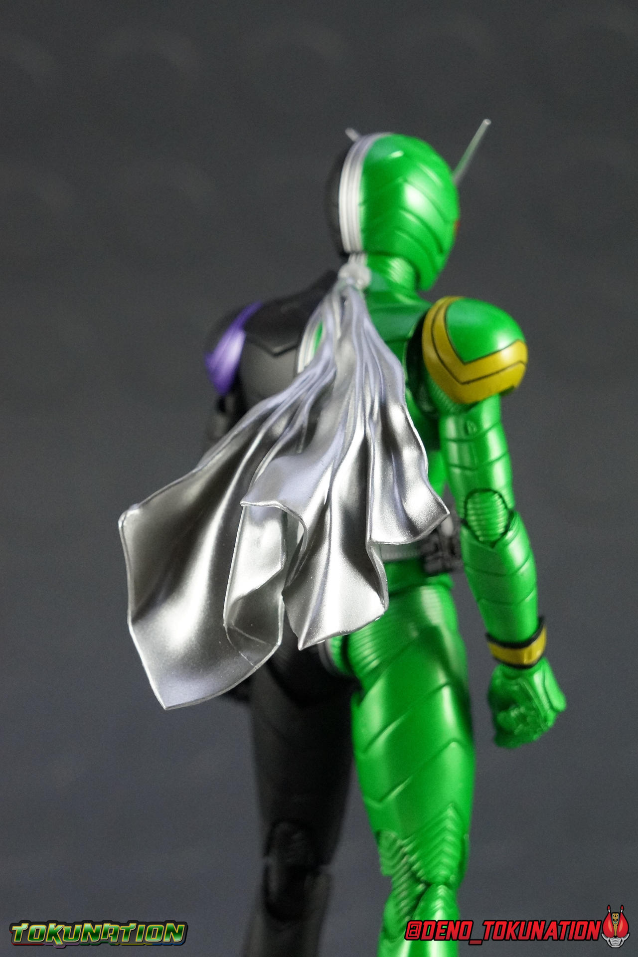 Once again Bandai have outdone themselves with another sophisticated modern update to a fan faovrite character. After years of being represented only by the original S.H. Figuart, collectors can finally upgrade their Kamen Rider W's with the S.H. Figuarts Shinkocchou Seihou Kamen Rider W! But is it the Figuart of year? Read on to find out that, yes, I think it is! Packaging The wonderful premium Shinkocchou Seihou packaging returns! If you've seen any of my recent reviews for Seihou Kuuga Ultimate or Seihou Gattack, etc etc, then you know I love this packaging, but it also isn't very different from release to release. Main Figure It's no secret that I have never been the biggest fan of Kamen Rider W. The show just didn't work for me on a number of levels. But I can respect that for many people it wound up being their access point into the franchise. And for those people more than most, there's been a glaring hole in their collection for years. A truly good SHF W. Well after 5 years of waiting, Bandai has finally rectified their mistakes. The original SHF W can go in the trash heap where it belongs, because Shinkocchou Seihou W is the renewal fans have deserved for years! This figure basically accurately recreates the suit you've seen in numerous episodes and movies down to it's finest details. I've said this many times with Shinkoccouh Seihou releases, but I truly think W is the peak of the line so far. In every conceivable way this figuart is a masterpiece. For a frame of reference, the original W Figuart was largely a product of it's time. A figure rushed to production with sloppy proportions, inaccurate details, no functional gimmicks, and an absolute dearth of accessories. In last 5 years this toyline has made huge strides towards striking the balance of accuracy & playability. And S.S. W is probably the peak at this point. For starters the S.S. release is completely the perfect shades of green & black. Finally after years of the ugly metallic on the original release, the S.S. embraces that wonderful shade of green and brings the suit design to life. Adding to this the gold & purple detailing are also the correct colors, the silver paint apps are on point, and the eyes are the correct shade of red. As you can see in the comparison shots below it's like night & day between these two. There is no comparison at this point, and then you look at the Double Driver. Not only does Seihou W feature an intricately detailed sculpt with appropriate paint apps for this device, it is entirely functional! Yes this Drive works just as it should including open slots for to-scale Gaia Memories to be used. This figuart includes (appropriately) the Cyclone & Joker memories, they fit into the slots very snugly as well so once in there they should be safe. But be careful when inserting them as they are easy to lose. The sides of the W Driver can fold down as well completing the look. If/when further W releases come out you'll be able to swap in their Gaia Memories as well, though obviously this figure can't split in half to form change. Now the Seihou W obviously has the look down, but does it have the functionality. Yes. In every sense of the word. Before now possibly the only poseable W figures released that could really pull off his signature poses and still look good doing it were the Master Grade Figurise model kit and perhaps the 12" Medicom figure. S.S. W has the articulation to pull off everything, and the proper sculpting for the joints needed for it to look perfect while doing so. How about those extending knee joints that look like a natural expansion of the costume, almost like fabric stretching? Or those seamless thigh swivels? Perhaps the masterful design of the shoulder pads & upper arms? Or the miraculous way the upper torso is designed. When I initially handled this figure I thought the torso was all one piece until I realized the upper body could move. It just looks that good in hand. This figure can pull off most any pose you recall the character making, and looks absolutely perfect while doing so. I've encountered a lot of truly great releases in the last year. But I believe this one takes the cake. Accessories 1 - Cyclone Gaia Memory. These small accessories can be used in either the Double Driver or the Maximum Drive slot on the right hip. They are extremely tiny, and extremely easy to lose. Do be careful with them. 1 - Joker Gaia Memory. These small accessories can be used in either the Double Driver or the Maximum Drive slot on the right hip. They are extremely tiny, and extremely easy to lose. Do be careful with them. 5 - sets of additional hands. Pretty much every iconic pose that W ever used. You couldn't ask for better character specific hands. 5 set's is just brilliant. As if the figure weren't already excellent enough, the hands just sell the body language it can pull off. 1 - muffler/scarf (short). The standard version of W's muffler. It can peg into the right shoulder blade and is hinged to move as needed. My only complaint about this smaller muffler is that it won't lay flat against W's back. It's molded in such a wavy position and the hinged joint it moves on doesn't allow for it to get very close to the main body. I get that W is known for his sweeping scarf in poses, but occasionally things do look more flat and static. I would have liked an alternate flattened scarf like we've seen in the past with numerous Showa Rider releases. 1 -muffler/scarf (long). Now this one is purely for cool posing. It's not really practical, especially due to it's considerable weight. The hinge on the peg can't entirely support it, so it can fall easily if moved to much. But it's not really a long term use accessory either. This one is obviously much larger and more wind swept. Honestly that's a pretty great set of accessories for W. I would say he should have included some effect parts, but the wind/cyclone Tamashii Act Effects that were released in tandem with him get the job done very wel
