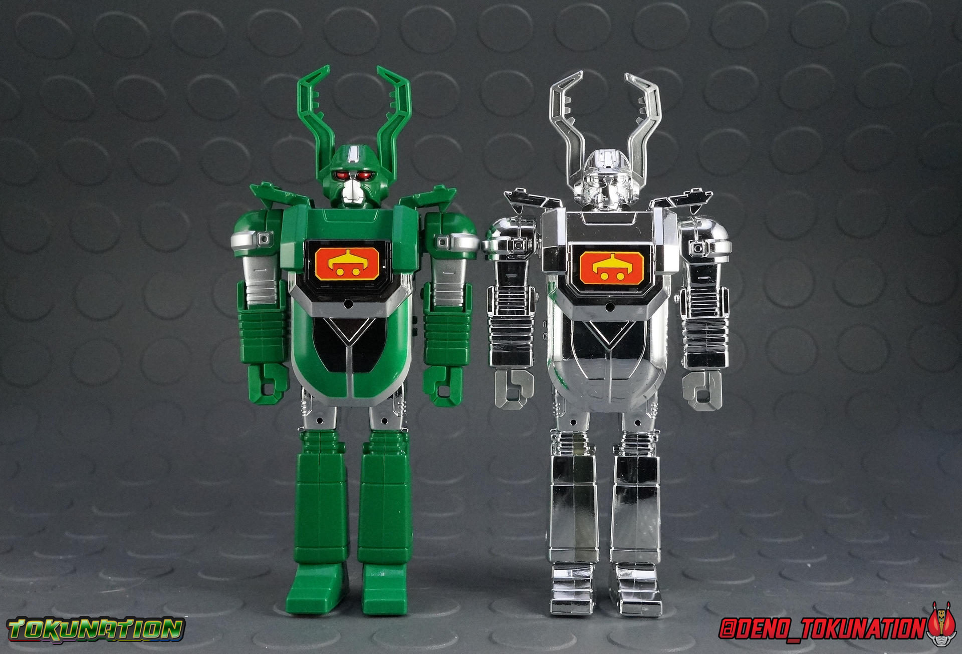 So it's with great honor I get to share an unprecedented look at the incredibly elusive TV-Kun Coloring Contest Exclusive Superchange Silver Chrome Kuwajiro! I am immeasurably proud to be able to share this incredibly rare collectible with you. More than you can possibly imagine. I happened upon this piece by total chance for a price that simply made it a once in a lifetime purchase. It could not be passed on. Read on for more information! Packaging Silver Kuwajiro's box is actually identical to the original releases'. No physical alterations have been made whatsoever to the box, insert, or stock photos on the packaging. Which can often times be very typical of special one off & or Luck Draw style releases. Given this figures ridiculously limited production run, I believe it would fit into the LD category. ACtually this figure is even more rare than the simultaneously released TV-Kun Gold Chrome Kabutack or the later release of Gold Chrome Robotack. These two figures were manufactured in runs of only 10, making Silver Kuwajiro exceedingly more rare than either of them. Though the gold ones do tend to be much more desirable. Main Figure Now, as with his box, Silver Kuwajiro is in fact physically identical to the original release. So I won't spend much time talking about the figure's functionality. The photos below and my previous gallery of the original Superchange Kuwajiro should more than take care of that. To start, Silver Kuwajiro is obviously almost entirely chrome silver, aside from a few interior parts of the design which remain green. The factory applied labels on his body are all the same as the standard release of this figure as well, right down to the green accents on the Normal Mode eyes. But the paint job is just so radically different. For any component that isn't chrome silver, it's cast in gray/silver plastic. This mostly applies to his horns/mandibles and fists. This happens fairly often with these silver releases, similarly to my promotional Silver Chrome Gao Hunter set. This type of paint job has been typical previously with certain Lucky Draw items but in the last 2 decades is more often associated with Bandai Asia promotional releases. Often they release silver chrome repaints of DX Sentai mecha as giveaway items in specific markets, often in South Korea or Hong Kong. As has been the case with Gaoranger, Boukenger, and so on. These releases tend to be made in low-ish numbers, but they never compare to high end rarities like Lucky Draws or contest prizes. However Silver Kuwajiro bucks that trend quite nicely. For those unaware this unique figure was only made available as a Japanese contest prize. In 1997 TV-Kun Magazine held a special coloring contest for fans of B-Robo Kabutack. Basically participants could send in their version of a character from the show in a unique color scheme of their own design. The top 5 entries would have their artwork reprinted in an issue of the magazine, and the winners would receive a Silver Kuwajiro as a prize. So that means that only 5 exist. I have no idea who the original owner of my Kuwajiro was, nor do I know who the winners of the other 4 were at this point. I've never seen any of the contest entries either sadly. But I just feel incredibly lucky to have stumbled across this figure like I did. I've included a few shots of Silver Kuwajiro with some of my Silver Gaoranger figures for fun, and it's actually quite interesting to put him side by side with S.H. Figuarts Space Sheriff Gavan. All in all he's a pretty great compliment to any Metal Hero or unique chrome release collection. As I mentioned above a Gold Chrome Kabutack was also released the same year as this figure in a similar coloring contest. Only 10 were awarded in that case, and I have yet to see a physical sample of one, but I'm actually working pretty hard to track one down currently. If and when I can afford the purchase, I'll be more than happy to share it with you here as well. Accessories Silver Kuwajiro gets an exact repack of what came with regular Kuwajiro, right down to the label sheet. 1 - Hasamic Cutter. This weapon needs to be assembled by cutting parts from a sprue first. It's a soft rubbery type plastic that you've undoubtedly encountered over the years with Bandai products. When assembled it can act as both sword and scissor-like cutting weapons. Perhaps an old predecessor to Kamen Rider Gattacks' Double Calibur? 1 - Label sheet. As with most any figure in this line a lebl sheet is included to replicate more show details. I have never used my label sheet and don't intend to. At some point in the future I'd like to get some quality repros made to use but that's for another time. Now obviously I didn't take the parts off the sprue from the 1 of only 5 in existence toy. I just borrowed the cutter from my regular Kuwajiro. Final Thoughts What else is there to say really? B-Robo Kabutack was one of my favorite toylines ever already. And discovering the existence of this bad boy, and actually being able to purchase it, all within the same day, just filled me with a complex mixture of satisfying emotions. For the first time ever, with any of the lines I collect, I truly feel like I've got a leg up on any other collection. In fact only 4 other people in the world own this piece. It's not like Gaoranger where I will forever be seeking the multiple Silver & Gold chrome promos & lucky draws that never turn up for sale though. Somehow this toyline is almost possible to own everything from. If I can just grab that Gold Kabutack I'll be totally satisfied with it. Yes, this one figure did cost me a decent amount of money, but it was more than well worth it for this sense of satisfaction too. I hope you enjoyed this rare look at an exceedingly difficult to find piece. Let the hunt begin for the next big rarity!