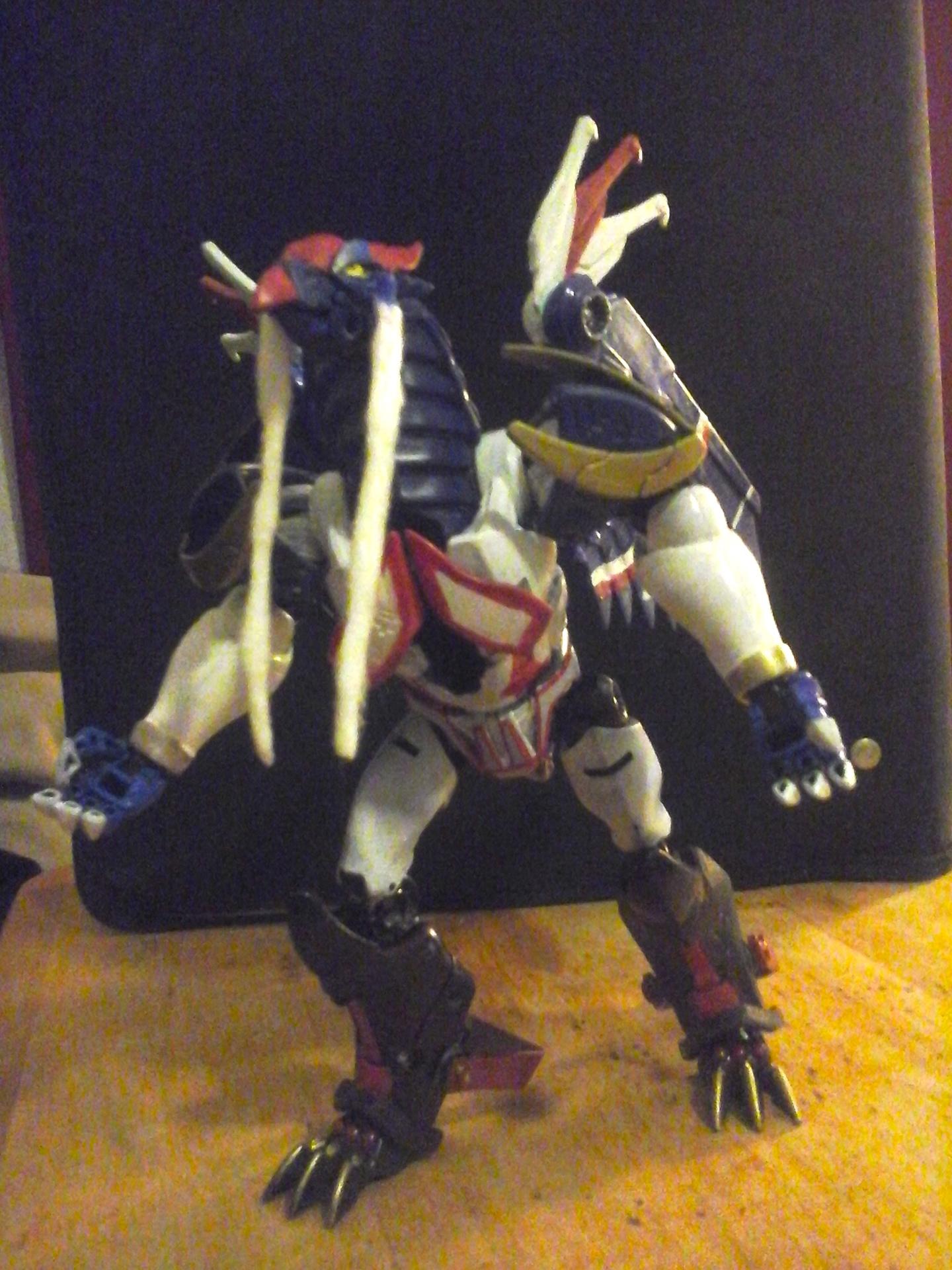 In tonights case, after about 4 days of off and on working with the figure (aka FIGHTING it like a beast!) I decided to turn my Beast Hunters Grimwing http://www.transformers-universe.com...imwing_Map.jpg into Wise God Torin of Kyoryuger! And I have to say, I felt quite happy with the end result overall. But, at the same time, I KNOW I can get better and produce such a figure with much cleaner lines, paint layers and in quicker time. Speaking of, what ratio would you guys recommend for the best overall layering of the paint between Pledge/Future Polish and Acrylic Paint? For now, enjoy what you will of this and I hope to hear feedback from you guys! Last edited by KumaOrigami83; 02-18-2017 at 08:29 PM.. Reason: Fixing a link |