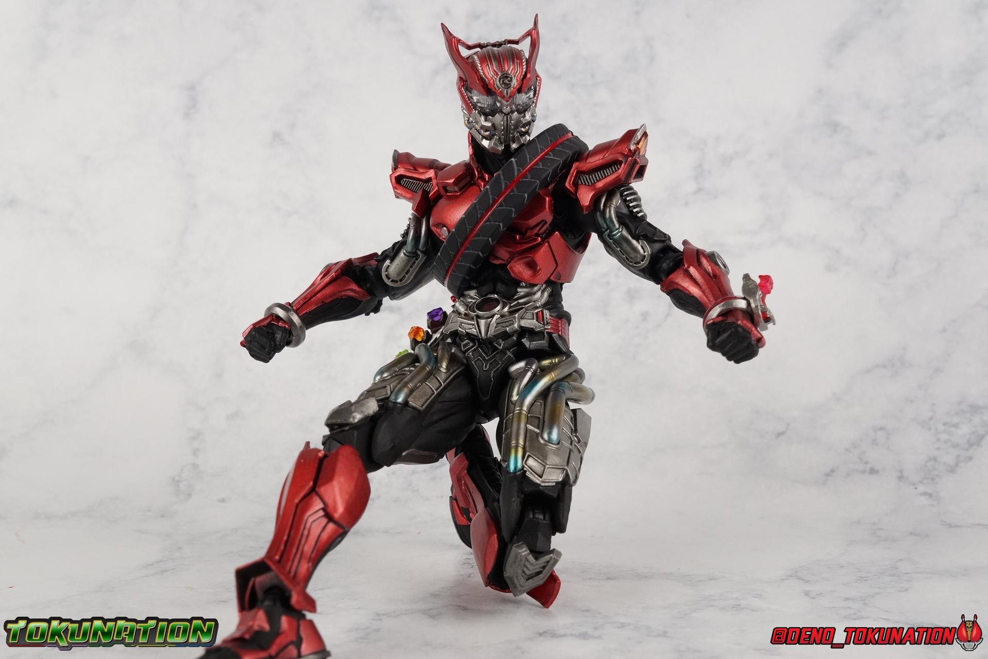 Normally I tend to limit myself to one scale of collecting for a particular show. I stick to 1/12 stuff, most often S.H. Figuarts. or gimmick and vintage figures around that scale. But every once in a while a show or figure grabs me enough that I do want to own it in a different size or line. Today's example of my weakness is brought to you by Kamen Rider Drive! I've never been huge into collecting S.I.C. figures, but S.I.C. Kamen Rider Drive Type Speed may finally be changing my tastes a little. Check out a full gallery & review below! Packaging As with most all modern S.I.C.'s, Drive Type Speed comes in a really elaborate and detailed window style box. The front actually looks like a stylized version of his helmet which I really dig. Obviously S.I.C.'s are fairly large, clocking in around 8", so this box is quite a bit bigger than an average figuart. And there are some fantastic stock photos on the exterior. They don't quite do this figure justice. Also the cardboard insert for the box is a fantastic reflective chrome with Drive's "R" emblem on it. It works great as a photo backdrop! Main Figure One thing I'll always give the S.I.C. toyline, details are key. And that's almost entirely thanks to the amazing man behind the line, Takeyuki Takeya. A brilliant artist with a mind for elaborate details and the meshing of organic and technological detailing. This release is doubly impressive because Takeya himself designed all the Roidmudes for Kamen Rider Drive. It was the first Kamen Rider Series to feature villains to be entirely designed by him. Though the riders themselves were not. S.I.C. Drive however, as with practically every other S.I.C. figure, was. This is Takeya taking a crack at Drive with his own unique style of detail and flourish. And it has been wonderfully executed. Though there are some minor caveats. The way the ball joints operate in the feet really irks me. They're on hinges but the ball also rotates 360, so it's very easy to get them off center, then Drive's feet won't sit flat at the same angle. The double jointed knees are astounding though. The entire calve can rest on the back of the thigh. That's just crazy. The hips can actually rotate out much further than I would have assumed too, those pipes on the thighs don't get in the way too much for outward movement, but they aren't exactly perfect either. They do pop off easily due to their design. And actually the hips can pull down a decent amount out of the waist so forward and back movement is remarkably good. This Drive can sit properly as though there were a Tridoron scaled to him. However he cant really get down on one knee to kneel, which is sort of my benchmark for figure posability. The upper body really only has one big thing that bugs me. And that's how loosely the Drive Driver sits on the belt itself. It's quite easy to pop off, the belt is pretty loose around the waist already, which normally I like because it frees up movement. But in this case it makes it easier to knock the driver off, that coupled with the soft plastic of the belt is obviously a great recipe for losing small parts. The lower torso also moves quite freely and is made of a soft plastic, though sometimes you can see straight through a hole in the waist because of the way it moves. The upper torso has some of the best asymmetrical detailing I've ever seen, I really love it. Taking Drive's tire sash to a new level. The way the ridges on the lower right & upper left corner of the chest compliment each other is gorgeous. And I love the added detail of a neck collar around the right side of Drive's head. It really drives (pun!) home the 'bisected by a tire idea' of his design. It's as though he was a totally normal rider then this thing just smashed it's way into the design and the suit just accommodated. This is why I love Takeya's work. The arms have some pretty standard movement, which is to say the shoulder pads keep them from doing much and the elbows can do about a 90 degree angle. The wrists don't have a ton of clearance because of how they sit flush with the wrist pads but you can get some use out of them. And lastly the head. Wow that just gorgeous brilliant detailed head. This take on the design easily looks like it could have fit in with the Roidmudes of the series. It's heroic, but it looks so, sinister? I love it. And it actually has plenty of room to move. Bravo on this design. This figure just rocks it at every level. It's just a gorgeous re-design of a suit that I already loved immensely. S.I.C. Kamen Rider Drive Type Speed gets the best of both worlds in it's first outing with this line. Hopefully S.I.C. Mashin Chaser & Heart can live up to this standard as well! Accessories As with most S.I.C.'s Drive is loaded up! 1 - Handle Sword. This version of the handle sword is quite the detailed departure from the figuart. As with everything else about this figure it takes the car aesthetic to the extreme. I love it. It can accept Shift Cars in a similar fashion to the S.H. Figuarts release. 1 - Door Gun. While the Door Gun may not look as radically different as the normal version it's still a great looking weapon that compliments Drive's new deep details very well. It can accept Shift Cars in a similar fashion to the S.H. Figuarts release and has an opening door as well. 1 - Max Flare Tire. This giant hunk of plastic can replace the standard Type Speed tire in much the same way as the figuart. It comes apart in sections to snap over the chest. In the case of this one the flame effects are molded onto the tire so they aren't removable. They are also totally awesome. 1 - Max Flare belt read out. This replaces Mr. Belt's standard face. It works basically just like the SHF, take the driver off and replace the plate. 3 - sets of hands. 1 open pair, 1 set for holding the gun, 1 set for holding the sword. I am a bit disappointed that he doesn't have a pair of relaxed open hands, but oh well. 6 - Shift Cars. That's 1 each of Midnight Shadow, 
