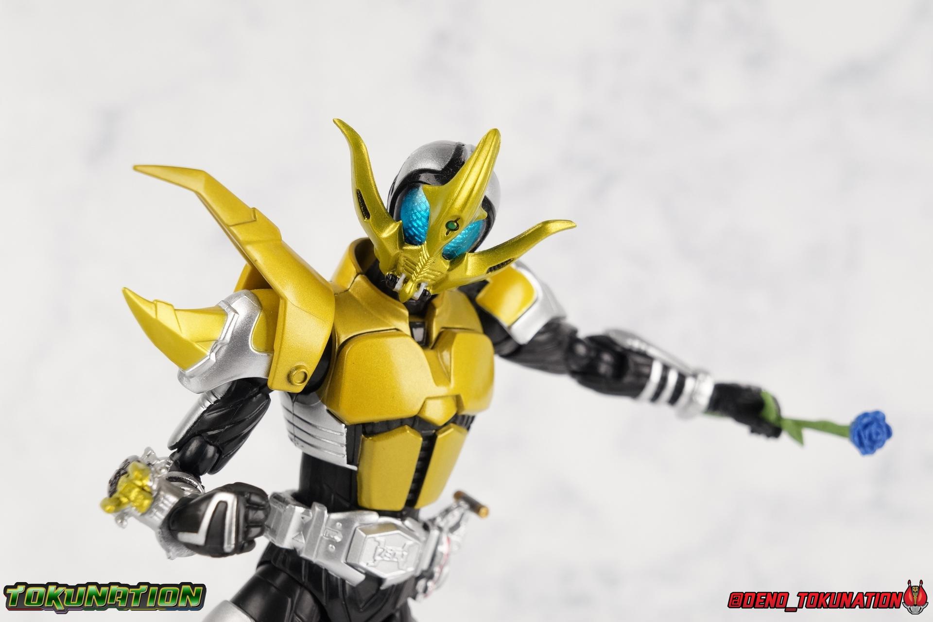 With Shinkochou Seihou releases in full swing, particularly for Kamen Rider Kabuto, I thought it was time we went back to take an extensive look at the trio of new riders that were introduced in Kabuto's film. Exclusive to God Speed Love, each of the 3 riders, Hercus Ketaros & Caucasus, has their own allegiance to one of the various future factions of ZECT. And even though ultimately each of them were sacrificial lambs for Tendou's path to the past, they all had particularly strong designs. We'll focus on each briefly below, be forewarned that the mold each of these figures uses as a base is the original Kabuto/Dark Kabuto mold, NOT the Seihou release. These are the original releases, they are quite dated, they do still have many faults of that original mold. Faults that most of the releases in the original Kabuto line suffered from. I won't focus on their functionality for too long as that mold doesn't really have much to offer in discussion anymore. Post #1 will focus on Hercus & Ketaros while Post #3 will primarily focus on Caucasus. If you'd like to hear my thoughts on this older body mold please feel fee to thumb through my original release Gattack & Dark Kabuto galleries for an idea. Packaging Each of these figures hails from an era of S.H. figuarts when gray scale plain boxes were the norm. So it's no shock that the packaging is incredibly boring for each of these figures. Main Figures Hercus: We'll start here with the silver Hercules Beetle themed Kamen Rider Hercus. A pretty basic repaint of the original Kabuto mold, Hercus does feature a new head and right shoulder. The new shoulder reminds me more of a Rhinoceros beetle than his actual head does, but I do like the double pronged nature of the heads' design. One large horn striking forward from the forehead, and a small upward pointing blade from the chin. While not the most exciting of the 3 new riders, it has a uniqueness all it's own. Aside from these changes Hercus also has a remolded right wrist which now has a brace and port for the included Hercus Kabutech Zecter to attach. Accessories: 2 sets of additional hands, 1 Hercus Zecter, and 1 ZECT Kunai Gun (gun mode). That's pretty lite, but also quite standard for the time of his release. I can't recall any of the original Kabuto riders actually including both the Kunai Gun and it's actual kunai mode. Technically he can wield it as the axe form too, but it's not quite the right shape or size for that. Ketaros: Next up we have the rust brown Centaurus Beetle themed Kamen Rider Ketaros. Another basic repaint of the original Kabuto mold, Ketaros does feature a more elaborately molded new head than Hercus. The new shoulder is identical to the one on Hercus, just with different paint apps. The new head however is a vast departure, I get the impression of dragonfly & scorpion combined in his visor design. It really is something else. The way that unique part splits the compound eyes is pretty striking, it's much less safe than most of the Kabuto rider form helmets were. Not exactly my favorite of the 3 movie riders, Ketaros is still a nice departure from Hercus' blandness. Aside from these changes Ketaros also the remolded right wrist which now has a brace and port for the included Ketaros Kabutech Zecter to attach. Accessories: 2 sets of additional hands, 1 Ketaros Zecter (a repaint of the Hercus Zecter), and 1 ZECT Kunai Gun (Kunai mode). That's pretty lite, but still standard for the time of his release. My guess is that he includes the Kunai mode of the kunai gun simply to differentiate Ketaros a bit more from Hercus. And that actually does help some. Caucasus: Now we arrive at easily my favorite of the 3 movie riders, the golden Caucasus Beetle themed Kamen Rider Caucasus! While still not a huge departure from the original Kabuto mold, or in fact the other 2 movie riders, Caucasus somehow winds up as my favorite of the 3. He features the same remolded shoulder as the other 2, with different paint apps again. And he also features another fantastic elaborate head. Ketaros was really interesting looking, but Caucasus almost appears to have a giant mustache. Which is somehow way more awesome? I also really like how the blue compound eyes offset the gold armor. Each of these molds carries about the same weight personality wise, but this one some how squeaks out as my favorite. Like the others his right wrist has been remolded with a new brace to accommodate the included Caucasus Kabutech Zecter. Accessories: 2 sets of additional hands, 1 Caucasus Zecter, 1 Hyper Zecter, and 1 blue rose. Even though Caucauss doesn't even include a simple repack of a weapon like the others do, he really comes with all he needs. The signature blue rose he's seen with in the film is a fantastic touch, and the Hyper Zecter is a must. Final Thoughts I have to say that even though these are all based on a pretty inferior mold, these figures still hold up decently. Obviously they're a bit undersized to scale correctly with today's line of Shinkocchou Seihou riders from Kabuto, but they can get the job done on a budget until the real deal comes out. If you see the trio cheaply I'd recommend picking them up to fill out a display at least. Kamen Riders Hercus, Ketaros, & Caucasus are worth that at least. But I'm also a huge Kabuto fan, the movie especially really worked for me. Often times people site Den-O as the first time that a Kamen Rider theatrical movie directly impacted the plot of the TV series, but really, it's Kabuto. If future Tendou hadn't managed to defeat Caucasus & steal the Hyper Zecter, as well as travel to the past, the original TV series would have never happened. Without this alternate future that's actually a prequel, the show wouldn't exist. And I love that. That's probably where a huge chunk of my attachment for these 3 designs comes from as well. But enough of me pontificating. Check out the full gallery below and let that be the deciding factor for you.