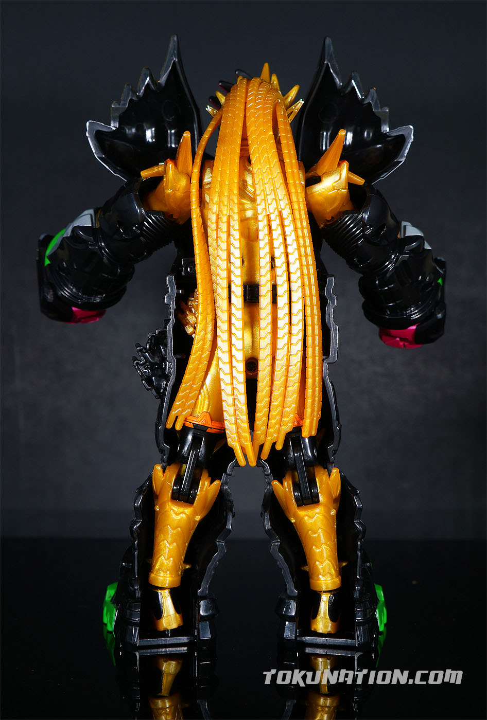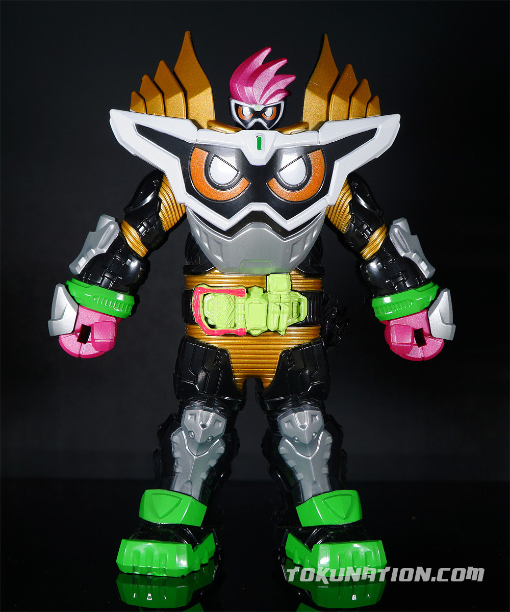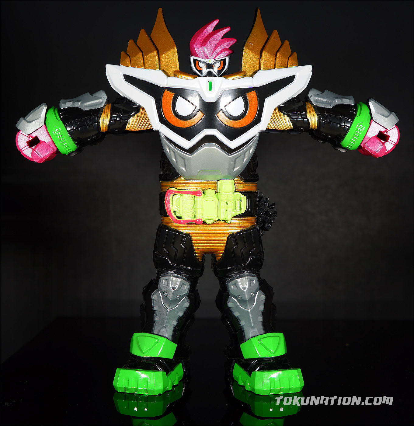 With the conclusion of Kamen Rider Ex-Aid, we thought it was only necessary (and way overdo) to show off some of the figures from the Level Up Rider line of figures, or LVUR. These were the mainline toys for the Kamen Rider Ex-Aid show and feature all of the main Kamen Rider characters as well as nearly all of their various forms and power-ups. Today, we look at the final release of the line - LVUR18 Maximum Gamer and Hyper Muteki Gamer set. The Figures - Maximum Gamer There's not much to write home about here. This is primarily a shell with zero articulation (the arms attach via a peg and can swing up and down). Hyper Muteki can fit inside and the arms from Maximum Gamer can attach to his arms giving you a different range of motion (forward and backwards as opposed to just swinging side to side), but even then Muteki ends up hanging out a bit on the back because you'll snap off the hinge that has Ex-Aid's face if you try to push him in any further. The paint application is actually pretty good considering it's a mass release budget figure, and as usual the Game Driver is not painted, only molded in different color plastic. The Figures - Hyper Muteki Gamer This is where the release shines. Hyper Muteki Gamer has the standard 17 points of articulation that you get with the budget line (head, arms, bicep, elbow, wrist, legs, thighs, knees, ankles), however the dreadlocks type hair causes the head articulation to be very, very limited. You can move the dreadlocks a bit to make for more articulation but I was afraid that I'd end up snapping one off if I wasn't careful. The paint apps on Hyper Muteki are great. The dull yellow gives the impression of a gold color, and there's even some gold chrome/gold vacuum paint on his visor, chest plate, and removable gauntlets. The gauntlets come off to allow you to "wear" the Maximum Gamer arms while he's in the Maximum Gamer shell. They don't fit too snuggly and I'm afraid that over time they will begin to become rather loose and not want to stay in at al. The Accessories Sadly, this release doesn't come with any accessories. They instead refer you to previous releases for weapons, etc. I didn't have the Mighty Bros LVUR figure handy with me, so I wasn't able to show off the sword with Hyper Muteki, but I will do so when I get around to doing a gallery of those two releases. Overall While I enjoy the paint applications on Hyper Muteki and Maximum Gamer, at the end of the day there's nothing to really set this figure apart from the other releases in the line. I'm sure when the S.H. Figuarts version eventually releases (and is revealed), it will blow this out of the water very easily. I'd give this set a 3/5 total, and recommend purchasing only if you're a huge fan of the series, are completing the toy line, or if it's at a considerable discount (original retail was around $50). The Good