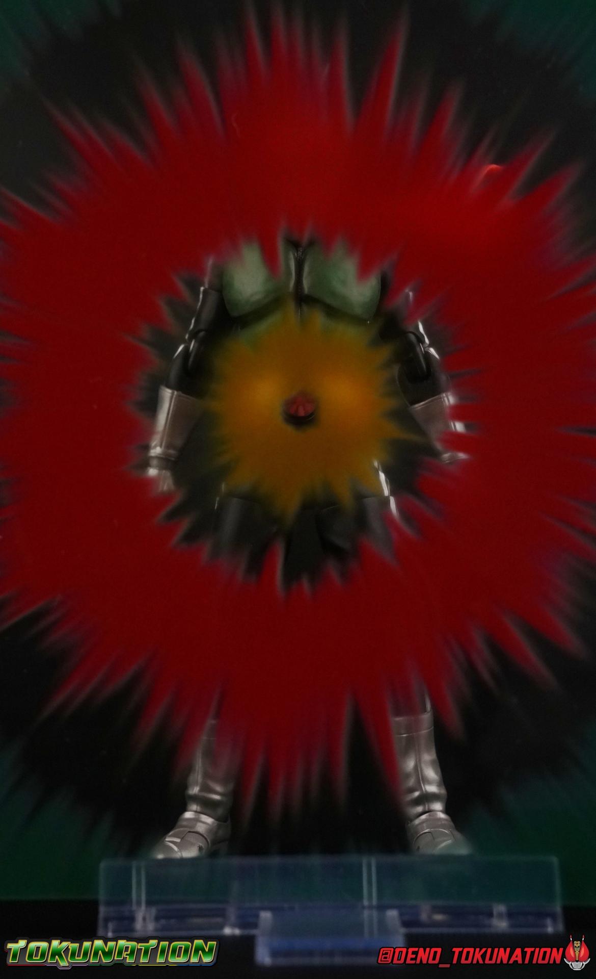 Takeshi Hongo, the original Kamen Rider. The first human ever to be altered into a cyborg warrior and fight for justice. This iconic hero is nearly always the single most recognizable character in the franchises' 47 year history. The character has certainly received his fair amount of love from Tamashii Nations over the last 10 years as well. Between 3 uses of the old Rider 1/2 S.H. Figuarts mold, a couple of releases of the First/Next mold, and then the very recent 2016 Movie form, and the even more recent Shinkocchou Seihou Rider 1 release. Now, after all this time, Tamashii Nations has finally seen fit to fill the biggest gap in the Rider 1 collection by producing his civilian identity as S.H. Figuarts Takeshi Hongo! Following in the footsteps of recent release of Dan Moroboshi & Retsu Ichijoji, how does Hongo stack up? Packaging Hongo comes in a rather plain box actually. But one with just enough charm to really sell me on it. There are great stock images of Hongo on the front of the box and one of the spines. But I'm really attracted to the lettering on the other spine. I don't know why? It just looks really good to me for some reason. Main Figure As mentioned, Hongo is the third in Bandai's new sub-line of civilian identity tokusatsu figures. Dan Moroboshi was the first release, one that underwhelmed me a bit in all honesty. Then Retsu Ichijoji came along which, despite some faults, I really really loved. So what does Hongo bring to the table? While Hongo wore a rather traditional looking suit jacket and slacks for a number of his early appearances, he would eventually make the change (for a time) to the black casual suit depicted in this figure. A look that is (arguably) one of his most iconic civilian attires. Though there are many looks that people would consider just as if not more so. For now, unless another civilian Hongo comes along, this will be THE civilian representation of him. So like our last two civilians this is a brand new mold created just for this character. Each has been tailor made to their character to sort of maximize their accuracy to the actor. Hongo is no different. Like the other two releases, Hongo relies heavily on molded in fabric folds to recreate realistic textures for the outfit. I love the look of the pants, but right out of the gate I take issue with the way the pant legs are molded around the ankles. They severely limit the potential of the ankles, you just lose so much outward movement because, no matter how good it looks this is disappointing. While the knees are pretty much perfect, the hips again run into a literal wall. They hit the sort of "skirt" fabric of the jacket that protrudes from under the Typhoon. So you lose a little bit of movement there too. On the topic of the Typhoon I really like the sculpt of it. It's approximately the same piece as what we see on the recent Shinkocchou Seihou Rider 1 figure. I'm a bit miffed it can't be removed as I wouldn't have minded a just basic Hongo without the belt for alternate display. But the whole thing is molded as one piece onto the jacket. Because of how thick this portion of the figure is, I found it very difficult to find a tamashii stage that could actually hold him well for a prolonged amount of time. Unlike Dan & Retsu the torso is sadly one piece, without an ab joint. So you just have the basic twisting motion of the upper body to work with. Again the textures and sculpt are on point but one joint for the torso just isn't enough to make this figure look as dynamic as it should. The arms thankfully take after Retsu's design. The shoulder joints are incorporated more properly into the upper body so they have a good range. The shoulder flows very freely as well, so you can spin the arms 360 degrees quite easily, extend them out fully and really get some great use out of them. The elbows are similarly free and have a full range of movement. Finally, the head. Like the last two releases we get a really fantastic likeness of the actor, in this case the legendary Hiroshi Fujioka. The likeness to Fujioka is spot on to this 1971 look, honestly I think it's a much better likeness than either of the previous two figures. But I do feel it has much more of a dead stare than the others as well. Hongo's eyes appear to be constantly looking up and from certain angles they almost appear crossed. But the face print is otherwise on point. Aside from some unfortunate mold flashing on the nose on mine. There's a chip of plastic flash bonded to the end of his nose that's been painted over. I can't remove it without exposing bare unpainted plastic beneath. A bit of a mixed bag this time around, I do still find that this figure captures the essence of Takeshi Hongo. Accessories Like Retsu, Hongo doesn't really come with much: 3.5 - sets of additional hands. Not a ton of variety here. Relaxed open palms, flat "karate Chop" hands, a pair for holding handlebars, and one right pointing index finger hand. The bike riding hands are a welcome addition this time. It's something I felt was sorely missed with Retsu. But otherwise there really isn't a terrible amount of variety here. 1 - Henshin Effect Sheet. This is probably the best new trend in figuarts of late. Retsu included a similar effect sheet as well, and it works great. Hongo's is quite a bit more colorful, but the print does look a bit more blurry to my eyes. It's harder to see the subject through the sheet this time around. But it works quite well none the less. 1 - Effect sheet stand. Just a basic stand with a small slit to hold the sheet. I know that's not much but really I couldn't think of anything else that wouldn't require just a brand new figure anyway. Alternate heads would be nice, but Hongo's entire appearance would change dramatically whenever he got a new outfit. So alternate heads wouldn't really work as well with this specific suit for him. They really skimped on the accessories but I can't find any omissions to validly complain about either. Fin