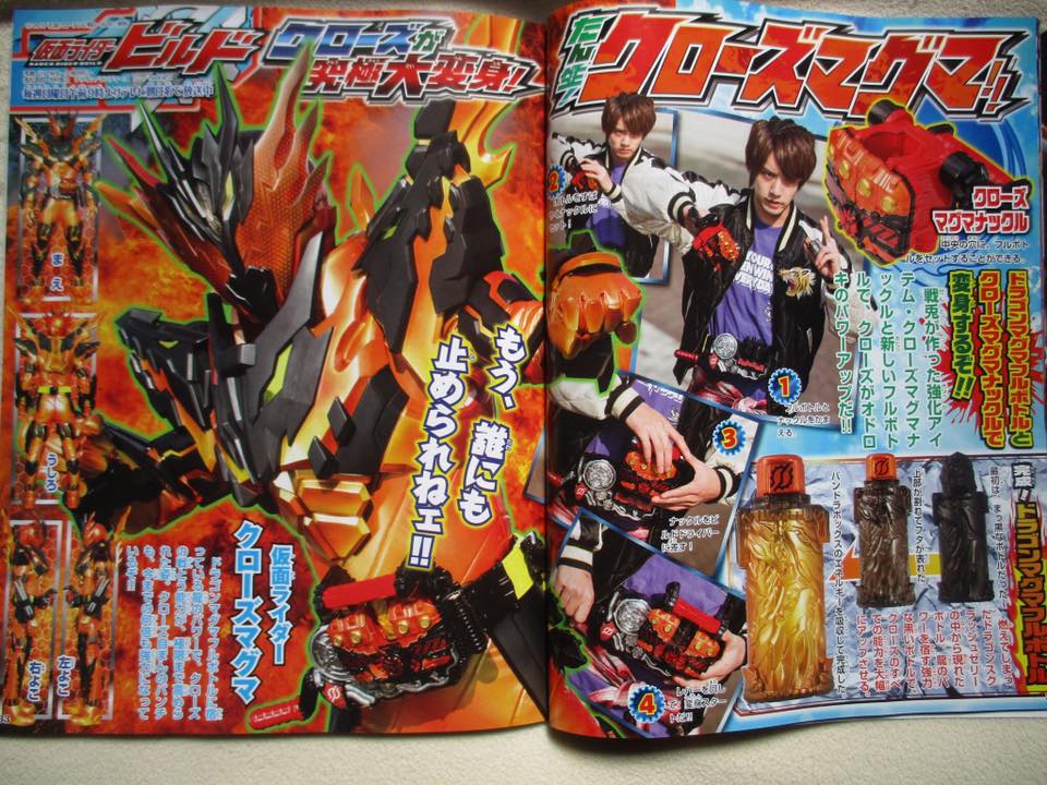 Cross-Z's new form is Cross-Z Magma. Ryuga can transform into Cross-Z Magma using the Cross-Z Magma Knuckle, built by Sento, and a new full bottle called Dragon Magma Full Bottle. The Dragon Magma full bottle was created fusing energy from the Pandora Box and the burnt-up remains of the Dragon Sclash Jelly. Cross-Z Magma's finisher is called the Volcanic Knuckle. Cross-Z Magma might be my favorite suit from Build |