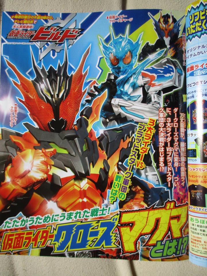 Cross-Z's new form is Cross-Z Magma. Ryuga can transform into Cross-Z Magma using the Cross-Z Magma Knuckle, built by Sento, and a new full bottle called Dragon Magma Full Bottle. The Dragon Magma full bottle was created fusing energy from the Pandora Box and the burnt-up remains of the Dragon Sclash Jelly. Cross-Z Magma's finisher is called the Volcanic Knuckle. Cross-Z Magma might be my favorite suit from Build |