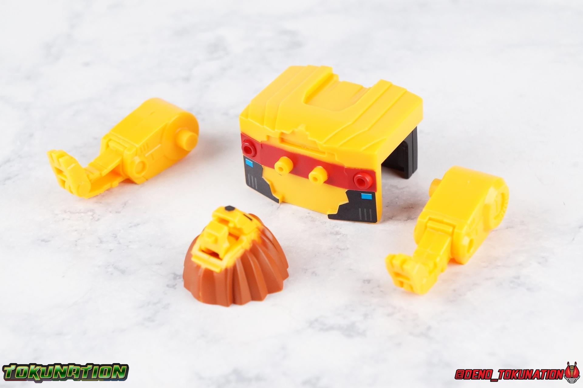 As with Sky Machine, either of these names is acceptable, both having been used interchangeably by Toei & Bandai to describe the unit. Like Sky Machine, Land Machine is a really complex and interesting little figure when fully assembled. And also like it, a number of pre-painted parts are included! In this case it's 3 chunks of the Lion's head as well as the component that will eventually become Live Robo's chest. Like the others this one comes with my favorite weird Minipla Candy too! A label sheet is included to add some minor details such as the black square on the cannons. You can see from the parts breakdown photos that there's a decent amount going on in the construction of this figure, and most of that complexity comes into play with the Live Robo formation. But as an individual, Land Machine is fairly basic. We get an opening jaw, a moving tail, the Lion Cannons positioned in the rear can angle up or down and spin just a bit side to side though it's tight. The front legs have two usable joints, the upper one inside the chest doesn't have much play to it, while the lower leg mostly moves backward, with a hinged paw on the end. Each piece won't move much on it's own, but together they do a decent amount. The hind legs are the same really, albeit with a little more to 'em thanks to the parts that will become the bicep for Live Robo. Land Machine also comes with 3 additional fists for Live Robo. 2 of which are bulkier versions of the regular fists stored within the Land Machine's hind legs. The bulkier fists can't be used for transformation but do give the Robo a more accurate look for posing. The third hand is an angled down right fist meant for holding the Chojuken/Super Beast Sword. Also included is a small peg adapter for the Display Base that Sky Machine came with. It plugs into two slots directly underneath the forward legs on Land Machine to give it the effect of jumping forward. Of the 3 Machines on their own, Land Machine is by far the best. Just a really cool little lion mecha.