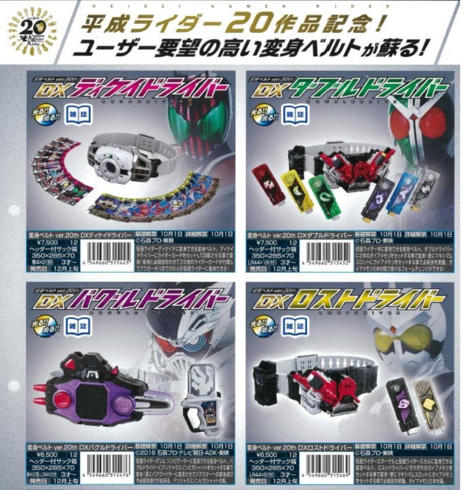 Seems like a series of Kamen Rider Belts are going to be reissued under the 20 Rider Kicks banner.