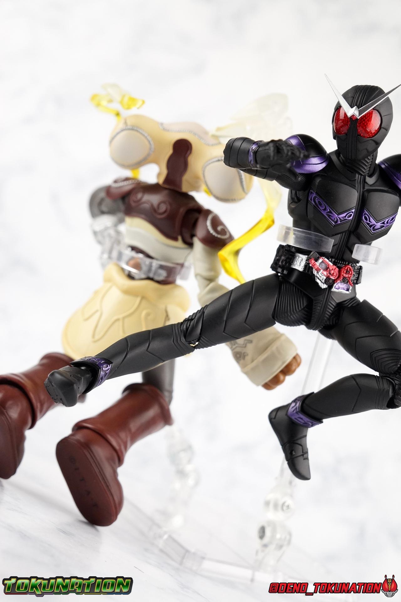 When the members of NEVER descend on Fuuto, a race begins for the T2 Gaia Memories. Katsumi Daido and his team will do anything and defeat anyone they have to after the tortured lives they've lead. But when Reika the Heat Dopant makes the mistake of taking on Shotaro on her own, his usual dumb luck will give rise to a new rider! Stumbling upon the T2 Joker memory, and inheriting the Lost Driver of his mentor, Shotaro becomes Kamen Rider Joker! Now after many years Bandai has finally taken a 2nd crack at this hero in figure form with S.H. Figuarts Shinkocchou Seihou Kamen Rider Joker! Packaging The familiar Shinkocchou Seihou slip cover box makes another appearance! Nothing can be said about it this time that hasn't been said before. It's gotten a bit stale over time but it's still a pleasing type of collector's box. However, the benefit of Joker having been a Tamashii Nations event exclusive is that it got a bit of extra packaging fan fare. The anniversary slipcover around the regular Seihou box may be a bit monotone, but it's welcome change to what these releases normally have. Main Figure As with the previous line of Kamen Rider W figuarts, the Seihou releases rely heavily on repaints. Joker is the latest such, soon to be followed up by Heat/Metal & Luna/Trigger. The nice thing about that is, that we know what to expect when it comes to this release and others from the line. As with base Cyclone/Joker W, as well as Skull, & Fang/Joker, that's excellence. Feel free to peruse my review below, but it will be very similar in wording to my previous W related reviews due to the absence of radical changes. This mold has accurately recreated the suits you've seen in numerous episodes and movies down to their finest details. I've said this many times with Shinkoccouh Seihou releases, but I truly think the W body is the peak of engineering in the line so far. Narrowly beating out the excellent Garo & Kabuto Hyper Form In every conceivable way these are magnificent figuarts. For a frame of reference, the original W Figuarts were largely a product of their time. The contrast between the old line, and what we have now, is stark. For starters the S.S. release of Kamen Rider Joker nails the details and coloring. Unlike C/J & F/J, Joker has a uniform color scheme based on the Skull design. As with previous outings of the Joker half of the mold, it's decorate with gorgeous deep purple accents. The full body itself is unchanged, we have the same flat black base color, just more of it this go around. Having a dark base like this truly helps those purple accents stand out even further. The figure functions identically the previous 3 outings of the mold as well. If you've seen the C/J, Skull, or F/J or even the Eternal review, then you know what you're in for again. This mold works in every way that it must. It has not disappointed, even now. Now, the Double Driver! This belt is still the crowning achievement of W Seihou line. A functional belt at this scale still just blows me away. This figuart includes the T2 Joker Memory packed as a separate accessory, rather than in the Driver, so as not to lose them. However, MY Joker came factory sealed from Tamashii Nations with *no memory included*. Mine's just missing entirely. Wasn't in the box or anything. So I had to make due with a Joker memory from another figure. I think perhaps one of the few physical issues I may have with this figure is the head. The compond eyes seem a bit off to me. Almost like they're set too deep into the helmet, and too dark to see properly. But I'm just not sure, it looks off to me. The figure's form is just short of totally there in my eyes, and because this figure is a repaint of the magnificent Seihou W mold, it has the functionality spot on as well. Seihou Joker has the articulation to pull off everything, and the proper sculpting for the joints needed for it to look perfect while doing so. The extending knee joints that look like a natural expansion of the costume the near seamless thigh swivels, the way the upper arms & shoulder come together and separate just as you need, and the miraculous way the upper torso is designed. This figure just looks stunning in hand. The various Seihou W releases just have a way of doing that. I have an irrational desire to own all of these W releases even when I don't care for the show. It's wacky. Accessories Joker includes a lot, of the same thing: 6 - sets of hands. That's pretty much any and everything you could need, all in matching pairs. 1 - T2 Joker Memory. Just a *slight* repaint of the one from Cyclone/Joker or Fang/Joker. As a T2 memory it is of a slightly different design. But since mine was missing in the box, I don't quite have any comparisons to show. That's a lot of hands and not much else. I would have appreciated some kind of punching effect part or something. But I also recognize that a release like this was a supremely easy repaint for an event and the fewer the accessories the better. And honestly, Joker didn't really use anything like a weapon so there's nothing that I can think of that would be a necessary inclusion here. Final Thoughts If you're looking to own another solid out of this mold then I recommend this release of it once again. It's just such a magnificently designed figure that I'd take any repaint of it. Heat/Metal & Luna/Trigger are on the way now, but the W novel exclusive Kamen Rider Cyclone would be quite easy, as well as the Movie Wars 2010 exclusive Cyclone/Cyclone & Joker/Joker forms. Honestly I'd be willing to buy them all. So bring it on Bandai.