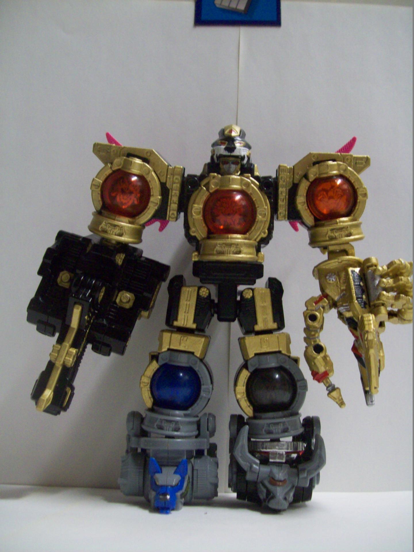 But I wanted to show off some of the Kyu kits I've been painting up. Did Kerberios in a pure metallic blue and silver, with hand painted face alternate head. And since I had an extra Scorpion, went ahead and did it up in Scorpina/Lamy colors. While I was on this Kyu bender though... Went a little overkill and ordered an extra Kerberios to paint into what I'm calling the "RinShiShi Voyager". A ShiShi Voyager for Rio from Gekiranger. And it wouldn't be complete of course without a Super Rinshishi(okay that's just fun to say)! And since I did have two Shishi Voyagers already, did one as a Dark Shishi Voyager from the extra head that comes with Kerberios as well. When I can get a better camera and a better place to do pictures, I'll try to get some better shots to show off the hand painted faces better too, and the alternate head for Kerberios. Did a mix of stickers to paint for some, some are straight up stickers only, and the Rinshishi(still fun to say, it's like saying Rafikiki) is pure hand painted only as is the "Scorpina Voyager". Eventually want to do all the limbs on the "Rinshishi" as gold variants. But for now only have the extra Scorpion and the Super Lion.