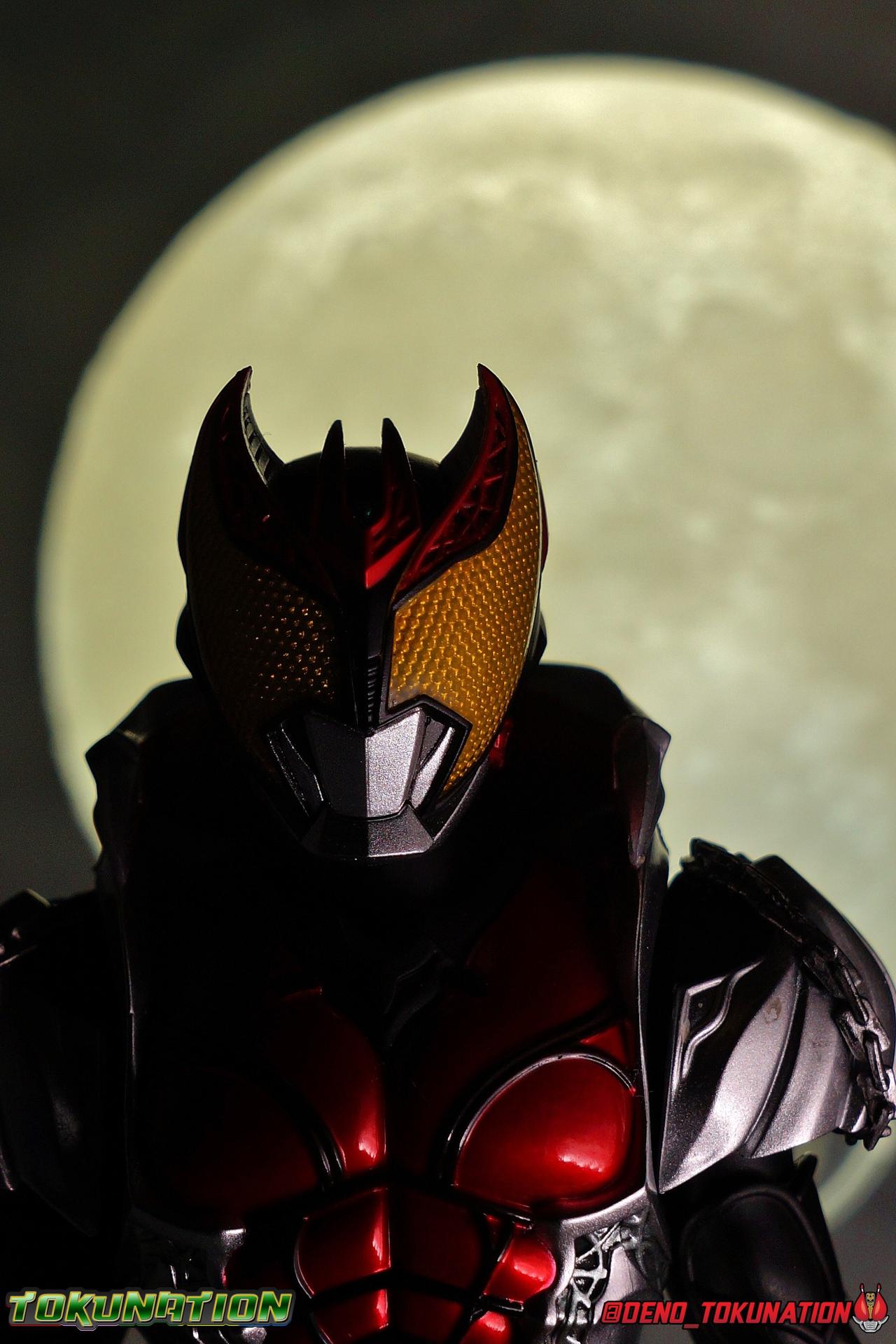The shy young man Wataru Kurenai would rather spend his time crafting violins as his father Otoya did in life. But given that he's the son of the Fangire Queen as well, he was destined to become Kamen Rider Kiva, the Fangire King. And like the King's before him Wataru has one trusted partner, a member of the Kivat family, Kivat Bat III. With Kivat in tow, Wataru sets out to fight Fangires and protect humanity, just as his father did 20 years prior. But can Wataru overcome the fear and anxiety that have haunted him his entire life? Can he break the chains of his own fate and save the world? With a host of friends, family, and allies along the way, the history of Kiva and the Fangire plays out, across the past & present! It's time to break the chains and bust out a long awaited brand new gallery from Kamen Rider Kiva! S.H. Figuarts collectors have waited with baited breath for years, and years, for Tamashii Nations to finally deliver on the promise of Kiva. Well it may have taken until the end of the Heisei Era but he's finally here and we couldn't be more excited to share a proper review of S.H. Figuarts Shinkocchou Seihou Kamen Rider Kiva! ** This gallery contains 100 images, and is spread across the first three posts of this thread. Skip below to see the good stuff if you like! Packaging It's the familiar Shinkocchou Seihou slip cover box once again! Not much can be said about it this time that hasn't been said before. While it hasn't really changed, maintaining the same basic form factor with every single release, it's still a pleasing type of uniform collector's box thats great for storage. It's just great to finally see one of these boxes with Kiva's art adorning it! Main Figure It's been some time since the last new mold joined the Shinkocchou Seihou line. In fact Seihou Wizard was the last brand new mold the line gave us and that was last year. Since then we've had a few remolds/repaints but Kiva is the first truly new figure in a while. And with the Seihou line in particular, that always brings huge levels of excitement, and big expectations. How does the long awaited king stack up? Find out below! Kiva is an incredible addition to the line. I've said this many times with Shinkocchou Seihou releases in the past, but this one truly looks like it walked off the screen. It's an absolutely stunning recreation. From an engineering standpoint I'd say it's one of the best as well. The W mold was my long time favorite from the line, Rider 1 really upped the ante, and Wizard was an absolute delight. While I'm not sure that Kiva necessarily blows any of the other releases away, it is remarkably nice. Starting with Kiva's feet and legs, they provide a very solid base of support. The asymmetrical design of his right leg has always struck me as well, the chains always draw my attention. It's just such a unique look that sticks with you, much like how I've always loved Kamen Rider Kickhopper's leg design. For their part, these chains are molded in place but have some minor flexibility to them so that you can hopefully avoid litearlly breaking them. Kiva's toe bends function properly on both feet despite the bulk of the chains on one and the ankle tilts seem to be pretty even as well. Always good to see asymmetry that somehow still leads to symmetrical articulation cuts. The knee bends leave a little to be desired, coming out to about a 45 degree angle, but the hips make up for this shortcoming with a wealth of range. Which is totally necessary to recreate that iconic kick pose of Kiva's. Kiva's waist in it's dormant state out of box is just the red Kibuckle belt which holds his driver and trinkets. Fun fact, Kiva's belt was actually the final Heisei henshin belt to not be called a "Driver". From Decade on we've had nothing but Drivers. You'll need to grab the 6 individual Fuestels and 2 Fuestel holders included with Kiva and attach them to the sides of the belt to get his hips looking right. The big thing here of course is really the second star of the Kiva show, Kivat Bat III! The talkative sidekick to Watar Kurenai, Kivat also allows him to transform into Kamen Rider Kiva. On his own, Kivat is a tiny but slightly poseable bat. The ends of his wings can rotate up to simulate flight while his mouth opens to simulate his speech as well as to accept Fuestles. A small tamashii stage adapter is included to let you display Kivat flying around Kiva as well. To get him on the belt just plug his feet over the bar along the top of the belt and rotate him down, plugging him in place. He can still accept Fuestels in this state as well, plenty of clearance for the mouth to open. Kiva's upper body does some really interesting things that I appreciate too. The red armor that makes up his chest extends down around the ab area of the figure. Despite appearing to be one piece, the lower section actually sits under the chest and is independently articulated. As you push the torso down towards the waist, arching the back, the abs push up into the chest. This increases the range of movement and makes for more natural articulation as well. If you straighten the torso back out, you can see where th e tip of this ab armor is sort of tucked up into the chest and there's a small gap, pushing it back down seamlessly fills the torso once more. It's really genius. Likewise the figure's back also tries something interesting. The entire chunk of armor that makes up the collar around Kiva's neck and the armor extending down his back, is on it's own sort of raised joint that allows it to lift up from the back & shoulders. This gives the figure an interesting clearance extension. It's unnecessary, kind of bizarre, but really cool and appreciated. While side to side torso movement may be hindered somewhat by the silver armor around Kiva's ribs, it's hard to deny just how good and seamless the entire upper body looks. At first glance every bit of it look likes one piece, but there's so much complexity involved. I was worried tha
