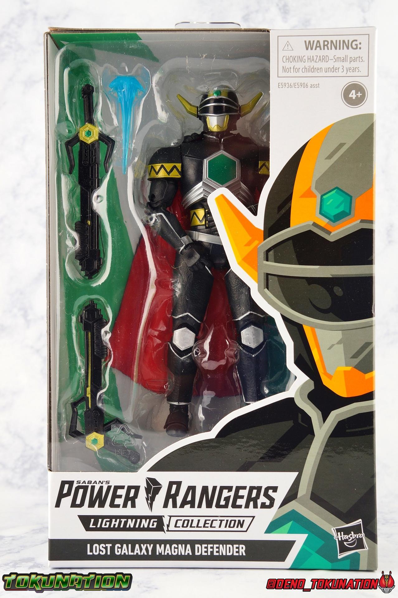 Once a guardian of the Lights of Orion, the original Magna Defender, was a fierce & noble warrior. He fought a bitter war against the monstrous Scorpious, losing his son Zika in the conflict. Consumed by revenge, the Defender resorted to vicious tactics to combat his enemies. But to undo these terrible deeds & save Terra-Venture, he sacrificed his own life, resurrecting Mike Corbett in the process. Brother to Leo Corbett the Red Galaxy Ranger, Mike's body had been a vessel for the spirit of the Defender. Now given a second chance, Mike is worthy enough to inherit a legacy of power. Taking up the Magna Sword and commanding the Torrozord into battle, Mike becomes the next Magna Defender! Fighting alongside his brother and the other Galaxy Rangers, the legend of the Magna Defender lives on! Packaging In creating this line, Hasbro was keen to make sure they appealed to collectors and fans of the franchise from throughout it's various eras. Given the aim to make this appeal to an older crowd, the packaging seems to have taken a page out of the Star Wars Black Series book. In similar collector style boxes, the Lightning collection figure's look a bit brighter thanks to a primarily white color scheme. But they also really pop thanks in no small part to some wonderful box art, lovingly crafted by artist Tom Whalen aka @strongstufftom on twitter. His artwork is breathtaking, and makes these figure's feel like just a bit more of a passion project from the folks at Hasbro. The artwork takes up a majority of the packaging, while the back of the box is relegated to a single stock photo of the figure. But that's not what we're here for anyway. Orders of LC Wave 2 figures via Hasbro Pulse have also been including a sheet of collectible cards featuring the fool profile artwork by Tom Whalen! It was a big surprise when I opened my box with Magna Defender in it to find these. Main Figure Wow. Who thought we'd be here even 6 months ago? When the Lightning Collection line started I think many of us (myself included) had assumed Hasbro would do just as Bandai had done before, and focus heavily on MMPR. While the series' presence can definitely be felt in the line (Pink, Green, White, Dragon Shield Red & Black, Zedd, Putty) I don't think most people assumed that Lost Galaxy would make a debut in Wave 2! I was happy to be proven wrong when this figure was revealed at SDCC. The Magna Defender has wound up being one of my most anticipated figures in the line. And he does not disappoint! Despite his bulk and a hefty cape, the Magna Defender is easily one of the most stable figures in the line, right up there with the Beast Morphers Gold Ranger. Like every figure in the line, the Defender has a pretty uniform articulation pattern, with a few minor changes. So far I think Defender may have the best ankles in the line. Totally free of outward obstruction, he can strike a dynamic stance, even if forward movement is blocked somewhat by the shin armor. Like other rangers, Defender gets double jointed knees though they feel very very tight, and despite the bulk of the legs you do get some decent back bends out of them. And if you look really closely at the armor pads on the suit, you can see a textured marbled surface that gives this suit an extra dimension of realistic detail. The hips may leave a bit to be desired thanks mostly to the thigh armor as it will impact the waist itself. You'll lose a small bit of movement in that area but thankfully the figure doesn't feel any less dynamic. Around the waist, pegged into the right hip, Defender has a gray belt strap. There's a peg hole on the left side of it to plug the Magna Sword scabbard into. This flexible belt gives you plenty of wiggle room to work the sword around any pose you put the figure in. Above the waist is a very strong clicking ratchet joint for an ab crunch, probably the best and most stable ab joint in the line. Belying it's bulky form, the Magna Defender's chest armor is also on a pretty free ball joint allowing it to rotate independently of the lower body. It really is so much better than I'd expected. The arms are the real pleasant surprise though. Each shoulder pad is on a hinge to move up, but the pads themselves are made of a super light rubbery plastic so no danger of breaking them. The shoulder joints work just like the rest of the line with up/down ratchets and forward back butterfly style joints. The shoulder ratchets however are extremely tight on mine. Add in the bicep swivel, double jointed elbows, and wrist swivels and what you get is a pair of solid expressive arms perfect for heroic poses whether holding the included Magna Sword, Blaster, or not. The head is also quite nice. Magna Defender's helmet is a pretty unique design in the franchise, and it really pops in a display of LC's and Figuarts. As you can see in the gallery, I threw together a shot of all the "6th" rangers I have and he fits right in while being a total stand out. The sculpt and paint work on the toys helmet are near perfect. And while you may lose a bit of back and forth neck movement because of the torso bulk, I think it can pull off just about anything. The Defender's cape is probably the biggest question people have for this release. It's a very nice soft rubbery plastic, even softer than the figure's shoulder pads, so it can angle out of the way quite nicely. It also helps stabilize Defender in a number of poses, though he needs stabilization because of the cape for said poses. I would have preferred a cloth cape more akin to the material from Star Wars Black Series. But as is this one is just fine. It can un-peg from the Defender's shoulders, but is glued into place via a couple plastic tabs in the upper back, so removing it will require you to do a bit of surgery on the figure. Overall though I'm ridiculously pleased with how this one turned out. Hasbro continues to outdo themselves. Below you'll also see I've included a number of special cameos in the gallery as wel