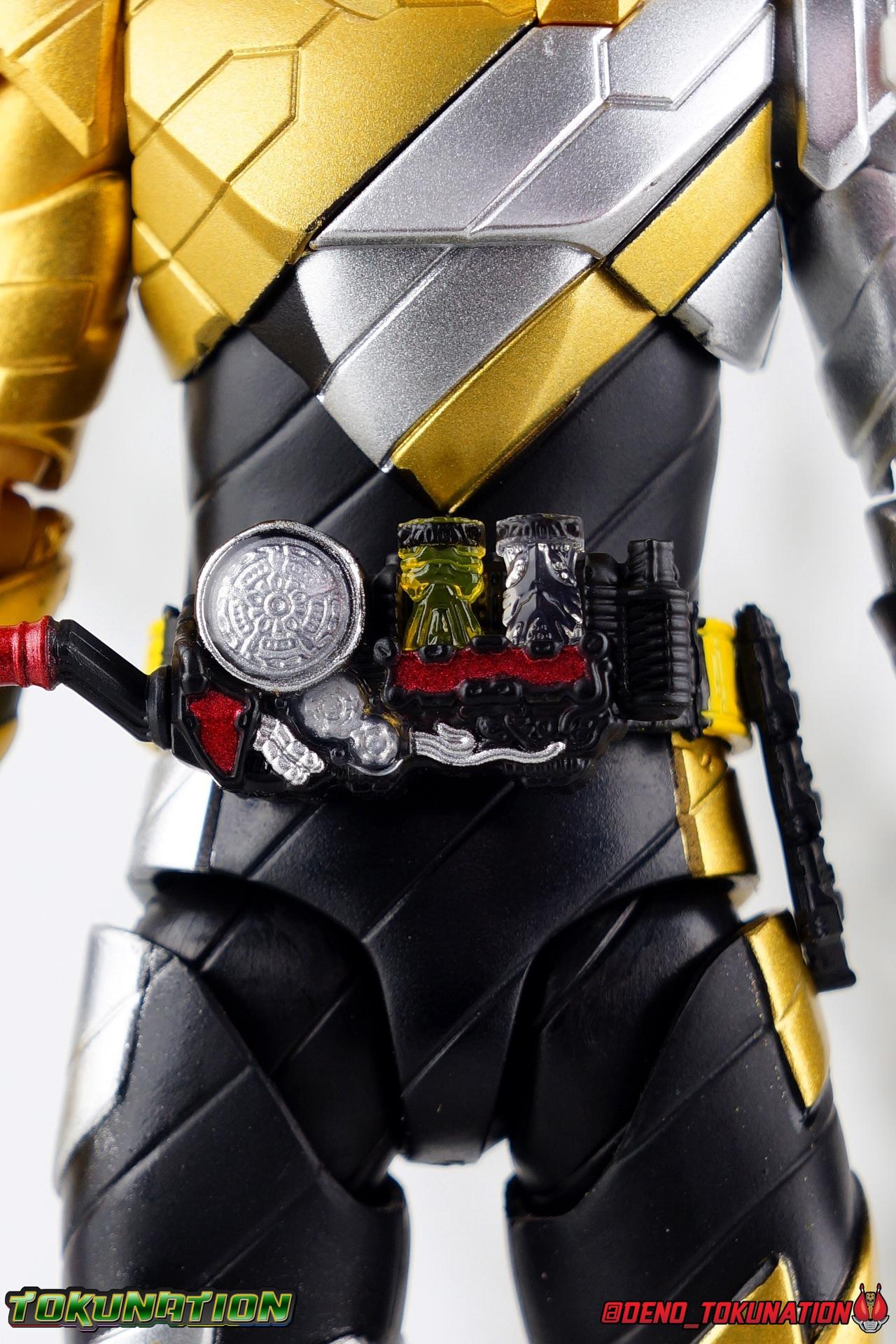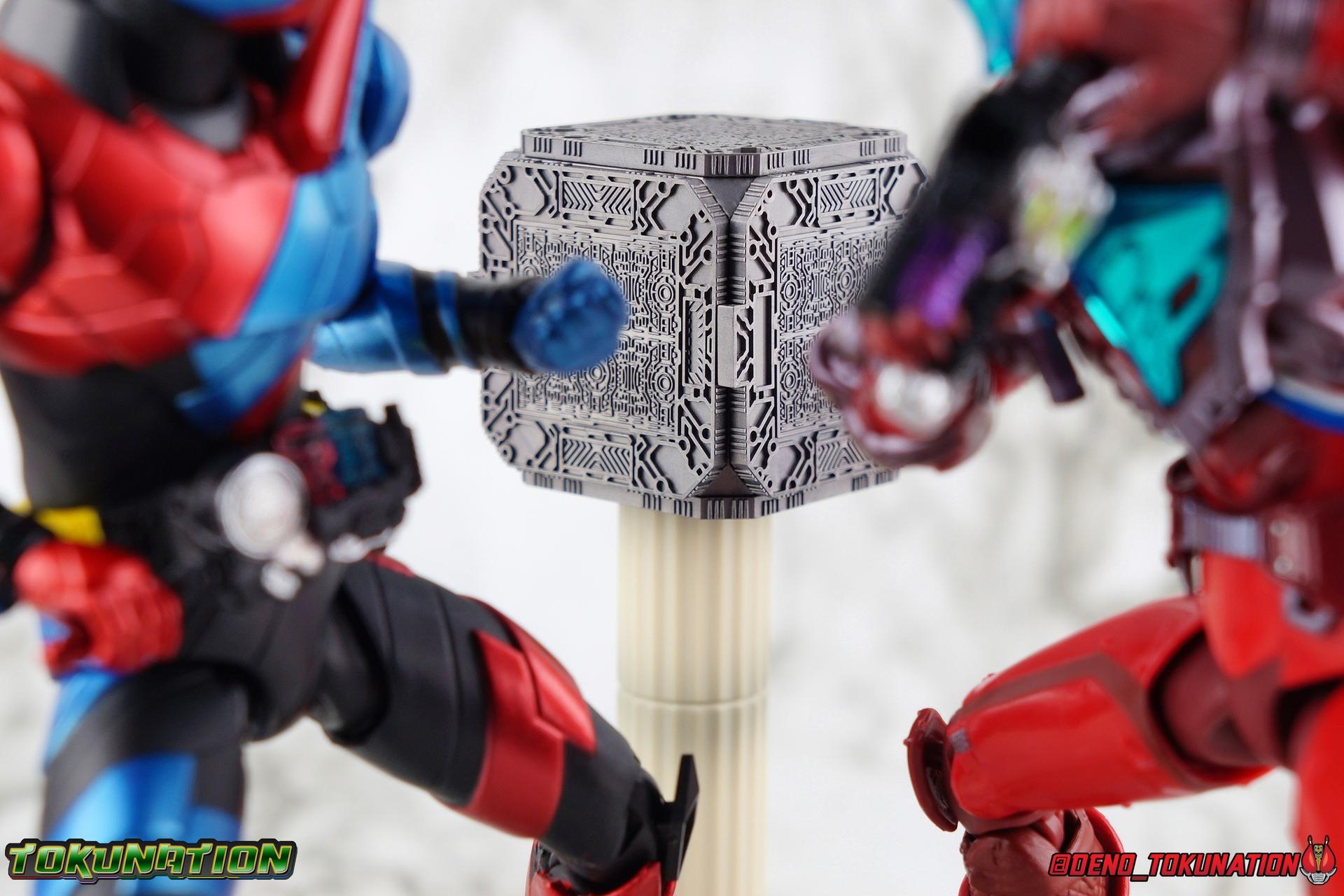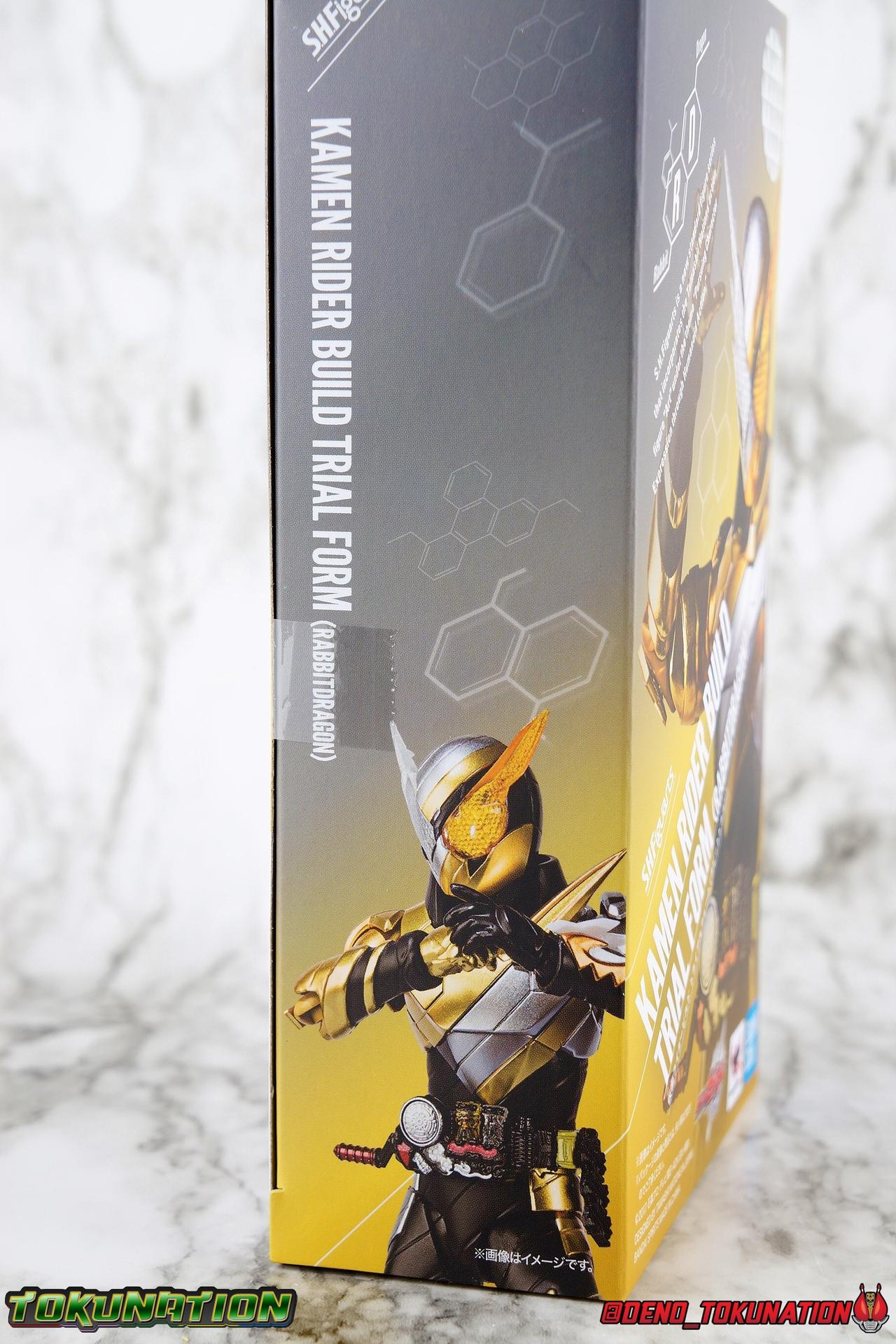 Two Earths, a single future. To save his world Sento has gambled everything on the power of the Pandora Box. Opening a bridge between universes, and using Evolt's energy as the catalyst, Sento seeks to fuse the two worlds to save them both. To create a New World, without Evolt. But when the alien menace possesses Ryuga one last time, Sento will use every last ounce of power he has to fight for this future. With Ryuga's help, one last experiment to save humanity begins. Gold & Silver, Rabbit & Dragon, Sento AND Ryuga. Build's final transformation, his Trial Form is born! With the unstable power of two Kamen Riders, can Sento save the New World he wishes to create? Packaging As a Tamashii Nations event exclusive, Rabbit Dragon has some seriously gorgeous packaging and box art. Event exclusives have gotten much more elaborate in recent years and this is by far the most gorgeous I've seen. The outer slip cover features the amazing logo for Tamashii Nations 2019 while the back side of it has a brilliant piece of monochrome artwork. Under the slip cover is the more standard type of Build packaging, but it still looks just a as good. Main Figure It shouldn't be any surprise by now, but I absolutely love Kamen Rider Build. The show resonated so much with me when it was airing. Few rider series have had the same impact on me that it did. It's right up there at the top with Den-O & Drive for me. So each new release this series manages to squeeze out is another small victory for me. And this form is something I absolutely never expected to happen, but always hoped for. Trial Form is honestly a pretty basic repaint for the most part. Much of this line is pretty basic parts reuse, with elaborate paint additions to differentiate them so Rabbit Dragon fits right in in that respect. The legs are physically identical to the base Build Rabbit/Tank form. If you haven't handled this mold by now, it's pretty great. The ankles don't have any armor to impeded their movement, the knees have a great back bend, and the hips are free of obstruction. As is usually the case with this mold these joints are nice and tight and provide a very stable base of support. The on indication in the legs you'll find that Cross-Z is part of this combination, is in the thighs. While the physical parts are from the original build mold, and we get new silver and gold paint apps, the right thigh features Kamen Rider Cross-Z's flame band paint app. The torso features yet another outing for the wonderful Build Driver. This item has made a number of outings in the line now, having only had significant paint alterations once with Mad Rogue. In this case the big change is in the Full Bottles. As the name of the form states, we get the Rabbit & Dragon bottles, which are not traditionally a Best Match, but due to Sento & Ryuga's bond, are compatible now. Rabbit is now Gold while Dragon is Silver. As always the bottles are removable and the crank on the right of the driver can turn. It's still one of my favorite 1/12 scale Drivers. There's still a Full Bottle holster on the left hip as well if you want to store any extra bottles there, though in my experience the fit is quite loose. Outside paint apps on the torso there are no mold changes. As always the combination of a ball jointed waste and upper body with a unique ab crunch, create a lot of possibility. I particularly love that the small angular part of the armor on the abs can actually hing upward allowing you to bend the torso a bit further. It was a feature I didn't even notice the first few times around with this mold, but ever since I discovered it it still blows me away. The right gold arm is the classic Rabbit/Dragon mold with no physical changes. The shoulder, elbow, and wrist all work fantastically allowing you to get Build in his signature poses. The right silver arm however, is a direct carry over from Cross-Z, and I love that sculpt so much. We get the protruding shoulder pad, the flame band on the bicep, the dragon flames molded into the forearm. I absolutely love it. Asymmetry in Build forms is my favorite aspect of them, and Rabbit Dragon illustrates this so so well. Finally, Trial Forms head is a wonderful fusion of Build & Cross-Z. Taking the right side Rabbit visor and combining it with half Cross-Z's dragon visor is a brilliant idea. The head itself is just builds without all the added Cross-Z bits, but the new compound eye combo looks brilliant in these colors. The Build line has absolutely some of the best Compound Eyes in the S.H. Figuarts line and Trial Forms just come alive in the right light. This whole figure comes alive. It's just stunning complete package. Absolutely everything I could have hoped for. Accessories This may seem sparse, but it's honestly perfect: 7 - additional hands. While we only get 2 left and 5 right, you get basically anything you need to replicate the forms briefs appearances as well as utilize other items in the Build SHF line. The gripping hands are good for using with the Machine Builder or Drill Crusher in particular. The expressive hands perfectly allow you recreate Build's poses, you get plenty of variety for display. 1 - Pandora Box. This is clearly the big draw of this figure. While the form itself is something truly special already, the inclusion of the Pandora Box is just the cherry on top. The build line has had quite a number of releases since it began, but the big question has always been, where on earth is the box? I was surprised it didn't come with the likes of Blood Stalk or Night Rogue, but seeing it finally hit the market like this is very satisfying. This is a hefty little cube with outrageously well defined details. The sculpt has so much depth and care put into it, it's a truly incredible little accessory. The only thing that could be better, is maybe one day getting the complete box with panels and molded in bottles. As is though, this is the ideal Build SHF accessory. This form has about a minute worth of screen tim