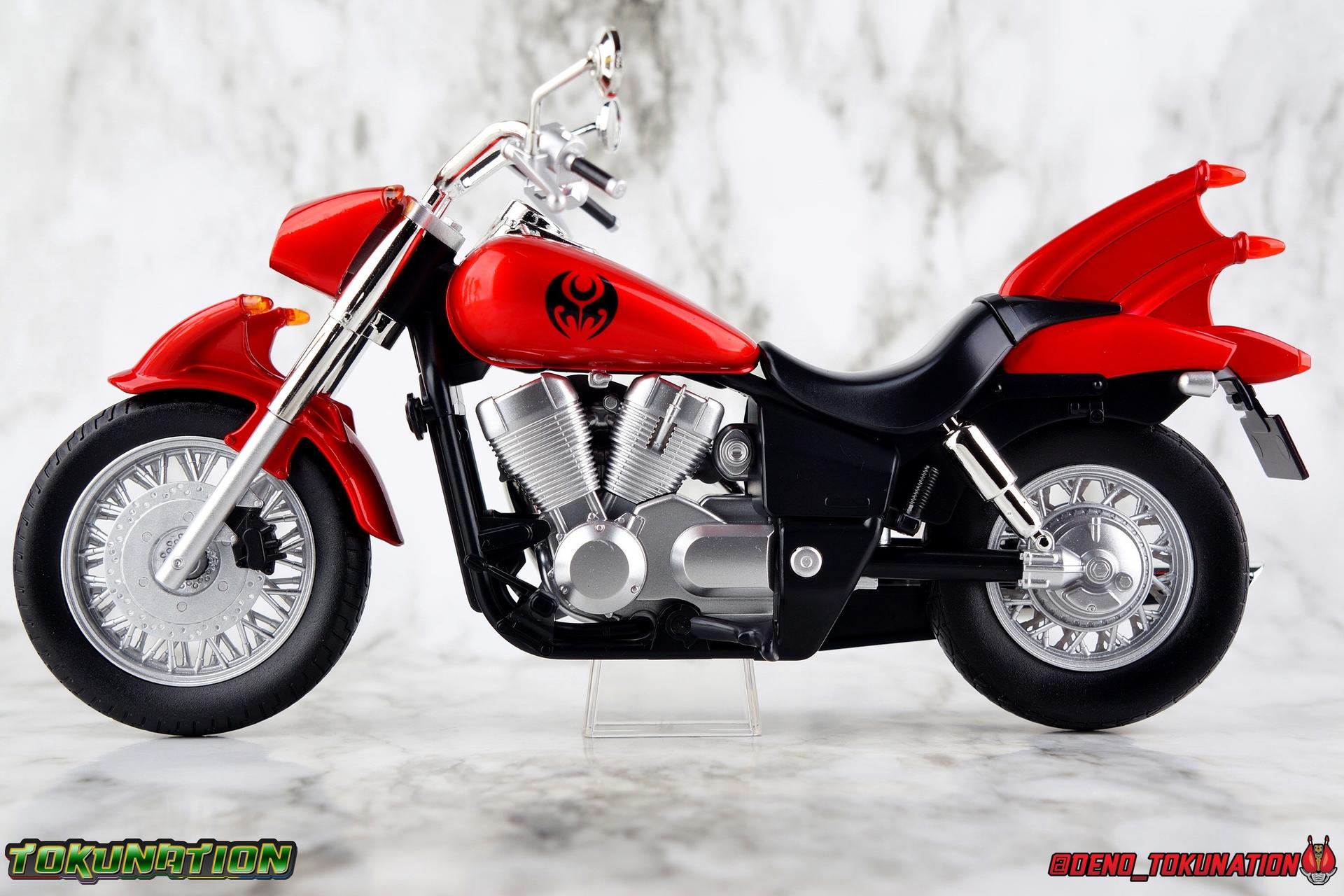 Wataru Kurenai was fated to be king. (No, not like you Zi-O!) As Kamen Rider Kiva, Wataru destroyed the Fangire's threatening humanity while still finding time to craft beautiful instruments as his father had before him. But what's a Kamen Rider without his well, ride? Overcoming his own fears and anxieties, Wataru discovered what real self reliance and confidence could do to transform a person. Though the whimsical talking belt certainly helps too! But what is a Kamen Rider without their, well, ride? Only a few short months after releasing the long demanded Shinkocchou Seihou Kiva, Tamashii has satisfied collectors once again by releasing not only his Rider Machine the Machin Kivaa, but also his signature throne and the Bloody Rose violin he inherited form his father! This massive accessory set completes any Kiva collection, and today we're breaking down the whole thing for a full gallery/review. Main Figure The biggest item, and maybe the big draw of this set if of course the Machine Kivaa. As I mentioned above, and I've said many time before, what's a rider without their ride? I find myself almost compelled to buy every Kamen Rider's bike to accompany their figuart. So seeing the Kivaa happen so soon after Kiva himself was incredibly satisfying. It's easy to look past bike and vehicle releases like this when they don't have transformations or action gimmicks as DX toy equivalents often do. We have to look more at the presentation and craftsmanship to get sense of value from these things. And in that regard, the Machine Kivaa is unmatched. Of the myriad number of S.H. Figuarts and accompanying vehicles I've handled in the last decade, the Kivaa is one of the most stunning. Kiva's bike is a bit unique among Rider Machine in that it's a street style bike (ala Hibiki) rather than a dirt biks (ala nearly everyone else). Based on a Honda Shadow 750, the curvature of the original chasis and design shine through the additional elements. It's a gorgeous standard bike anyway, but this facelift it's gotten as Kivaa is something else. The Figuart is superbly detailed, right down to the tread on each tire. No detail appears to be missing. Even the Speedometer is present thanks to a very crisp and very tiny label permanently affixed to it. The grooves on the engine are well defined and have depth. That gorgeous blood red glossy paint reflects light like the real thing from any angle. And the silver chrome that marks the handlebars and mirrors as well as the exhaust system, is truly magnificent. If you zoom in and look closely, you can even see my camera staring back at you in the chrome. It's that good! When Tamashii gets a chrome application right boy do they ever get it right. But more than just how it's detailed, this bike lives up to expectation as a magnificent vehicle for Kiva. It took 10 years of S.H. Figuarts to finally get Kiva himself, so when his bike arrived as well, it had to be a match made in heaven. And it is. Seihou molds are engineered so well, to function as closely to real people in actual suits as possible, that this figure looks natural and downright like a real person when seated on the bike. These two are a perfect pairing many years in the making in from Tamashii. On a funnier note, it's interesting that in the context of the series itself, we know that the Machine Kivaa is both sentient and houses the brain of a horse (presumably Fangire-like) creature. But the bike is oh so clearly designed like a bat on wheels. The blood red coloring of the bike would even helps suggest that link, but hey it's a horse apparently. Accessories While the Machine Kivaa itself is definitely a huge draw, if you're a big fan of Kamen Rider Kiva there's a good chance that the included accessories are what really sold you on the set: 1 - clear pedestal. I was confused at first when I saw this thing, but it's a brilliant little part. Rather than going for the mostly standard wheel base, or even including an optional Tamashii Stage adapter, the Machine Kivaa comes with it's own unique part. This small rectangle with a single peg on it plugs directly into the undercarriage of the Kivaa, with a couple grooves cut into it to work around the exhaust pipes even. This little block provides the most stable and balanced way to display an SHF bike I've ever seen. It's so simple, but brilliant and unobtrusive. 1 - Throne. While throne may be a bit more generous than calling it what it actually is, a fancy chair, it certainly looks regal. And with Kiva seated in this throne, it's hard to imagine doing anything else with him when he's not on the Machine Kivaa instead. Much in the same way Kiva looks like a real person riding a real motorcycle while sat on the Kivaa, in the Throne he looks much like the king he is. 1 - Bloody Rose violin & bow. Absolutely the signature item needed for any Kiva collection. I was astounded that the Bloody Rose wasn't included with Kiva himself, but waiting until now to include it with the Machine Kivaa is pretty brilliant. While basically any 1/12 violin would work fine with the figure, including the real deal in vehicle/accessory pack like this is a brilliant selling point to most fans. A gorgeously detailed accessory, it feels right at home in Wataru's hands. 2 - sets of additional hands. While the Seihou Kiva Figuart itself came with 2.5 sets of hands, it didn't include any specific to the accessories in this set, which at the time hadn't even been announced yet. So the added value of the sets we get here is a bonus on top of the excellent main item.s We get one set of Machin Kivaa hands so that Kiva's fingers are extended to grip the handlebars properly. And we get one asymmetrical set for holding the Bloody Rose & bow. The left hand for the rose, the right for the bow. Be careful putting the rose in hand though, it's pretty thin plastic and the gap it goes in isn't very wide. Always best to be careful. Considering this is a huge accessory set anyway, I can't imagine anything