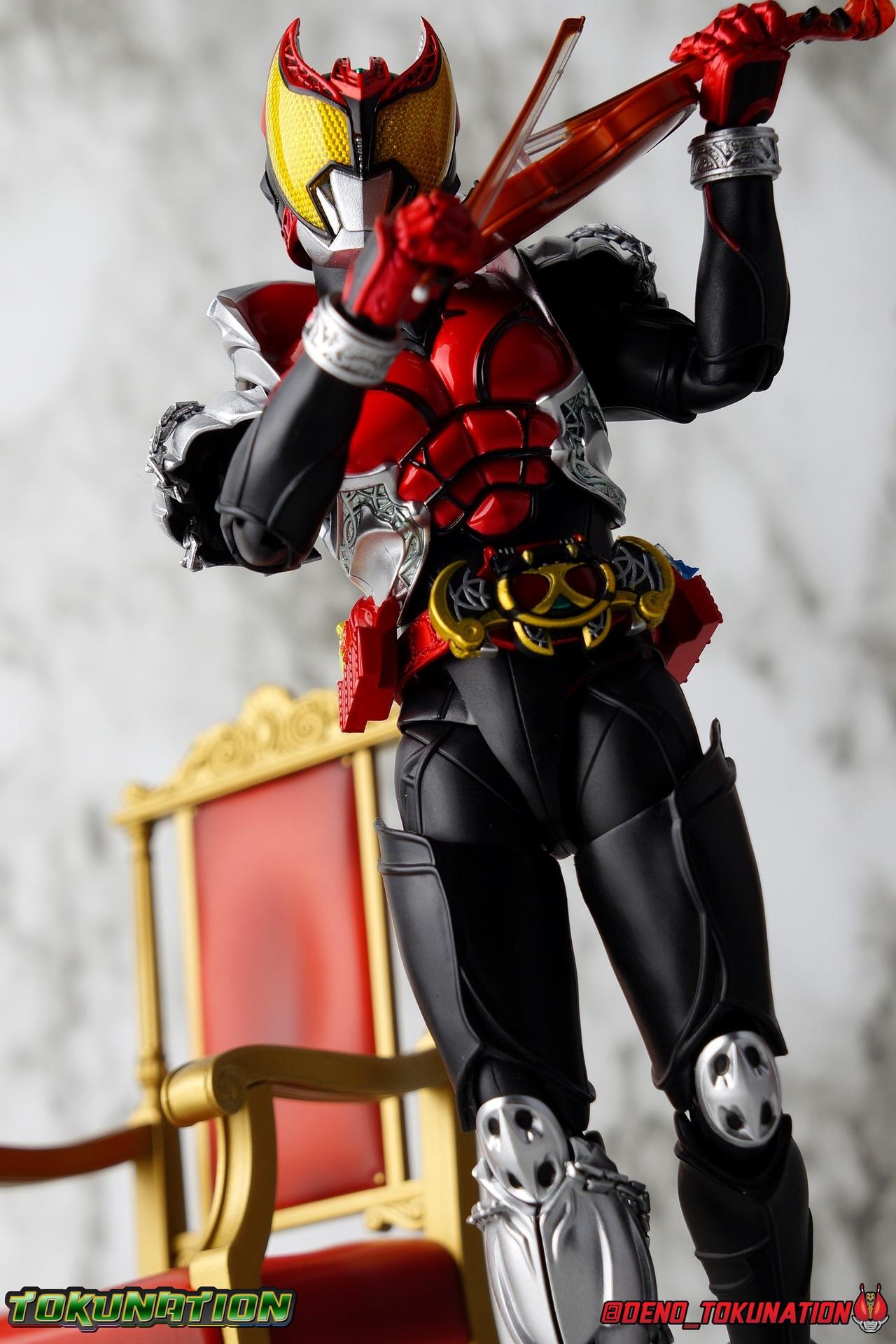 Wataru Kurenai was fated to be king. (No, not like you Zi-O!) As Kamen Rider Kiva, Wataru destroyed the Fangire's threatening humanity while still finding time to craft beautiful instruments as his father had before him. But what's a Kamen Rider without his well, ride? Overcoming his own fears and anxieties, Wataru discovered what real self reliance and confidence could do to transform a person. Though the whimsical talking belt certainly helps too! But what is a Kamen Rider without their, well, ride? Only a few short months after releasing the long demanded Shinkocchou Seihou Kiva, Tamashii has satisfied collectors once again by releasing not only his Rider Machine the Machin Kivaa, but also his signature throne and the Bloody Rose violin he inherited form his father! This massive accessory set completes any Kiva collection, and today we're breaking down the whole thing for a full gallery/review. Main Figure The biggest item, and maybe the big draw of this set if of course the Machine Kivaa. As I mentioned above, and I've said many time before, what's a rider without their ride? I find myself almost compelled to buy every Kamen Rider's bike to accompany their figuart. So seeing the Kivaa happen so soon after Kiva himself was incredibly satisfying. It's easy to look past bike and vehicle releases like this when they don't have transformations or action gimmicks as DX toy equivalents often do. We have to look more at the presentation and craftsmanship to get sense of value from these things. And in that regard, the Machine Kivaa is unmatched. Of the myriad number of S.H. Figuarts and accompanying vehicles I've handled in the last decade, the Kivaa is one of the most stunning. Kiva's bike is a bit unique among Rider Machine in that it's a street style bike (ala Hibiki) rather than a dirt biks (ala nearly everyone else). Based on a Honda Shadow 750, the curvature of the original chasis and design shine through the additional elements. It's a gorgeous standard bike anyway, but this facelift it's gotten as Kivaa is something else. The Figuart is superbly detailed, right down to the tread on each tire. No detail appears to be missing. Even the Speedometer is present thanks to a very crisp and very tiny label permanently affixed to it. The grooves on the engine are well defined and have depth. That gorgeous blood red glossy paint reflects light like the real thing from any angle. And the silver chrome that marks the handlebars and mirrors as well as the exhaust system, is truly magnificent. If you zoom in and look closely, you can even see my camera staring back at you in the chrome. It's that good! When Tamashii gets a chrome application right boy do they ever get it right. But more than just how it's detailed, this bike lives up to expectation as a magnificent vehicle for Kiva. It took 10 years of S.H. Figuarts to finally get Kiva himself, so when his bike arrived as well, it had to be a match made in heaven. And it is. Seihou molds are engineered so well, to function as closely to real people in actual suits as possible, that this figure looks natural and downright like a real person when seated on the bike. These two are a perfect pairing many years in the making in from Tamashii. On a funnier note, it's interesting that in the context of the series itself, we know that the Machine Kivaa is both sentient and houses the brain of a horse (presumably Fangire-like) creature. But the bike is oh so clearly designed like a bat on wheels. The blood red coloring of the bike would even helps suggest that link, but hey it's a horse apparently. Accessories While the Machine Kivaa itself is definitely a huge draw, if you're a big fan of Kamen Rider Kiva there's a good chance that the included accessories are what really sold you on the set: 1 - clear pedestal. I was confused at first when I saw this thing, but it's a brilliant little part. Rather than going for the mostly standard wheel base, or even including an optional Tamashii Stage adapter, the Machine Kivaa comes with it's own unique part. This small rectangle with a single peg on it plugs directly into the undercarriage of the Kivaa, with a couple grooves cut into it to work around the exhaust pipes even. This little block provides the most stable and balanced way to display an SHF bike I've ever seen. It's so simple, but brilliant and unobtrusive. 1 - Throne. While throne may be a bit more generous than calling it what it actually is, a fancy chair, it certainly looks regal. And with Kiva seated in this throne, it's hard to imagine doing anything else with him when he's not on the Machine Kivaa instead. Much in the same way Kiva looks like a real person riding a real motorcycle while sat on the Kivaa, in the Throne he looks much like the king he is. 1 - Bloody Rose violin & bow. Absolutely the signature item needed for any Kiva collection. I was astounded that the Bloody Rose wasn't included with Kiva himself, but waiting until now to include it with the Machine Kivaa is pretty brilliant. While basically any 1/12 violin would work fine with the figure, including the real deal in vehicle/accessory pack like this is a brilliant selling point to most fans. A gorgeously detailed accessory, it feels right at home in Wataru's hands. 2 - sets of additional hands. While the Seihou Kiva Figuart itself came with 2.5 sets of hands, it didn't include any specific to the accessories in this set, which at the time hadn't even been announced yet. So the added value of the sets we get here is a bonus on top of the excellent main item.s We get one set of Machin Kivaa hands so that Kiva's fingers are extended to grip the handlebars properly. And we get one asymmetrical set for holding the Bloody Rose & bow. The left hand for the rose, the right for the bow. Be careful putting the rose in hand though, it's pretty thin plastic and the gap it goes in isn't very wide. Always best to be careful. Considering this is a huge accessory set anyway, I can't imagine anything