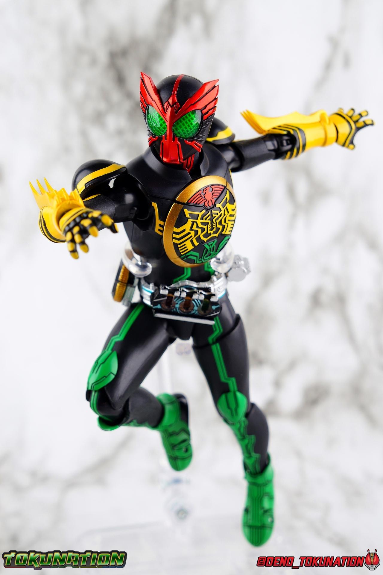 Long ago the King, the first OOO, instructed 4 alchemists to create life. Made from Core Medals these creatures, the Greeed, were filled with immense craving, unable to fill the voids within. Incapable of processing human emotions and senses, the Greeeds sought to consume the world of man to fill their sense of craving, but before they could they were sealed away by OOO. 800 years later, Eiji Hino was minding his own business as a part time security guard when the seal on the Greeed was broken, releasing them once more into the human world. Still craving to be whole, nothing could stand in their way without the power of the King. But one of their number, Ankh, took it upon himself to steal the Core Medals of his kind. Intending to find a human pawn, Ankh stumbles upon Eiji and a bond is born. Handing the Driver of the king and the Core Medals over, Ankh allows Eiji to become Kamen Rider OOO! What began as a begrudging alliance would spawn one of the greatest and truest friendships in Kamen Rider history, as the Greeed Ankh supported Eiji in his quest to save people wherever he could. Anything goes it's coming up OOO! Packaging Obviously, Seihou OOO comes in that familiar and collector friendly packaging this line has come to be known for. And it's quite the departure from what the original OOO line featured. It's much more subdued, which bothers me slightly, but it feels much sturdier and fits right in with an ever growing collection of Shinkocchou Seihou releases. As you can see in the gallery below, the two packaging types are very different, each with it's merits, but I welcome the change. Main Figure It's been quite a journey from the early days of the S.H. Figuarts toyline. Back in the day (2011) the original SHF Kamen Rider OOO TaToBa Combo was released, followed along eventually by every one of OOO other combos, and a variety of his mixed combo forms as well. Honestly it's astonishing how many OOO forms got Figuarts, but the mere fact that the 10 Main Combos from TV & Films happened is incredible. Flash forward to 2019 (though I'm getting to this review in 2020) and we're back to square one. Tamashii is finally treating us to a do-over for OOO, and giving us the figure we always hoped for. The original line was plagued by loose joints, gummy parts, inaccuracies, and more. Now, the Shinkocchou Seihou line is here to set things right. At a glance, there's no question, Shinkocchou Seihou OOO is absolutely an improvement in every single facet over the original figure. Let's start with the composition of the body. Seihou OOO goes the extra mile compared to the original by incorporating a Combo Change gimmick, hearkening back to the gimmick line of the show's day, aptly named Combo Change. Separating into Taka, Tora and Batta sections that means you'll be able to swap around the 3 components of the body between any of the current and future Seihou OOO releases. This is revolutionary, something I've always wanted to see Figuarts try more of. Though not as extensive as OOO, other recent releases have also begun to take on the form change aspect like Kamen Riders' Evol & Geiz Revive. What's really striking about the general look of the figure is it's proper proportions compared to the lanky and thin look of the original. Seihou OOO has all the beef of the actual suit, and so much more articulation than the previous release could have dreamed of. Each ankle has all the range necessary for OOO to get into his trademark wide stances, but it's really the double jointed knees that do a ton of the work. It's all about flexibility in the legs to make a figure feel dynamic, and no rider should feel more like that than OOO. The hips have that same genius sort of in set design type that Seihou's tend to have. The difference with OOO is that the Batta green markings extend up from the thigh across the separated hip joint and onto the waist. Each part can move independently so they may not always line up perfectly, but the attention to detail here is glorious, and the functionality far exceeds the limited range of the original figure's drop down hips. The black detailing on the green parts of the legs is crisp as well, but just rough enough to give it that ancient look that feels appropriate enough to be something from 800 years ago. And of course I'm a sucker for properly sculpted butt plates on riders, so I appreciate how the leg design doesn't take away from some correct anatomy. Around Eiji's waist, is the OOO Driver & Belt. I know the OOO Driver looks like it has a lot going on, but it's an incredibly well designed driver for this scale, even more so than some of my favorites like the Build Driver. The Driver in the center can accept the included 3 Core Medals or any other medals in the Seihou line, allowing you to fully and accurately recreate combo changes. A tool is included to remove and insert medals as you wish as well. The Driver can also tilt down to the figure's left accurately. On the left hip is a Cell Medal container, while the right hip has a holster for the included O Scanner. It's a bulky belt set up but one that feels undeniably perfect on a bulky body like OOO. Above the belt, at the point where OOO's chest emblem covers the torso, is where the figure can be taken apart. A firm plug holds the upper and lower torso together, but it's honestly the ingenious way the OOO emblem comes apart and un-pegs from the torso that blows my mind. While the head and neck can detached from the shoulders as one chunk. Even more astonishingly this entire gimmick doesn't impact the figure's design or articulation. Even the bottom section of the chest is hinged to move. It's just so satisfying all around. The emblem itself is exquisitely sculpted and painted as well. The arms are also a big attraction this go around for OOO. Far less gummy than the originals, these feel solid and extremely flexible. And that's in large part thanks to the hybrid shoulder pad design that incorporates them onto the arms