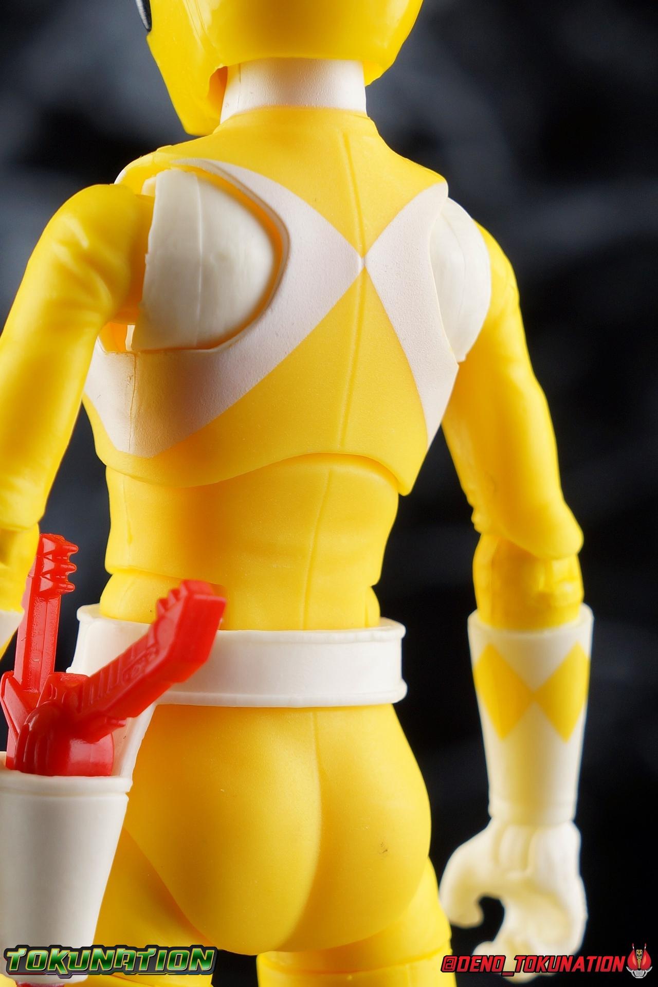 When 5 teenagers with attitude were chosen to defend the Earth, each of them was given access to a universe of power. Transported to the Command Center, and introduced to the quirky robot Alpha 5 & the inter-dimensional being Zordon of Eltar, these young heroes were bestowed with the strength of the ancient dinosaurs. Fearless and agile, Trini Kwan was honored with the powers of the mighty Saber-Toothed Tiger Dino Zord! Power Daggers in hand, Trini joined her teammates as they battled the likes of Goldar, Scorpina, and the evil sorceress Rita Repulsa! Packaging As we are all pretty familiar with the line by now, I'm sure I probably don't need to go through my usual list of reasons why it's awesome. Hasbro was keen to make sure these appealed to collectors and fans of the franchise from throughout it's various eras. And they also really pop thanks in no small part to some wonderful box art, lovingly crafted by artist Tom Whalen aka @strongstufftom on twitter. His artwork is breathtaking, and makes these figure's feel like just a bit more of a passion project from the folks at Hasbro. Main Figure We keep inching closer to the completion of the full Mighty Morphin Power Rangers team from Hasbro's Lightning Collection. After Red, Dragon Shield Red, Dragon Shield Black, Fighting Spirit Green, Pink, White, the upcoming release of Blue, and today's subject the Yellow Ranger, the gap has closed considerably. Leaving only a standard version of Green Ranger, and non-shielded Black Ranger to come. The Yellow Ranger is yet another welcome addition to this team though, and despite some of the molding reused from Pink Ranger, it feels like a slight improvement. As the first female ranger in the line, the Pink Ranger definitely set the bar at an underwhelming level so building Yellow off that base didn't have me super enthused. From the outset the big difference here is that Yellow Ranger doesn't have a skirt, which is of course an accurate look. What I don't really care for is the general build of the body. I get it, Trini was a female Yellow Ranger in Power Rangers, but the source footage used for a majority of her appearances of course depicts the male Tiger Ranger. I would have really preferred a more neutral sculpt for this figure than the proportions given to it. As is it really suits more of a season 2/3 Aisha look, where a majority of the appearances were US filmed footage with a female suit. I know it's a nit-pick, this figure just feels a bit off because of this to me. But at least it isn't the long and lanky outrageously proportioned Bandai 6.5" figure. Structurally we have exactly the same articulation cuts as the pink ranger. Rocker ankles with forward/back ratchets, swiveling boot cuffs below the knee as well as a double jointed knee, a great but tight thigh swivel, and hinged hips. The knees feel a bit loose much as they did on my Pink Ranger, making it a little awkward at times to get Trini standing or posed properly. Loose knees with tight hips is an odd combo for stability. I do feel like I've noticed something more this time around with the mold though, the boots are just a bit too big. Visually they seem too wide for the legs they're attached too. That's admittedly a cosmetic gripe rather than a functional one though. The Yellow Ranger's belt is a little unsightly, upon closer inspection you can see that the paint application is actually off to the left from the sculpted details, making it a bit wonky. But the paint is a bit spotty as well contributing to the issue. So it's hard to make out the Sabertooth Tiger coin. The belt features a holster on the left hip for the included Blade Blaster as well. The holster looks kind of over sized on this figure to me, but I could be wrong. Since there's no skirt attached to the belt we can see the identical waist parts that Yellow Ranger shares with Pink. The torso itself features the same basic design as Pink Ranger, but these are actually different parts.The female MMPR mold has a sort of floating lower torso behind the belt and a ball jointed upper body. While not quite as dynamic as the male mold, it certainly gets the job done. Yellow Ranger appears to have a slightly more slender sculpt with a longer ab section resulting in the two actually looking quite different. The arms are actually in a similar situation. The shoulders are the same butterfly style joint we've seen pretty much across the line. In Yellow Ranger's case the joint has a bit different shape and takes up a little bit less real estate on the torso. The actual shoulders are also a bit different than typical. They sit just a bit out further from the body but ratchet up and out in the same manner. The elbows are of the same new variety as Pink Ranger as well. Rather than the normal double joint hinge we've seen with the boys, Yellow & Pink have a fully rotating elbow on a peg. It's pegged into bicep with a single hinge joint to move it up. This means the elbow isn't double jointed or nearly as dynamic in a forward/back sense, but that it can rotate fully giving it some weird extra range. This is largely to make up for the lack of a bicep swivel. The wrists operate as normal though but I've found the hinges on each hand's peg is very tight. Like a handful of other rangers in the line thus far, I do feel the sculpt is a bit soft on the Yellow Ranger's helmet, but moreover the QC is a bit iffy. On the mouth plate of mine are some strange sculpted lines, the black on the visor isn't fully applied around the edges, and even the silver on the tiger nose is missing a big chunk. The girls are so far not my favorite figures in the Lightning Collection, but I feel the shortcomings of the mold at this point are largely owed to growing pains of the line more than anything else. Accessories 1 - Trini unmasked head. By far one of the better likenesses in the line, Hasbro really nailed Thuy Trang's face with this sculpt. The long hair also manages to be less cumbersome than some others like 