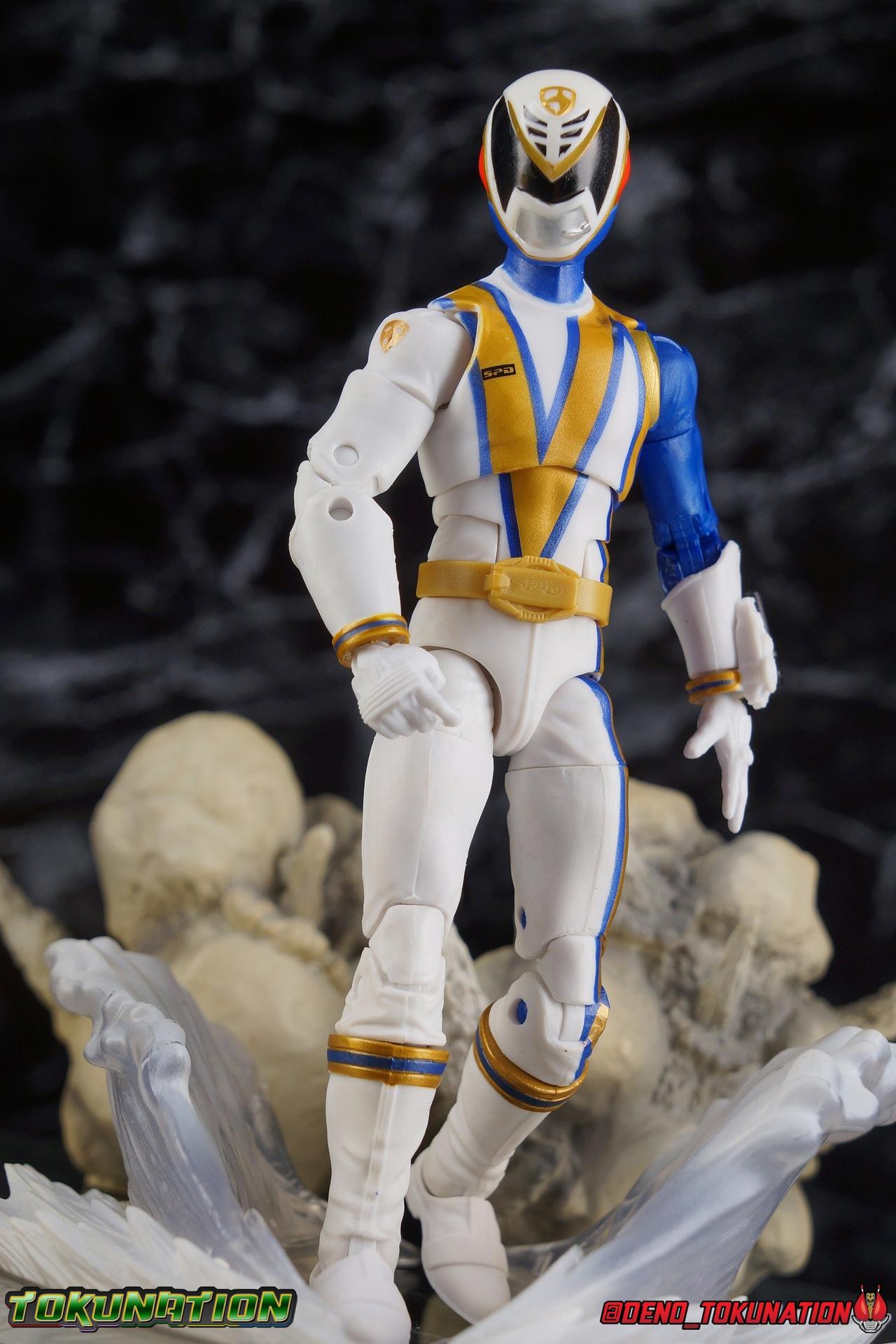 In the year 2025 Space Patrol Delta protects the galaxy and Earth, from threats both terrestrial and extra. And the SPD B-Squad has done a valiant job defending Earth since the mysterious disappearance of the A-Squad Rangers. But facing their toughest enemies yet, and even with the help of Shadow Ranger, they may not be enough. In their darkest hour, a mysterious being of light arrives to turn the tide in the fight against Emperor Grumm and his legions. A force from the future has returned to his past to save it! SPD Omega Ranger! Packaging As we are all pretty familiar with the line by now, I'm sure I probably don't need to go through my usual list of reasons why it's awesome. Hasbro was keen to make sure these appealed to collectors and fans of the franchise from throughout it's various eras. And they also really pop thanks in no small part to some wonderful box art, lovingly crafted by artist Tom Whalen aka @strongstufftom on twitter. His artwork is Magnificent, and makes these figure's feel like just a bit more of a passion project from the folks at Hasbro. This release is a bit more unique because of it's size, giving us a really fantastic full profile spread on the front of the box. Main Figure It goes without saying at this point, Hasbro has got me locked in with this toyline. I buy every release, every slight variation. They've got me. But when they pull out a character and design I really love, there's no question I'm in on that release. Cue SPD Omega Ranger. A fantastic design from one of my favorite Power Rangers seasons, and pack in his unique vehicle as well? This is one of those "chef's kiss" scenarios for me. For starters, I know what you're thinking, this figure likely is a repaint of the SPD Red Ranger mold. This would be a solid, but partially incorrect assumption. This figure actually uses the Time Force Red Ranger mold as it's base, though it does appear to have SPD Red's legs at least. Which is an odd choice for sure, especially given that the SPD Red Ranger had molded SPD badges on the upper body and instead Omega Ranger has a paint application where those would have been. Omega Ranger has a fairly basic body style and no cumbersome armor components and like most of the line he some of the same basic articulation implementations. The essential changes here being cosmetic ones. The entire body is white plastic, but has paint apps to greatly break it up. Starting with the legs here's a sculpted raised line on the boot cuff/shin swivel carried over from SPD Red, that's painted in gold and blue. The figure features full rotating rocker ankles as well as a clicking swivel joint for them to go back and forth. Above this is the shin swivel/boot cuff, allowing you to rotate that portion of the leg 360 degrees below the knee if you wish. Then we get a very playful double jointed knee which allows you to fully bend the leg back in on itself. This is already great but there's also a 360 thigh swivel as well as full hips with back/forth and outward motion. Going backward you will impact that standard sculpted butt plate, but it isn't a major hindrance. All of these cuts are executed in the now standard Lightning Collection styling, doing their best to not be obtrusive to the character's design. The left leg of course has some really nicely done blue and gold striping that goes all the way up from knee to hip and along the torso. The joints can break up this deco a bit but honestly they did a really good job with this. Omega Ranger features the signature SPD buckle and belt around his waist (carried over from Red), though it has a subtle sculpt. It could definitely use a paint wash to bring those details out a bit more. Nothing else to note really on the belt, it's quite a bit simpler affair compared to Red who had blaster holsters and a dummy morpher. The rest of the torso is totally standard stuff, carried over from Time Force Red. The lower half has a satisfying ratchet ab joint, while the upper body sits on a ball joint. The combination of the two gives you quite a bit to work with when posing. The big thing of note here is the wonderful "VI" paint app and the SPD badge app on the upper right. While the spacing of the "VI" is too far apart, I have to say it's done quite well. Moving the body breaks up this design but that's be expected of any ranger with an elaborate paint app like this. The arms hit the sweet spot with that classic butterfly style shoulder joint. As you angle the shoulder back, the body slides out to fill the gap and vice versa. There's a full 360 rotating bicep swivel, double jointed elbows, and the same peg style hands as the rest of the line (though hand options are limited with this one). But, in the same way that a handful of other LC releases have thus far, SPD Omega's arms are oddly positioned. They don't have the ability to rest against the figure's torso naturally and instead angle outward somewhat. The left arm of course features the signature Omega Morpher. The big drawback here is the total lack of paint apps on the Morpher, and I'm super bummed about it as well. But it doesn't kill my interest in the figure or appreciation for it necessarily. The Morpher has a moving throttle that the figure can manage to grab onto pretty well actually too. Lack of paint apps aside the sculpted details are very sharp on this part as well. The head is another really solidly sculpted example from this line. While the paint apps are just a tiny tiny askew on mine, overall I'm quite pleased. Omega Ranger's helmet has always been such a unique design, looking like a futuristic bike helmet or an aerodynamic electric super car. And it works really really well on this figure. The neck features the standard balljoint on a hinge and it still gets the job the done, while I do feel it could use a bit more clearance around the edges of the helmet. Overall the execution of this figure is really brilliant even if there are some minor issues still. Paint deco issues are of cou