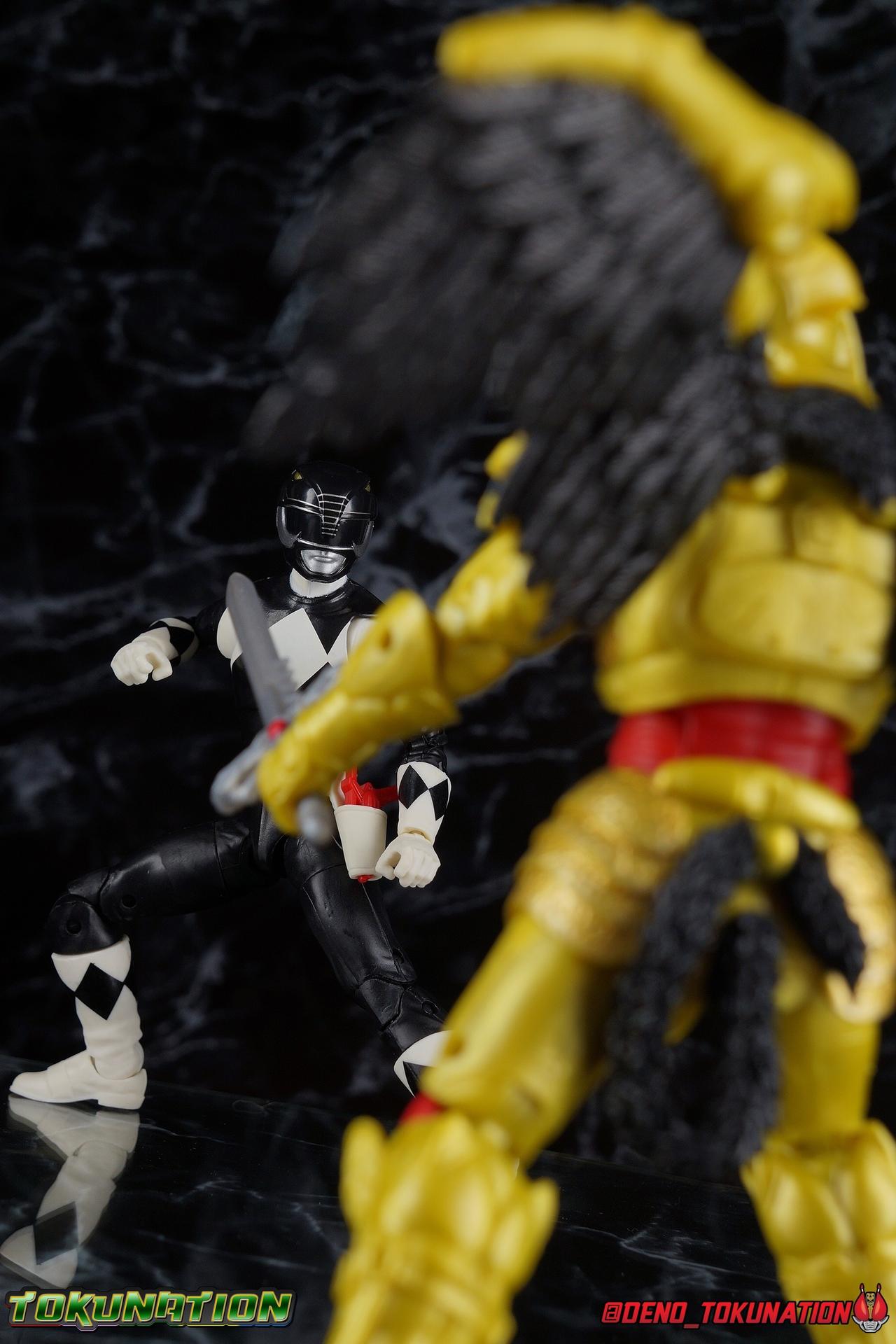 An interdimensional wizard asking him to defend the earth from a 10,000 year old witch may have been just too weird for Zack Taylor, at first. But faced with a choice, let monsters attack him and his friends or step up and defend the Earth, he was always going to do the right thing. Clever & brave, Zack was gifted the powers of the Mighty Morphin Black Ranger & the powerful Mastodon Dinozord! Protecting Earth from the likes of Rita Repulsa and Lord Zedd, Zack was the first in a long line of Black Powers Rangers and powerful black heroes. Packaging As we are all pretty familiar with the line by now, I'm sure I probably don't need to go through my usual list of reasons why it's awesome. Hasbro was keen to make sure these appealed to collectors and fans of the franchise from throughout it's various eras. And they also really pop thanks in no small part to some wonderful box art, lovingly crafted by artist Tom Whalen aka @strongstufftom on twitter. His artwork is breathtaking, and makes these figure's feel like just a bit more of a passion project from the folks at Hasbro. Main Figure The mold that never dies, returns again! This is now the 7th outing of the male Mighty Morphin body, including the second Green Ranger that I've yet to get in hand. (MMPR White & Lord Drakkon share their own basic mold, differing from this one a bit.) What we have here is the exact same body type we got with the Dragon Shield Red Ranger, Dragon Shield Black Ranger, & Fighting Spirit Green Ranger, just sans the shield and armbands. And it is exactly what we got before with the Red Ranger & Blue Ranger, the only differences being cosmetics and a new helmet. As mentioned above, nothing has changed other than cosmetically. The Mighty Morphin Black Ranger features full rotating rocker ankles as well as a clicking swivel joint for them to go back and forth, giving us a solid start. Above this is a shin swivel as well at the boot cuff, allowing you to rotate that portion of the leg 360 degrees below the knee if you wish. There's a very playful double jointed knee which allows you to fully bend the leg back in on itself. This is already great but there's also a 360 thigh swivel as well as full hips with back/forth and outward motion. All of these cuts are executed in the now standard Lightning Collection styling, doing their best to not be obtrusive to the character's design. On the belt is the classic Power Morpher featuring the Mastodon Power Coin, while a holster sits on the left hip for the included Blade Blasters. Like his mold mates, the Black Ranger features the same torso articulation. The lower half of the torso has the same satisfying ratcheting ab joint I've come to appreciate from the line while the upper half sits on a ball joint. The combination of the two gives you quite a bit to work with when posing. The arms hit the sweet spot with that classic butterfly style shoulder joint. As you angle the shoulder back, the armor slides out to fill the gap and vice versa. There's a full 360 rotating bicep swivel, double jointed elbows, and the same peg style hands as the rest of the line. The head also nails the sculpt and design of the Black Ranger design. It is of course carried over directly from the Dragon Shield Black Ranger release. As for articulation, the neck assembly is identical to the rest of the line. Nothing new, just solidly functional. Accessories 1 - Zack Taylor civilian head. Joining an exclusive club of only a few characters which have had multiple head sculpts in the line, Zack gets his 2nd one here. It seem Hasbro was probably going for an MMPR Season 3 look, roughly around the White Light storyline with this head. Whereas the head that came with Dragon Shield Black Ranger represents Zack at some point roughly during the first season. I have to say that this new Zak likeness isn't nearly as strong as the first one. It still gets the point across that it's based on actor Walter Jones, but it definitely could have been better. Luckily the head that came with the previous release works just fine on this one. 1 - Power Axe. A re-pack of the accessory included with the SDCC Red Ranger and with the Dragon Shield Black Ranger, the Power Axe is a nice beefy compliment to the Black Ranger. What I really appreciate about it though is that it's functional. The sliding mechanism of the barrel allows you to display it as either the Axe or Blaster modes. The grip for blaster mode is a little bit too large to be held properly by the included hands, but this is even more apparent with the axe handle. It's an incredibly thick handle, and you will have to stretch the hands a bit to make him hold it correctly. Since this is a repack of the weapon as we've seen it previously, it can also combine with the other individual Power Weapons if you so choose. 1 - Power Axe Blaster Effect. Another reuse from a prior release, we get the Power Axe blast effect again, but this time recast in a swirling red with glittery accents. IT plugs directly into the blaster end of the axe and could be use either for the individual blaster or for the combined Power Blaster. I think the intent may have been to use this read one for the combined mode given how that effect is generally rendered in the show. 1 - Blade Blaster (Blaster Mode). Continuing an unfortunate pattern, Hasbro has opted to include the Blade Blaster in it's Blaster form. Meaning that when holstered in the any of the MMPR Ranger's belts, it's entirely inaccurate. In all Zyuranger footage, and even in American produced MMPR suit footage, the Blade Blaster is always closed and usually fully collapsed when holstered. You can hide the butt of the gun at certain angles but it just isn't the right accessory. 1 - Blade Blaster (Sword Mode). Now this is unique. The standard Black Ranger is the first and only ranger to include this version of the Blaster. The SDCC Red Ranger came with the only fully collapsed Dagger Mode, while every other ranger in the line came with the Blast