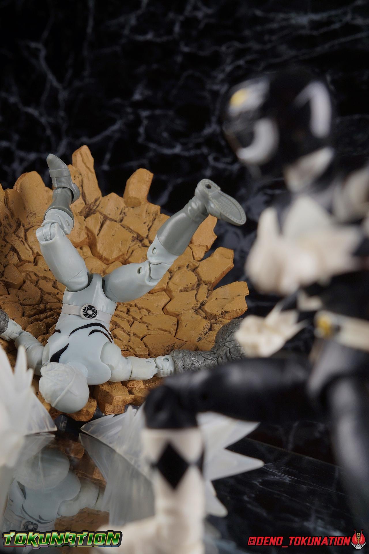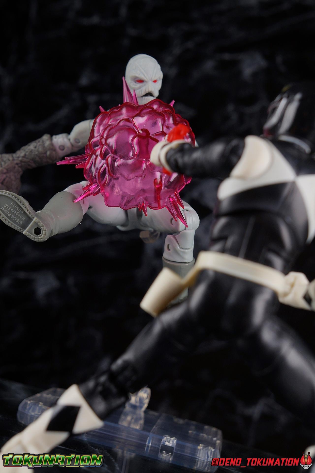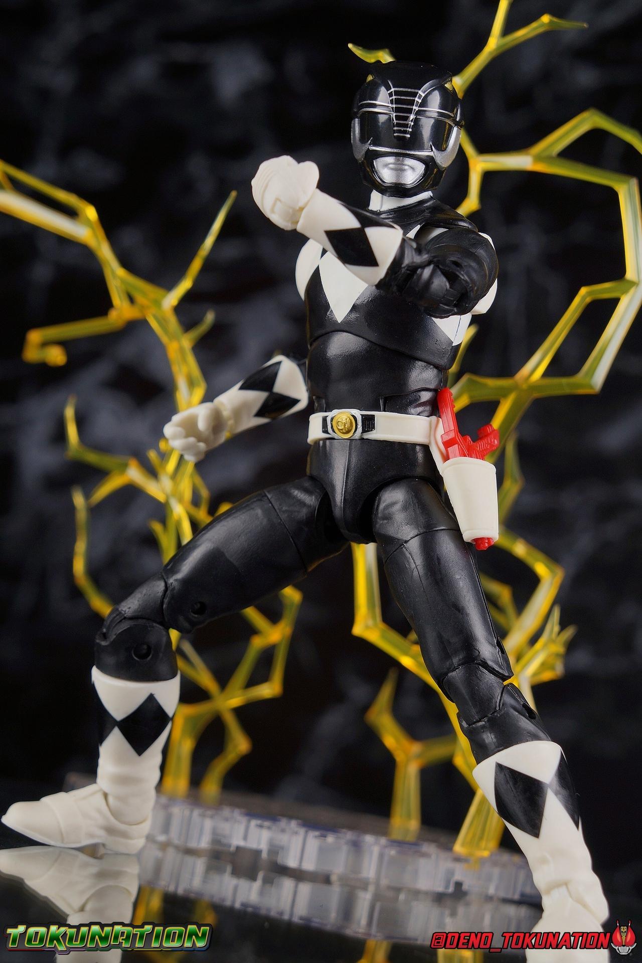An interdimensional wizard asking him to defend the earth from a 10,000 year old witch may have been just too weird for Zack Taylor, at first. But faced with a choice, let monsters attack him and his friends or step up and defend the Earth, he was always going to do the right thing. Clever & brave, Zack was gifted the powers of the Mighty Morphin Black Ranger & the powerful Mastodon Dinozord! Protecting Earth from the likes of Rita Repulsa and Lord Zedd, Zack was the first in a long line of Black Powers Rangers and powerful black heroes. Packaging As we are all pretty familiar with the line by now, I'm sure I probably don't need to go through my usual list of reasons why it's awesome. Hasbro was keen to make sure these appealed to collectors and fans of the franchise from throughout it's various eras. And they also really pop thanks in no small part to some wonderful box art, lovingly crafted by artist Tom Whalen aka @strongstufftom on twitter. His artwork is breathtaking, and makes these figure's feel like just a bit more of a passion project from the folks at Hasbro. Main Figure The mold that never dies, returns again! This is now the 7th outing of the male Mighty Morphin body, including the second Green Ranger that I've yet to get in hand. (MMPR White & Lord Drakkon share their own basic mold, differing from this one a bit.) What we have here is the exact same body type we got with the Dragon Shield Red Ranger, Dragon Shield Black Ranger, & Fighting Spirit Green Ranger, just sans the shield and armbands. And it is exactly what we got before with the Red Ranger & Blue Ranger, the only differences being cosmetics and a new helmet. As mentioned above, nothing has changed other than cosmetically. The Mighty Morphin Black Ranger features full rotating rocker ankles as well as a clicking swivel joint for them to go back and forth, giving us a solid start. Above this is a shin swivel as well at the boot cuff, allowing you to rotate that portion of the leg 360 degrees below the knee if you wish. There's a very playful double jointed knee which allows you to fully bend the leg back in on itself. This is already great but there's also a 360 thigh swivel as well as full hips with back/forth and outward motion. All of these cuts are executed in the now standard Lightning Collection styling, doing their best to not be obtrusive to the character's design. On the belt is the classic Power Morpher featuring the Mastodon Power Coin, while a holster sits on the left hip for the included Blade Blasters. Like his mold mates, the Black Ranger features the same torso articulation. The lower half of the torso has the same satisfying ratcheting ab joint I've come to appreciate from the line while the upper half sits on a ball joint. The combination of the two gives you quite a bit to work with when posing. The arms hit the sweet spot with that classic butterfly style shoulder joint. As you angle the shoulder back, the armor slides out to fill the gap and vice versa. There's a full 360 rotating bicep swivel, double jointed elbows, and the same peg style hands as the rest of the line. The head also nails the sculpt and design of the Black Ranger design. It is of course carried over directly from the Dragon Shield Black Ranger release. As for articulation, the neck assembly is identical to the rest of the line. Nothing new, just solidly functional. Accessories 1 - Zack Taylor civilian head. Joining an exclusive club of only a few characters which have had multiple head sculpts in the line, Zack gets his 2nd one here. It seem Hasbro was probably going for an MMPR Season 3 look, roughly around the White Light storyline with this head. Whereas the head that came with Dragon Shield Black Ranger represents Zack at some point roughly during the first season. I have to say that this new Zak likeness isn't nearly as strong as the first one. It still gets the point across that it's based on actor Walter Jones, but it definitely could have been better. Luckily the head that came with the previous release works just fine on this one. 1 - Power Axe. A re-pack of the accessory included with the SDCC Red Ranger and with the Dragon Shield Black Ranger, the Power Axe is a nice beefy compliment to the Black Ranger. What I really appreciate about it though is that it's functional. The sliding mechanism of the barrel allows you to display it as either the Axe or Blaster modes. The grip for blaster mode is a little bit too large to be held properly by the included hands, but this is even more apparent with the axe handle. It's an incredibly thick handle, and you will have to stretch the hands a bit to make him hold it correctly. Since this is a repack of the weapon as we've seen it previously, it can also combine with the other individual Power Weapons if you so choose. 1 - Power Axe Blaster Effect. Another reuse from a prior release, we get the Power Axe blast effect again, but this time recast in a swirling red with glittery accents. IT plugs directly into the blaster end of the axe and could be use either for the individual blaster or for the combined Power Blaster. I think the intent may have been to use this read one for the combined mode given how that effect is generally rendered in the show. 1 - Blade Blaster (Blaster Mode). Continuing an unfortunate pattern, Hasbro has opted to include the Blade Blaster in it's Blaster form. Meaning that when holstered in the any of the MMPR Ranger's belts, it's entirely inaccurate. In all Zyuranger footage, and even in American produced MMPR suit footage, the Blade Blaster is always closed and usually fully collapsed when holstered. You can hide the butt of the gun at certain angles but it just isn't the right accessory. 1 - Blade Blaster (Sword Mode). Now this is unique. The standard Black Ranger is the first and only ranger to include this version of the Blaster. The SDCC Red Ranger came with the only fully collapsed Dagger Mode, while every other ranger in the line came with the Blast
