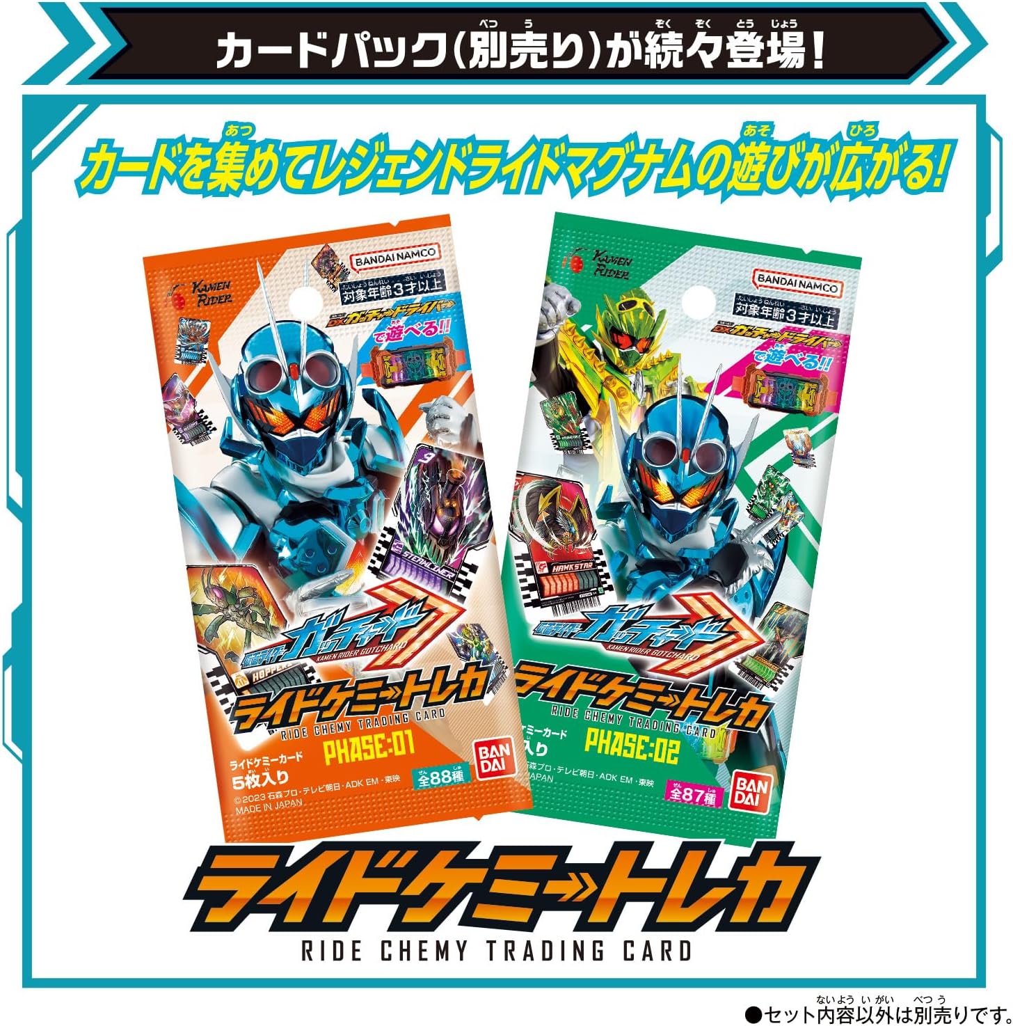 Official images of the DX Legend Driver & DX Legend Ride Magnum, both releasing December 2nd as retail releases. The Legend Ride Magnum appears to function as Chemy Riser only instead of summoning Chemys he summons Riders instead. Also the description for the DX Legend Driver says it has a BGM feature so that's neat. Lastly there's an image for phase 2 of the tcg, no official release date yet (as far as I'm aware) but if the rumors are to be believed then it's coming sometime in November.